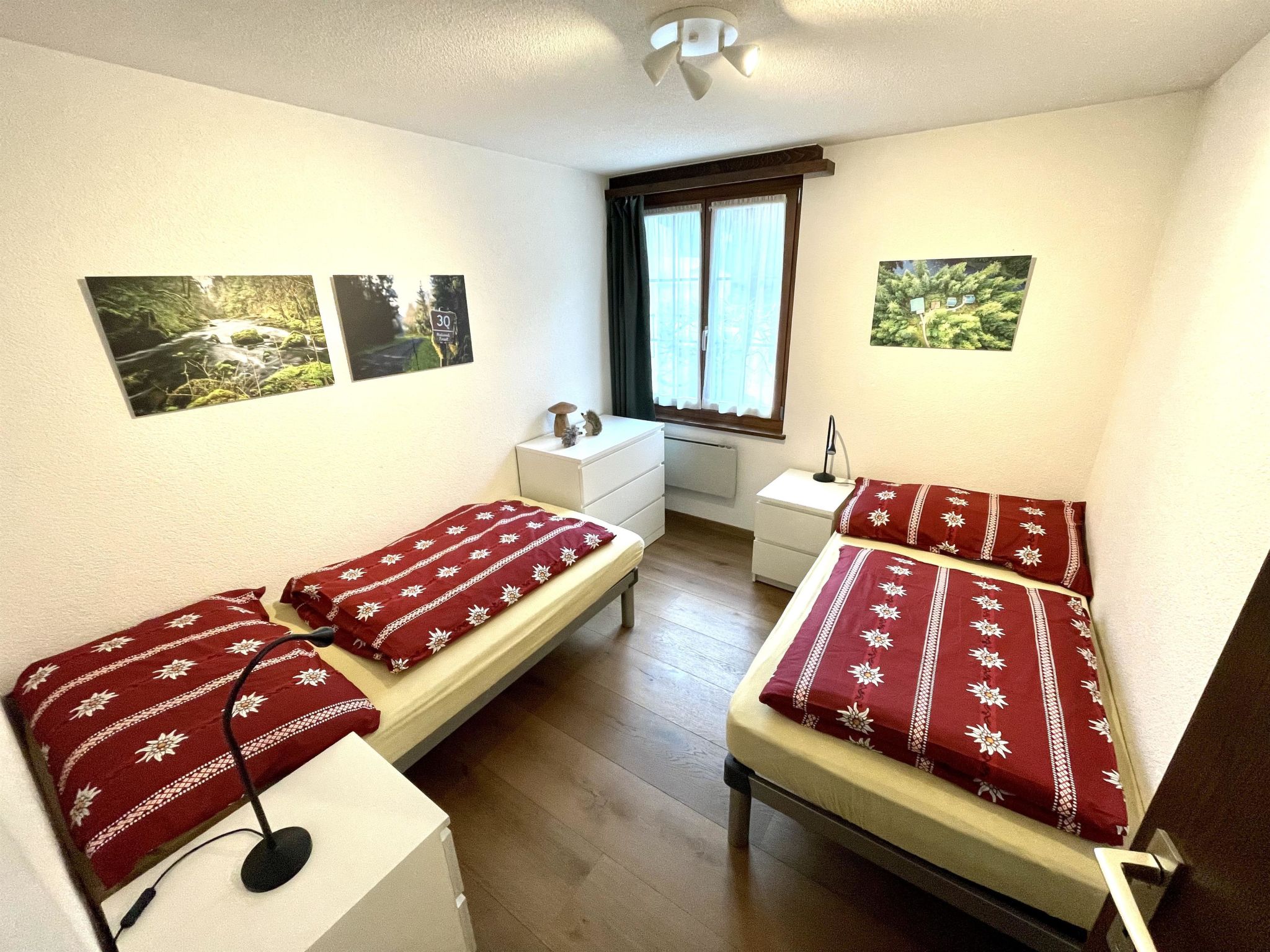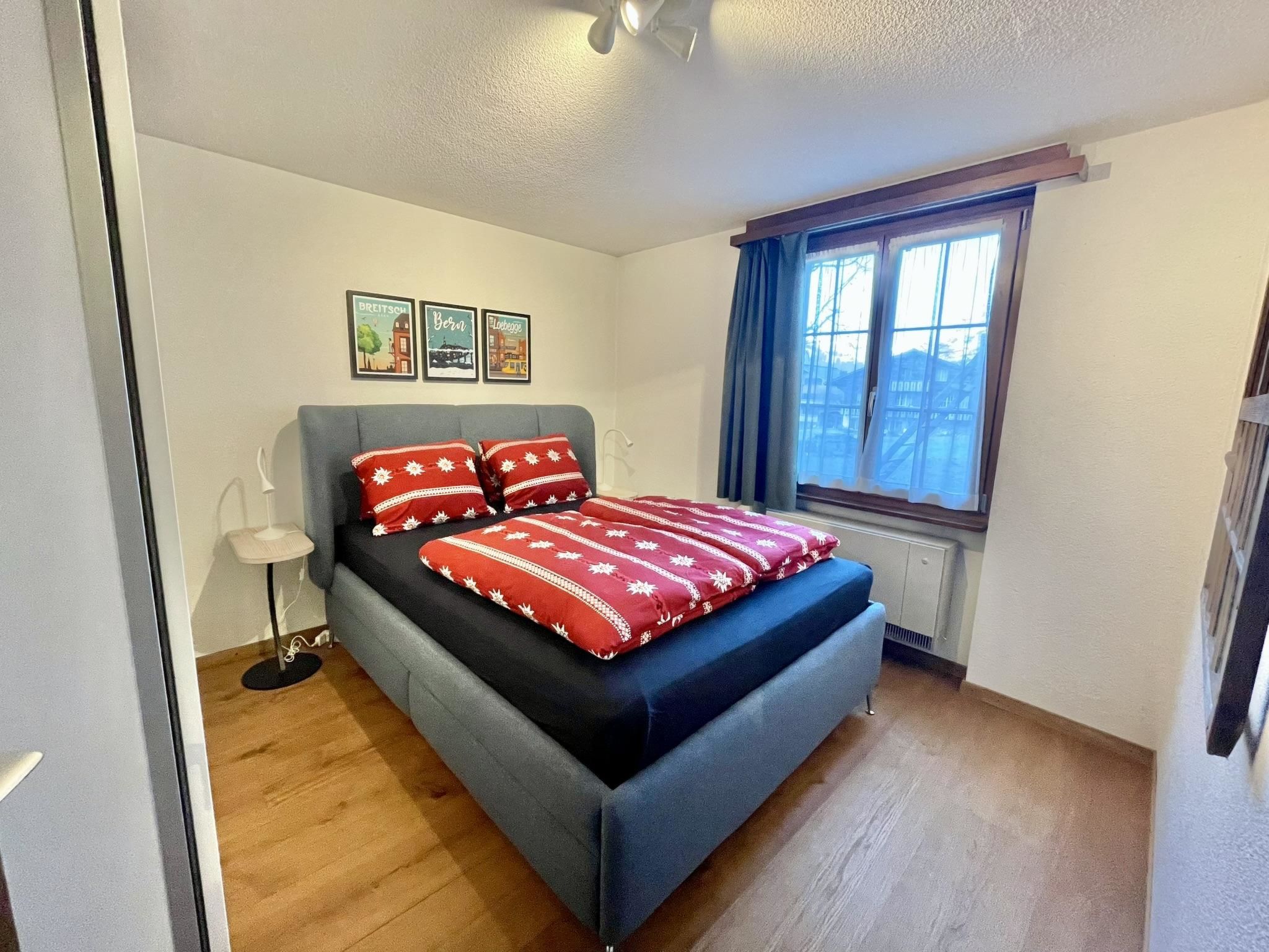 Wohnzimmer mit gemütlicher Essecke, Polstergruppe, Cheminée, TV/Radio und Telefon. Dusche/WC. Waschmaschine. Separate Küche (u.a. ausgestattet mit Kapsel-Kaffeemaschine (Delizio) sowie Fondue- und Raclette-Set). 1 Doppelschlafzimmer (160x200cm), 1 Doppelschlafzimmer (2x90x190cm). Ganze Wohnung Parkettboden.