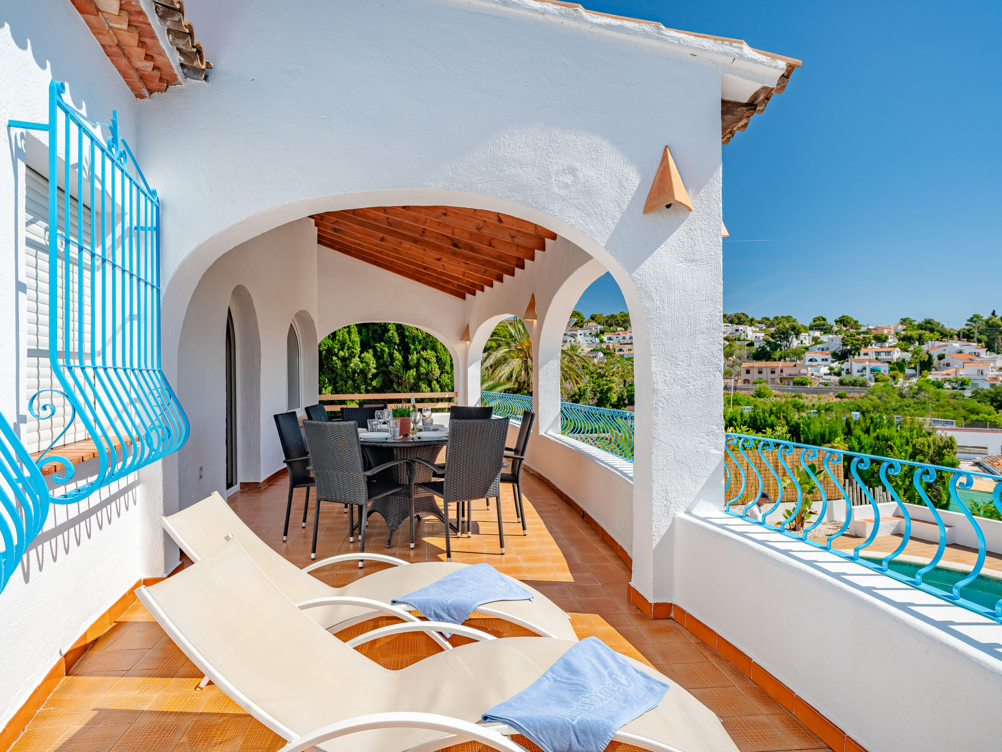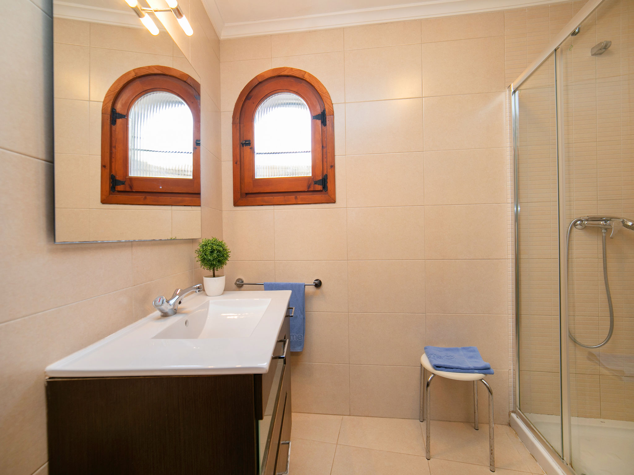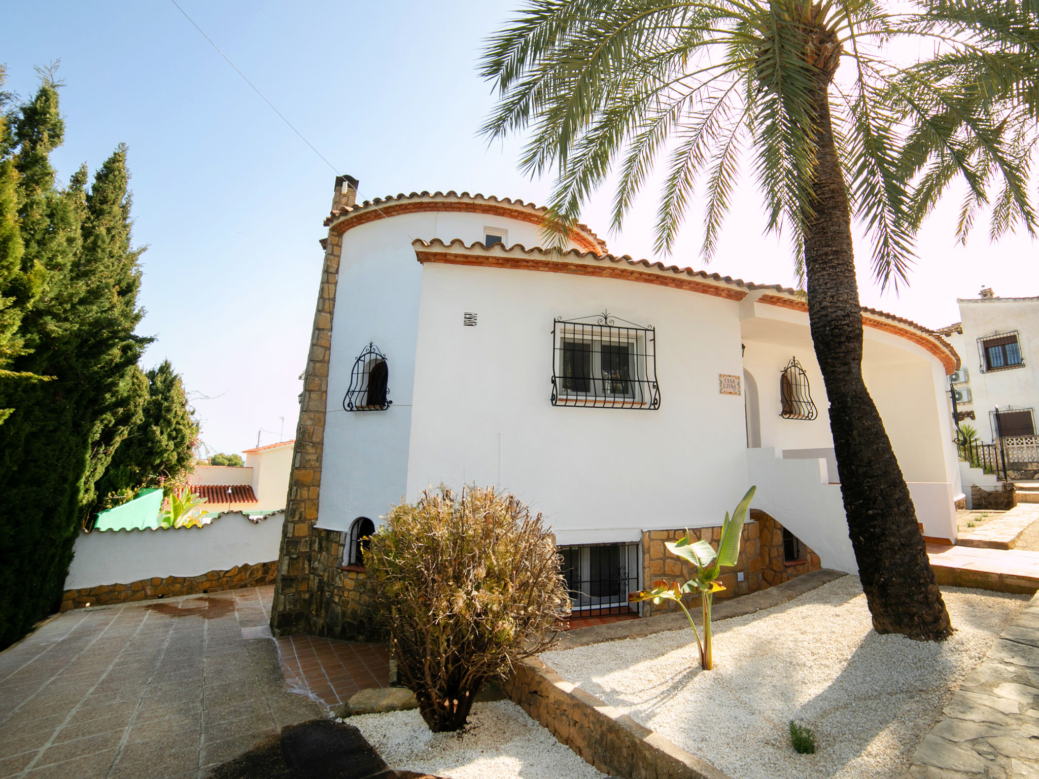 "Luisa", 8-Zimmer-Haus 290 m2 auf 2 Stockwerken. Geräumig und hell, zweckmässig eingerichtet: Wohn-/Esszimmer mit offenem Kamin und Digital-TV. Ausgang zur Terrasse, zum Schwimmbad. 1 Zimmer mit 1 franz. Bett (150 cm, Länge 190 cm), Ventilator. 1 Zimmer mit 2 Betten (90 cm, Länge 190 cm), Ventilator. Küche (Backofen, Geschirrspüler, Mikrowelle, Tiefkühler, elektrische Kaffeemaschine). Bad/WC, Dusche/WC. Heizung. Obergeschoss: (Aussentreppe) Wohn-/Esszimmer mit offenem Kamin, Digital-TV und Ventilator. Ausgang zur Terrasse. 1 Zimmer mit 1 franz. Bett (150 cm, Länge 190 cm), Ventilator. 2 Zimmer, jedes Zimmer mit 2 Betten (90 cm, Länge 190 cm), Ventilator. Küche (Backofen, elektrische Kaffeemaschine). Bad/Bidet/WC, Dusche/WC. 2. Obergeschoss: 1 Zimmer mit 1 franz. Bett (135 cm, Länge 190 cm), Dusche/WC, E-Heizofen und Ventilator. Ausgang zur Terrasse. Terrassenmöbel. Zur Verfügung: Waschmaschine, Bügeleisen, Kinderhochstuhl, Babybett bis 2 Jahre, Haartrockner. Internet (Wireless LAN, gratis). Parkplatz beim Haus. 1 Haustier/Hund erlaubt. AT-445547-A