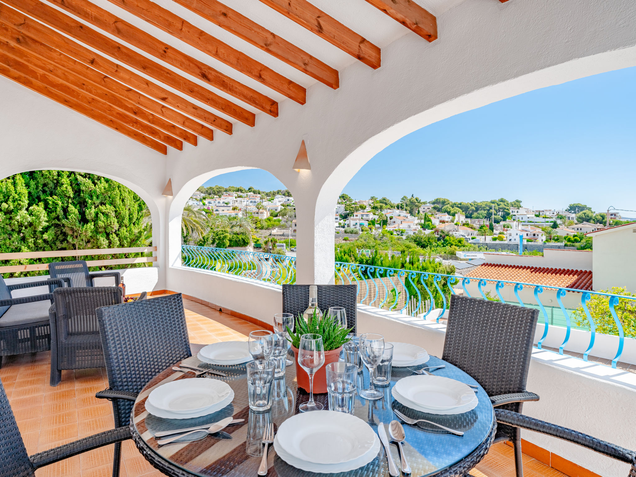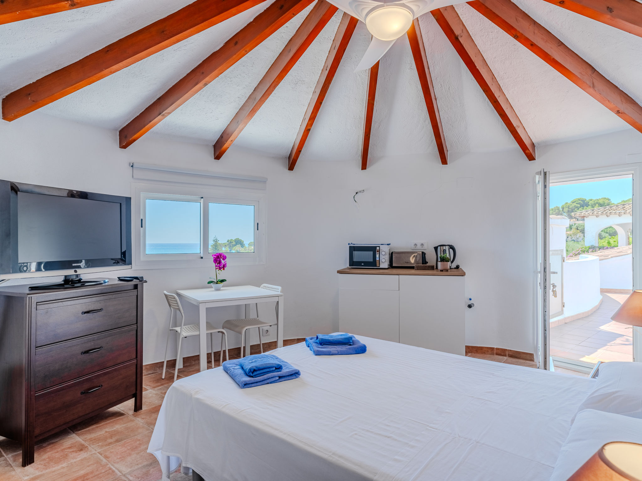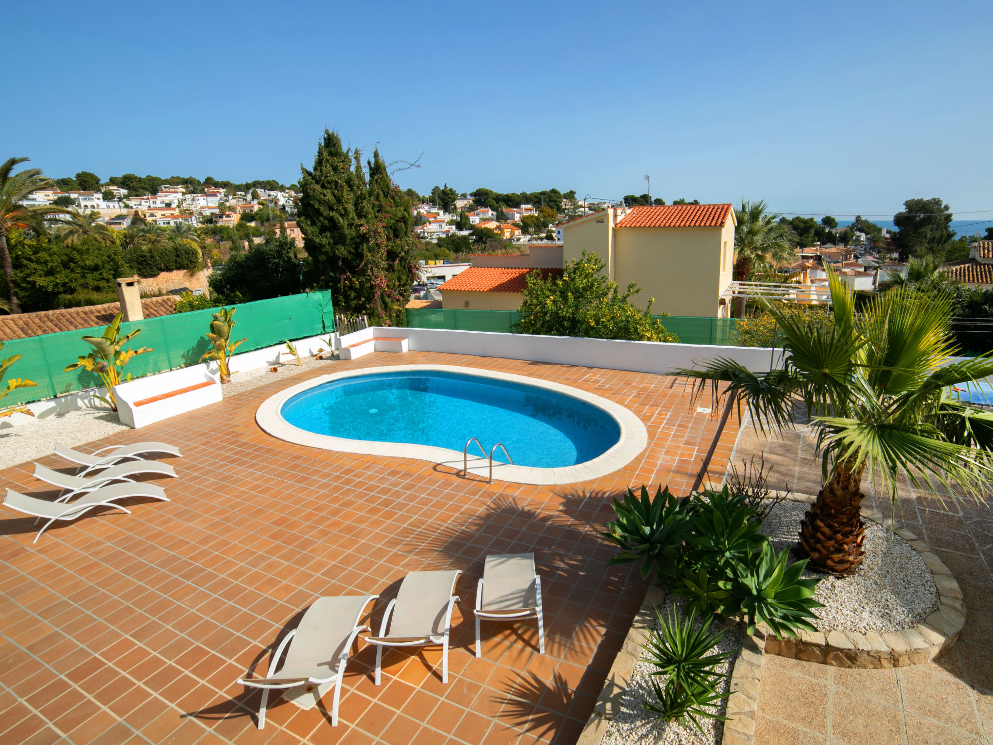 "Luisa", 8-Zimmer-Haus 290 m2 auf 2 Stockwerken. Geräumig und hell, zweckmässig eingerichtet: Wohn-/Esszimmer mit offenem Kamin und Digital-TV. Ausgang zur Terrasse, zum Schwimmbad. 1 Zimmer mit 1 franz. Bett (150 cm, Länge 190 cm), Ventilator. 1 Zimmer mit 2 Betten (90 cm, Länge 190 cm), Ventilator. Küche (Backofen, Geschirrspüler, Mikrowelle, Tiefkühler, elektrische Kaffeemaschine). Bad/WC, Dusche/WC. Heizung. Obergeschoss: (Aussentreppe) Wohn-/Esszimmer mit offenem Kamin, Digital-TV und Ventilator. Ausgang zur Terrasse. 1 Zimmer mit 1 franz. Bett (150 cm, Länge 190 cm), Ventilator. 2 Zimmer, jedes Zimmer mit 2 Betten (90 cm, Länge 190 cm), Ventilator. Küche (Backofen, elektrische Kaffeemaschine). Bad/Bidet/WC, Dusche/WC. 2. Obergeschoss: 1 Zimmer mit 1 franz. Bett (135 cm, Länge 190 cm), Dusche/WC, E-Heizofen und Ventilator. Ausgang zur Terrasse. Terrassenmöbel. Zur Verfügung: Waschmaschine, Bügeleisen, Kinderhochstuhl, Babybett bis 2 Jahre, Haartrockner. Internet (Wireless LAN, gratis). Parkplatz beim Haus. 1 Haustier/Hund erlaubt. AT-445547-A