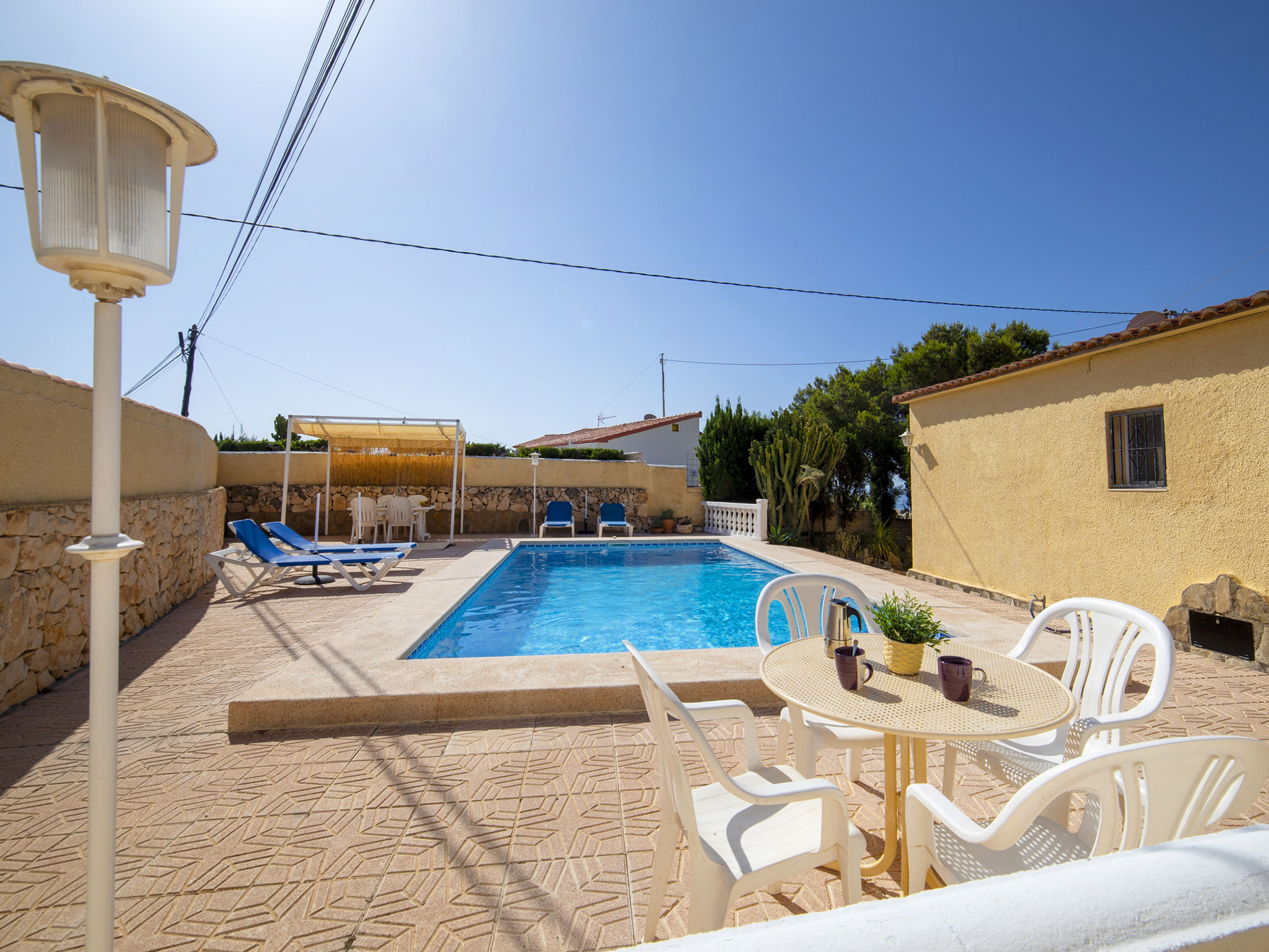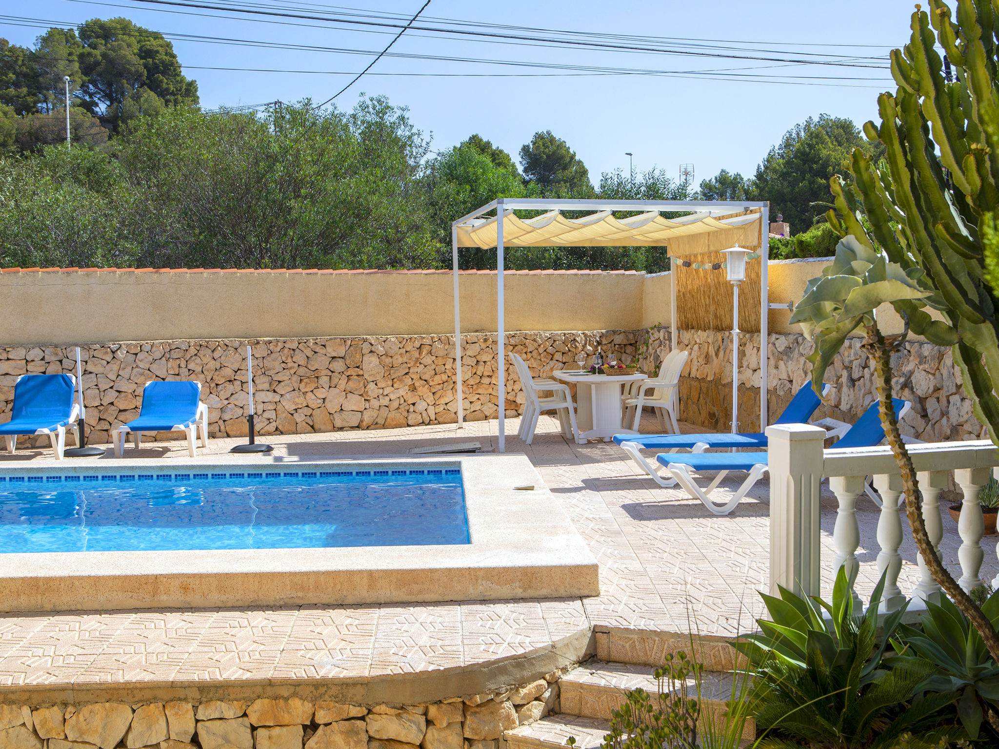 La Canuta: Gemütliches Einfamilienhaus "Villa Servinola". 1 km vom Zentrum von Calpe, 2 km vom Meer. Zur Alleinbenutzung: Grundstück 600 m2, Schwimmbad (8 x 4 m, 01.01.-31.12.) mit Innentreppe. Terrasse, Gartenmöbel. Im Hause: Zentralheizung. Supermarkt 1 km, Einkaufszentrum 1 km, Restaurant 1 km, Bar 1 km, Sandstrand 2 km. Nahe gelegene Sehenswürdigkeiten: Aqualandia, Mundomar, Terra Mítica, Terra Natura, y Benidorm Palace (Benidorm).