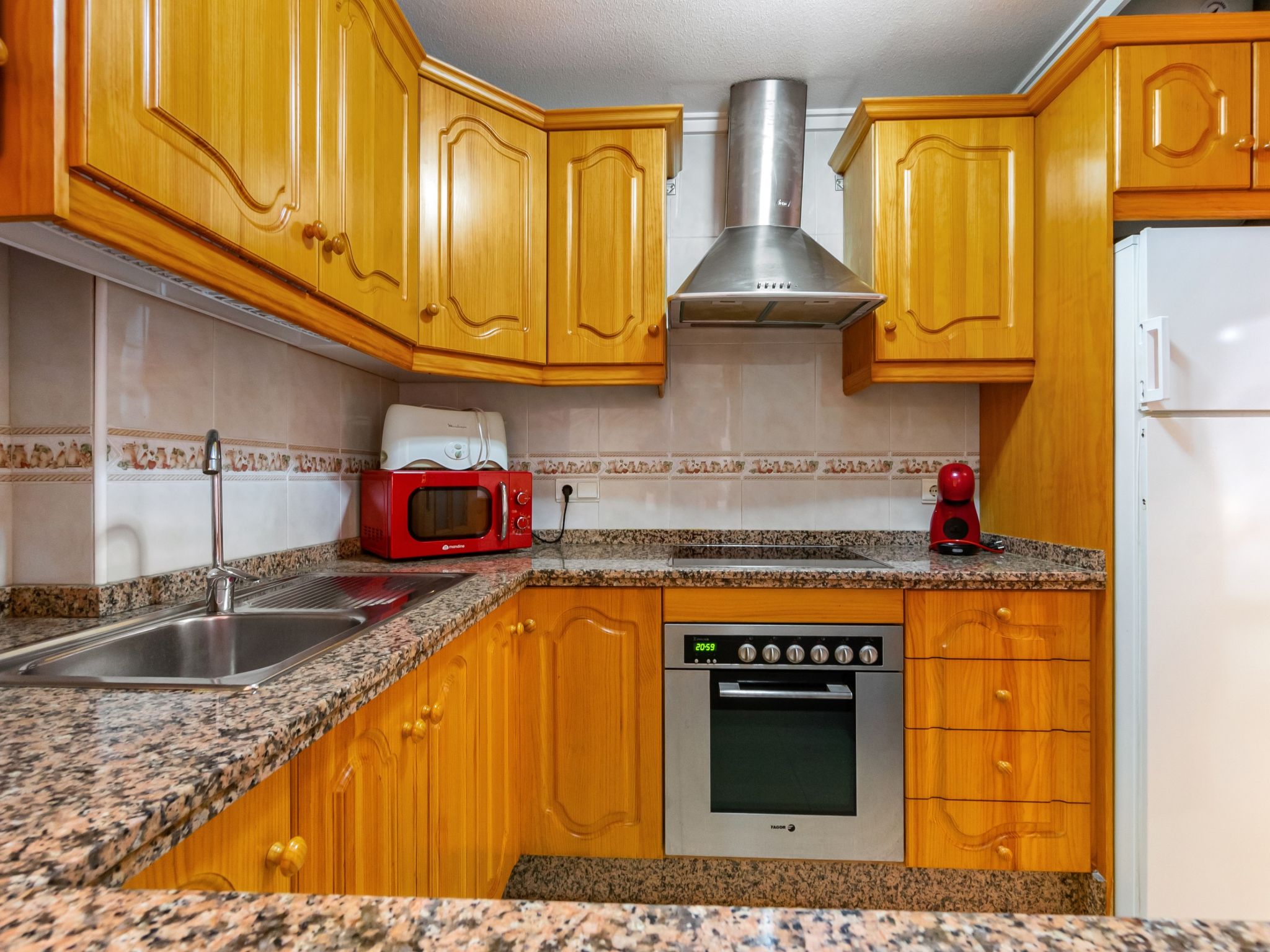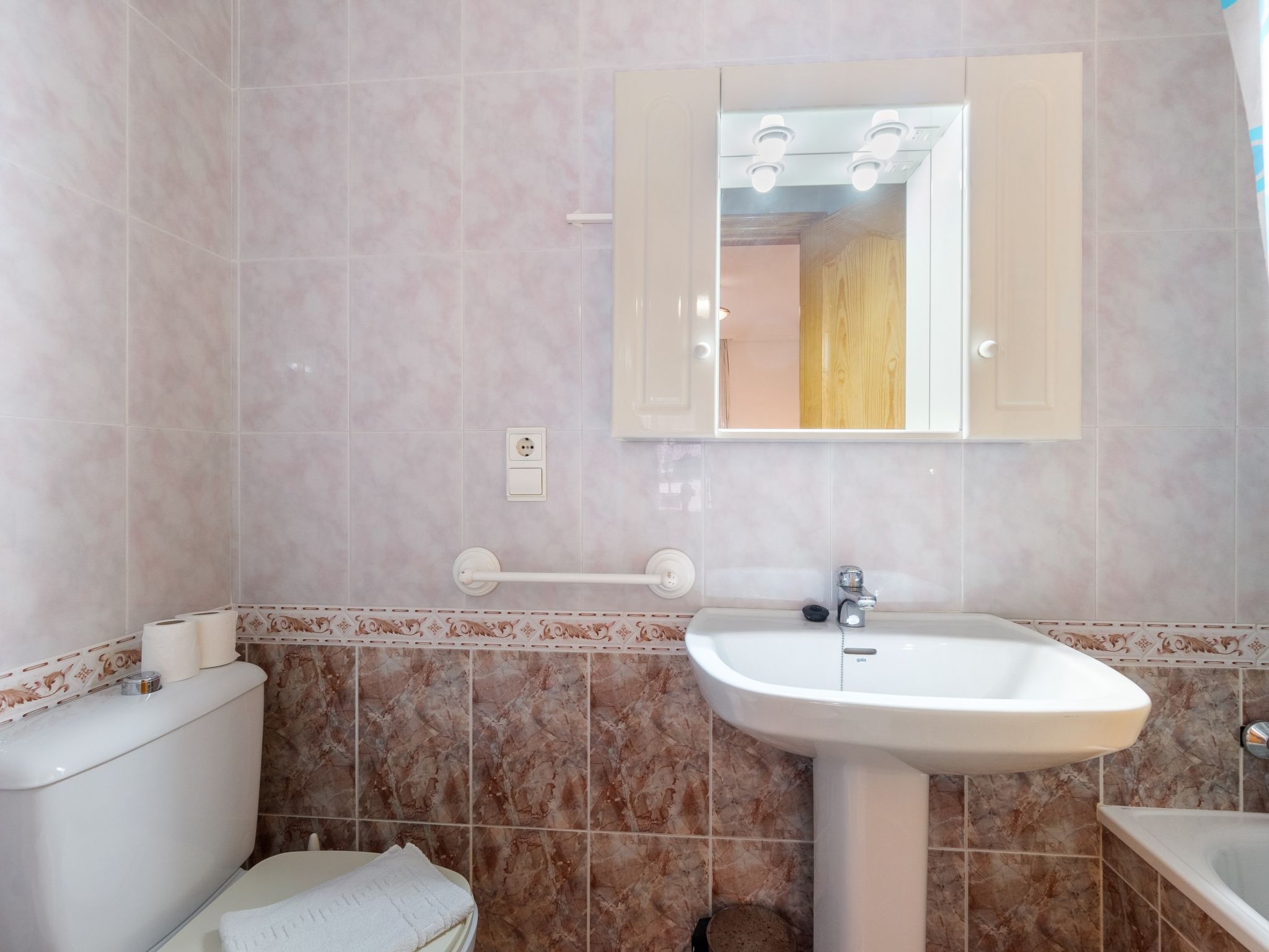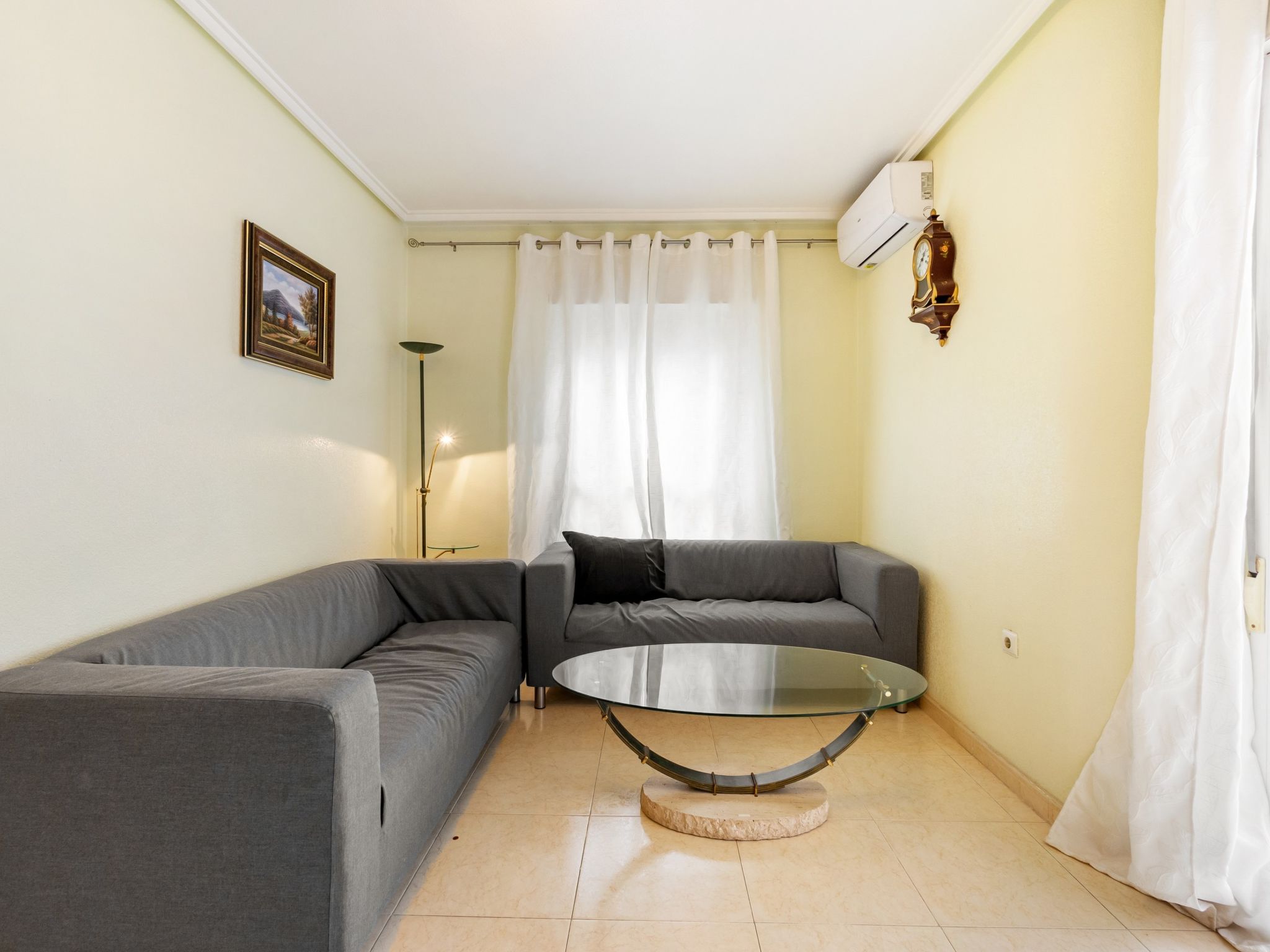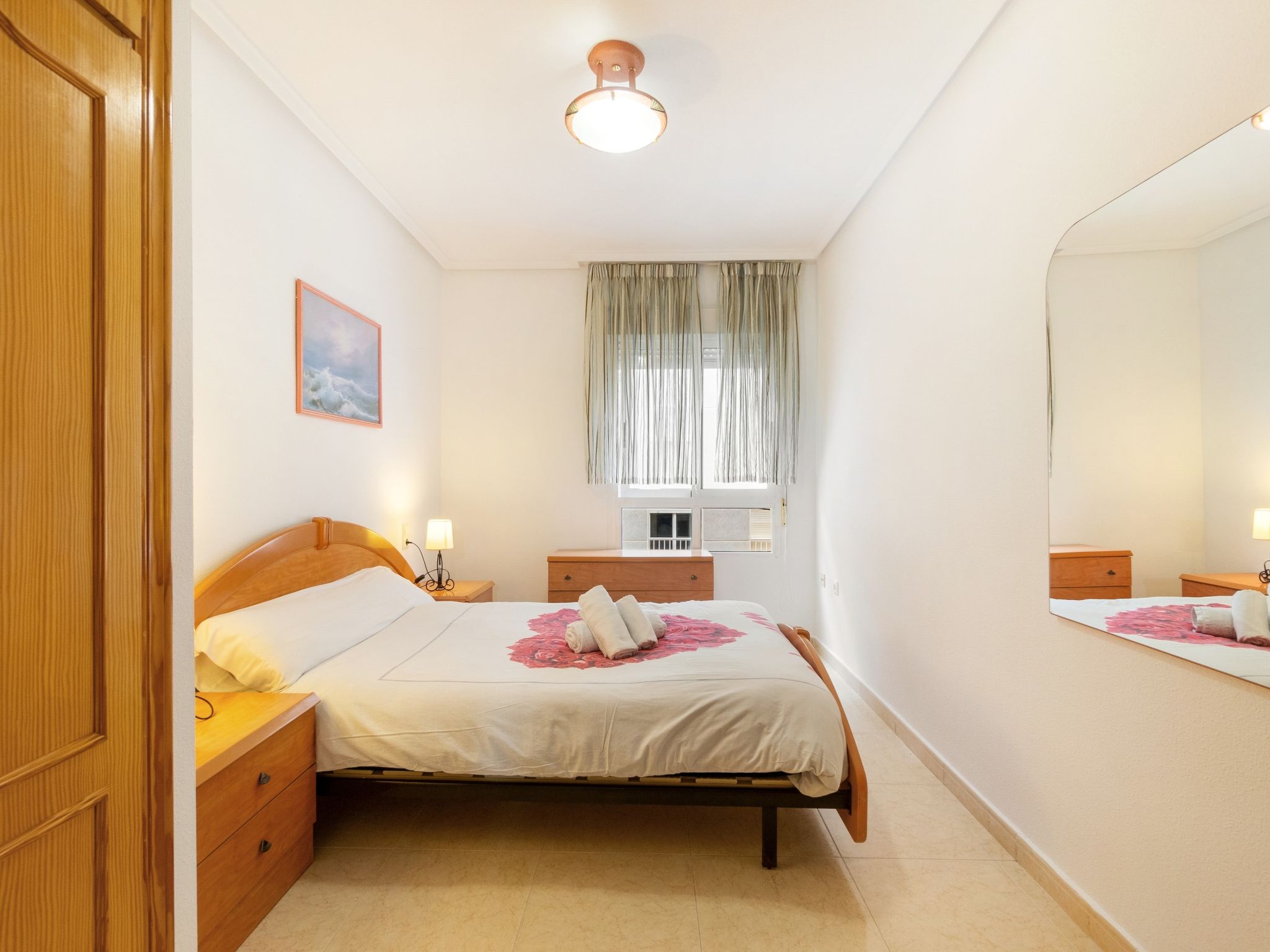 "Edificio Las Americas", 4-Zimmer-Wohnung 80 m2. Geräumig und hell, komfortabel und gemütlich eingerichtet: Wohn-/Esszimmer 20 m2 mit Esstisch, Digital-TV, Flachbildschirm, DVD und Klimaanlage. Ausgang zur Terrasse. 1 Zimmer 12 m2 mit 1 Doppelbett (135 cm, Länge 190 cm), Bad/Bidet/WC. 1 Zimmer 9 m2 mit 2 Betten (80 cm, Länge 190 cm). 1 Zimmer 9 m2 mit 2 Betten (80 cm, Länge 190 cm). Küche (Backofen, 4 Glaskeramikherd Platten, Mikrowelle) mit Durchreiche. Dusche/Bidet/WC. Boiler (50 Liter). Grosse Terrasse. Terrassenmöbel. Zur Verfügung: Waschmaschine. Bitte beachten: Wohnung auf Strassenseite. Nichtraucher-Unterkunft. TV nur ES. AT-441601-A