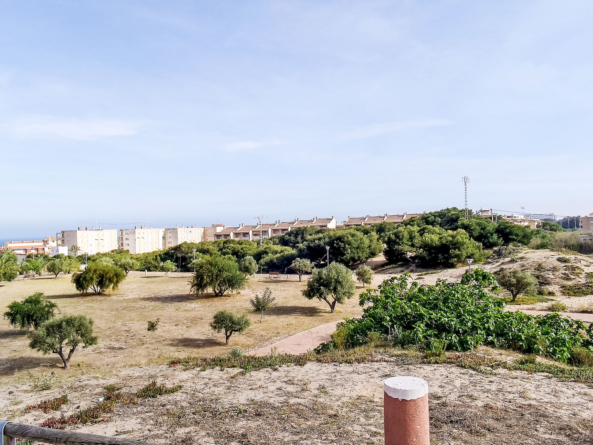 Guardamar del Segura: Grosses, gemütliches, komfortables Appartementhaus "Edificio Las Americas". Im Ort, 500 m vom Zentrum von Guardamar del Segura, ruhige Lage, 650 m vom Meer, 600 m vom Strand. Im Hause: Fahrstuhl. Supermarkt, Restaurant 300 m, Sandstrand "playa de Guardamar del Segura" 600 m.