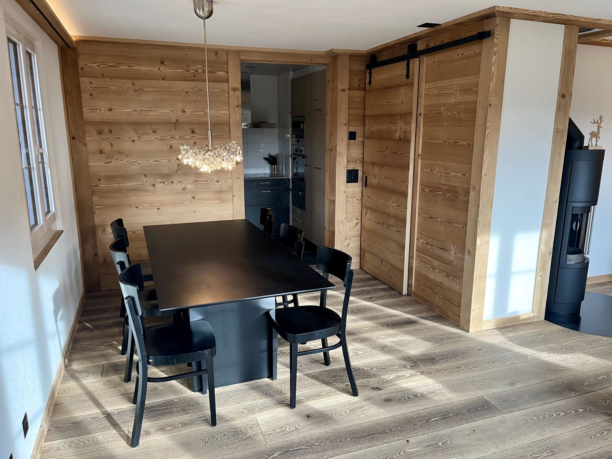 150 m2. Weitere Angaben des Anbieters: Idyllisches, sonnseitig gelegenes 5-Zimmer Chalet (ca. 150m2) im 1. und 2. Stock, mit toller Aussicht, an verkehrsfreier, kinderfreundlicher Lage, direkt an Langlaufloipe und beliebtem Panorama-Wanderweg. Gedeckter Gartensitzplatz mit Grill und sonnigem Balkon. Waschmaschine in der Wohnung vorhanden. Ein Paradies für Kinder! Schlitten fahren oder Bächlein stauen direkt neben dem Chalet. Eine Doppelgarage steht zur Verfügung. Wichtiger Hinweis: Nur für max. 4 Erwachsene und bis zu 4 Kindern buchbar (max. 8 Personen).