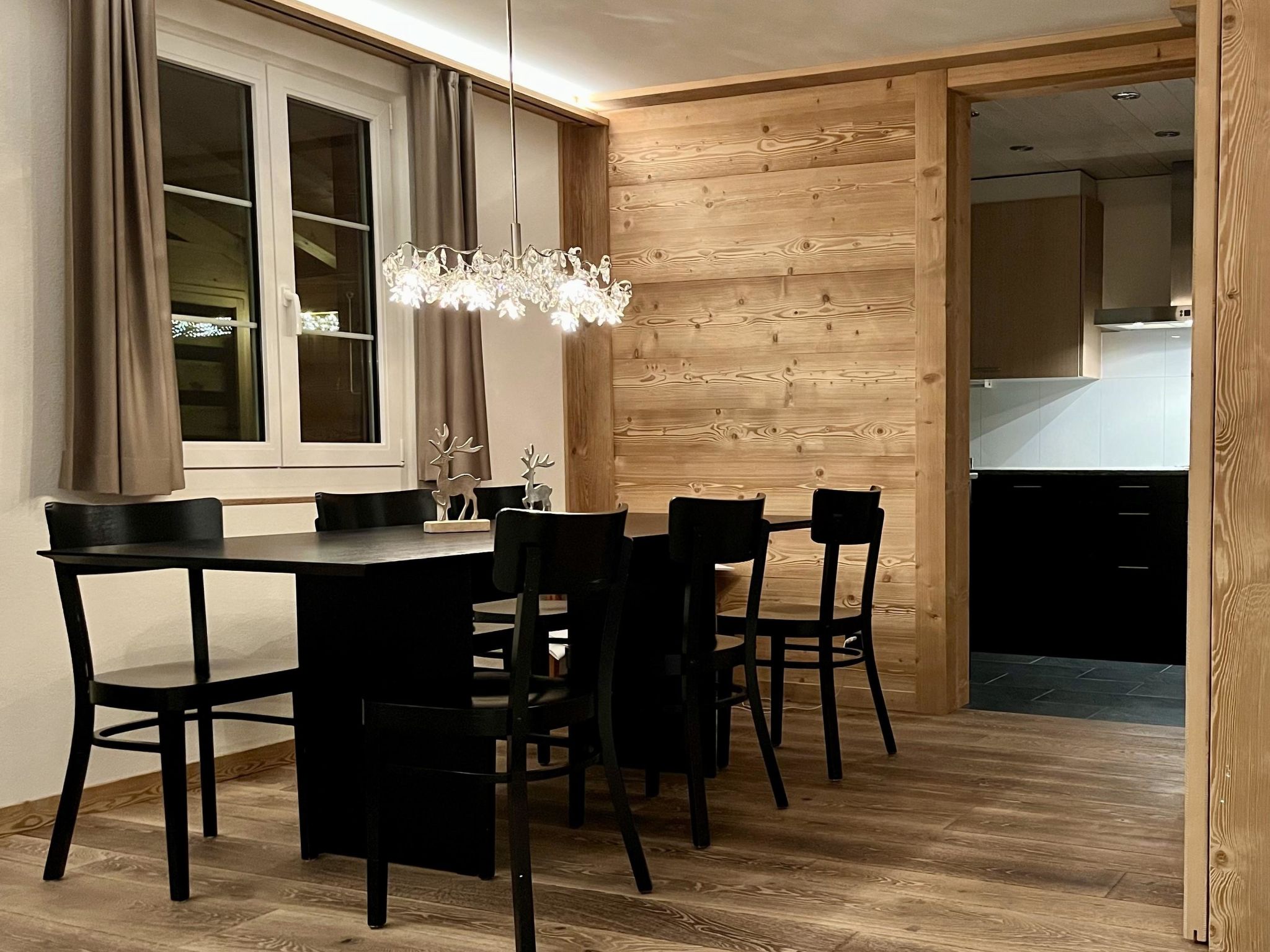 Wichtiger Hinweis: Nur für max. 4 Erwachsene und bis zu 4 Kindern buchbar (max. 8 Personen). Erdgeschoss: beheizter Skiraum, Garderobe, Dusche. 1. Stock: Wohn-/Esszimmer mit Cheminée (ohne Holz), Satelliten-TV, moderne Küche u. a. ausgestattet mit Induktionsherd, Mikrowelle, Kapsel-Kaffeemaschine (Delizio), Fondue- und Raclette-Set. Badezimmer mit Badewanne/WC. 2. Stock: 2 Doppelzimmer (180x200cm) mit Klavier, 1 Schlafzimmer mit 2 Etagenbetten (1x 90x180cm, 1x 90x200cm), nur für Kinder geeignet. 1 separates WC. Kinderbett (80x140cm, exkl. Bettwäsche) vorhanden. WiFi vorhanden.