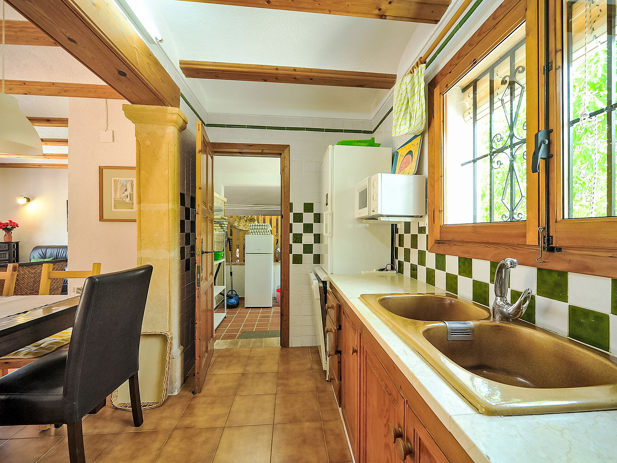 4-Zimmer-Haus 110 m2. Zweckmässig eingerichtet: Wohn-/Esszimmer mit offenem Kamin und Sat-TV (Flachbildschirm), Stereoanlage. Ausgang zur Terrasse. 1 Doppelzimmer mit Klimaanlage und Ventilator. 1 Doppelzimmer mit Dusche/WC, Klimaanlage und Ventilator. Verbundenes Zimmer mit 2 Betten und Ventilator. Offene Küche (Backofen, Geschirrspüler, Mikrowelle, Tiefkühler, elektrische Kaffeemaschine). Bad/Bidet/WC. Terrasse überdacht. Terrassenmöbel, Gartengrill. Zur Verfügung: Waschmaschine. Internet (Wireless LAN, gratis). Parkplatz (eingezäunt) beim Haus. AT425959A