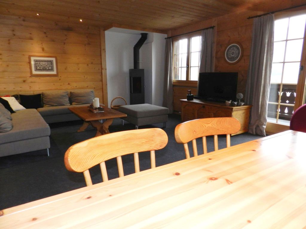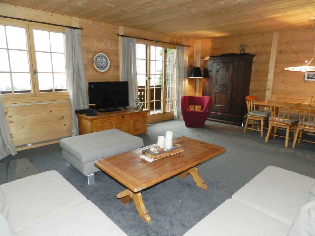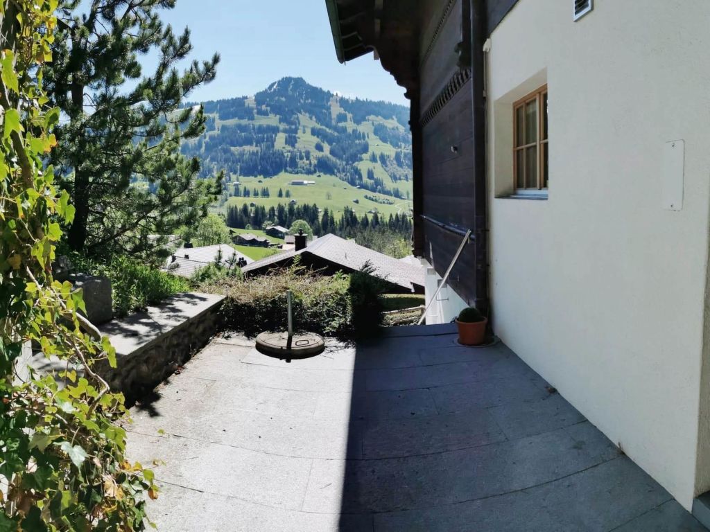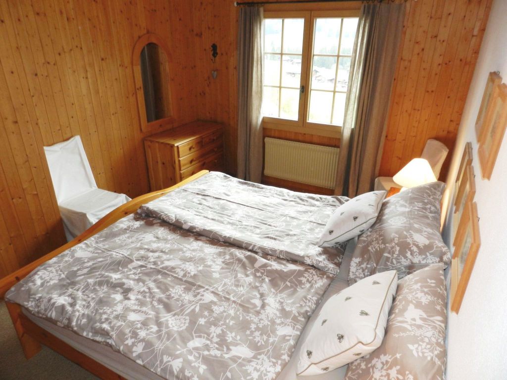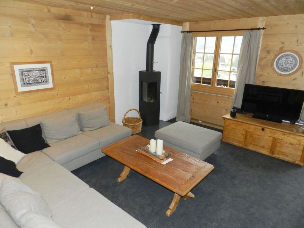 100 m2. Weitere Angaben des Anbieters: Teilrenovierte und liebevoll eingerichtete 5-Zimmerduplexwohnung (100m2) im 1. und 2. Stock eines Zweifamilienchalets mit beeindruckender Panoramaaussicht über das ganze Saanenland. Eine im Sommer möblierte Terrasse (mit Grill) vor dem Wohnungseingang und ein Balkon im 1. Stock sind vorhanden. 1 Parkplatz in der Garage (Höhe 1m95), 1 ungedeckter Aussenparkplatz, ein Abstellraum für Sportgeräte sowie eine eigene Waschmaschine im Heizungsraum stehen zur Verfügung. Das Chalet Häftli eignet sich für Sommer- und Winterferien und liegt 850m (10 Gehminuten) von der Bäckerei mit kleinem Lebensmittelladen, 1.2km (ca. 15 Gehminuten) vom Bahnhof, Molkerei und Metzgerei sowie 1.5km vom Sessellift Horneggli entfernt. -> Wichtige Information: Aufgrund der offenen Treppe ist mit Kleinkindern Vorsicht geboten. Jegliche Haftung bei einem Unfall wird seitens Gstaad Saanenland Tourismus und seitens des Eigentümers abgelehnt! 1. Stock: Wohn-/Esszimmer mit Esstisch, Sofa, TV, Schwedenofen und Balkonzugang. Kleine separate Küche mit Backofen, Kühlschrank mit Gefrierfach, Geschirrspülmaschine, Kapsel-Kaffeemaschine (Nespresso) sowie Fondue- und Raclette-Set. 1 Badezimmer mit Dusche/WC. 2. Stock: 2 Schlafzimmer mit je 1 Doppelbett (2x90x200cm). 1 Schlafzimmer mit 2 Einzelbetten (je 95x190cm). 1 kleines Schlafzimmer mit 1 Etagenbett (2x90x200cm). 1 Badezimmer mit Dusche/WC. WiFi. Kinderbett (60x120cm) inkl. Bettwäsche, Kinderhochstuhl und Babywippe vorhanden. INKLUSIVE: Elektrizität, Heizung, Wasser, 1 Parkplatz in der Garage, 1 ungedeckter Aussenparkplatz, Waschmaschine, Cheminéeholz, WiFi, Kinderbett (60x120cm) inkl. Bettwäsche, Kinderhochstuhl, Küchen-, Badezimmer- und Bettwäsche (Erstausstattung) sowie Kurtaxen und Endreinigung. EXKLUSIVE: Kapseln für Kaffeemaschine (Nespresso). ***Haustiere nicht erlaubt*** ***Kaution: CHF/EUR 300.00 bei Anreise direkt vor Ort bar beim Schlüsselhalter zu bezahlen***.