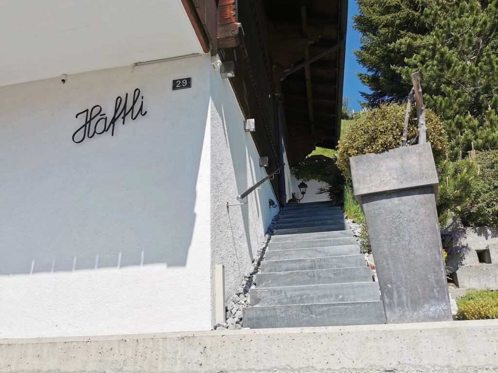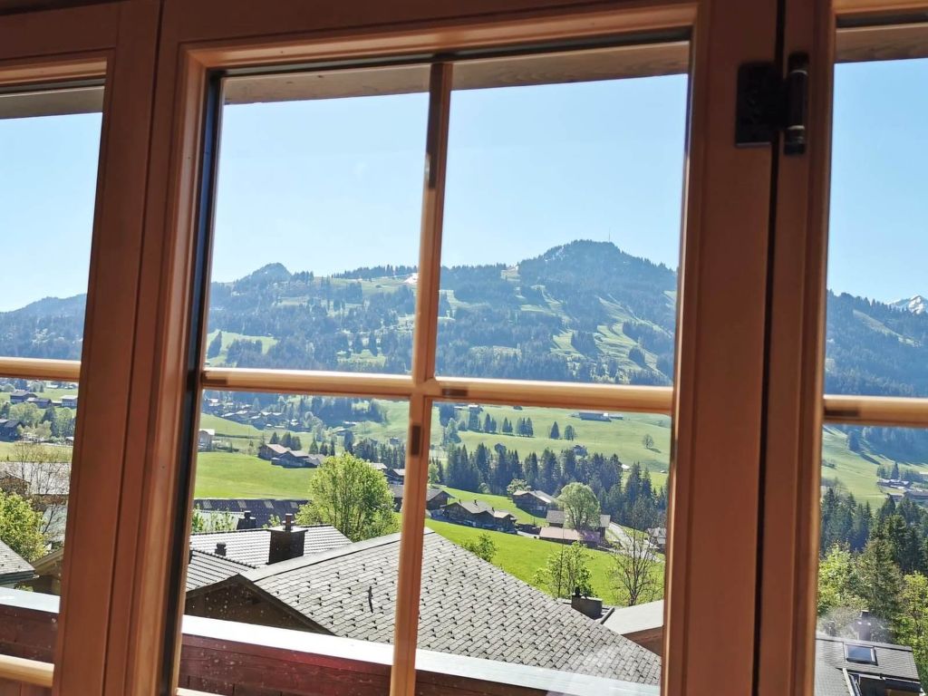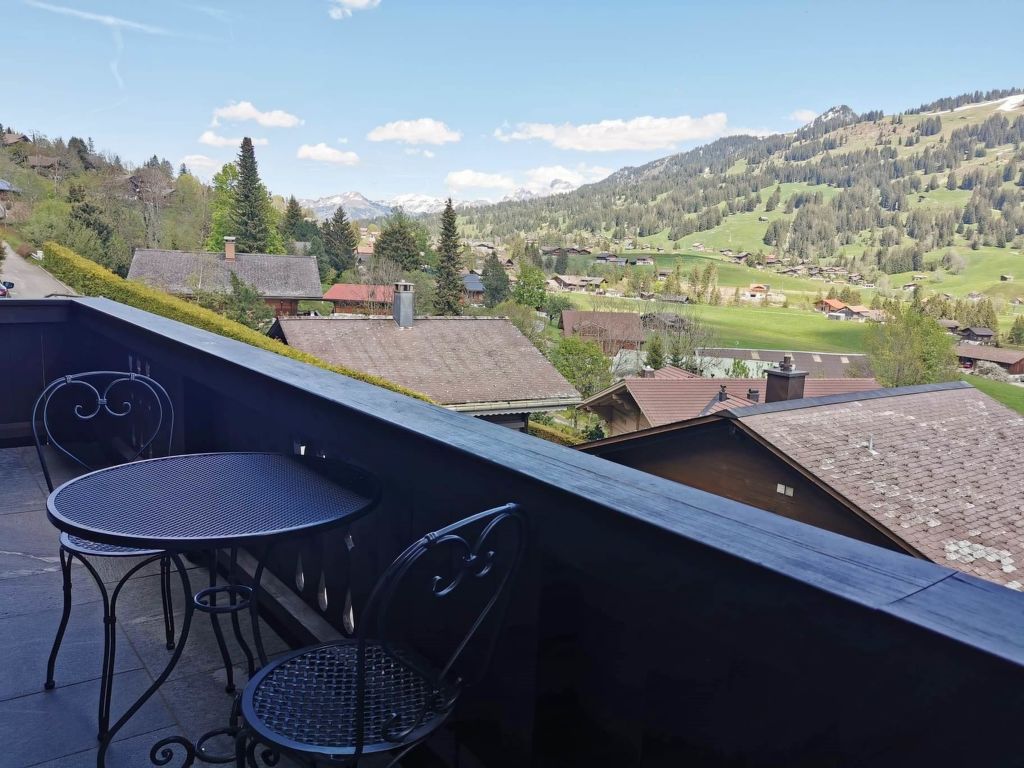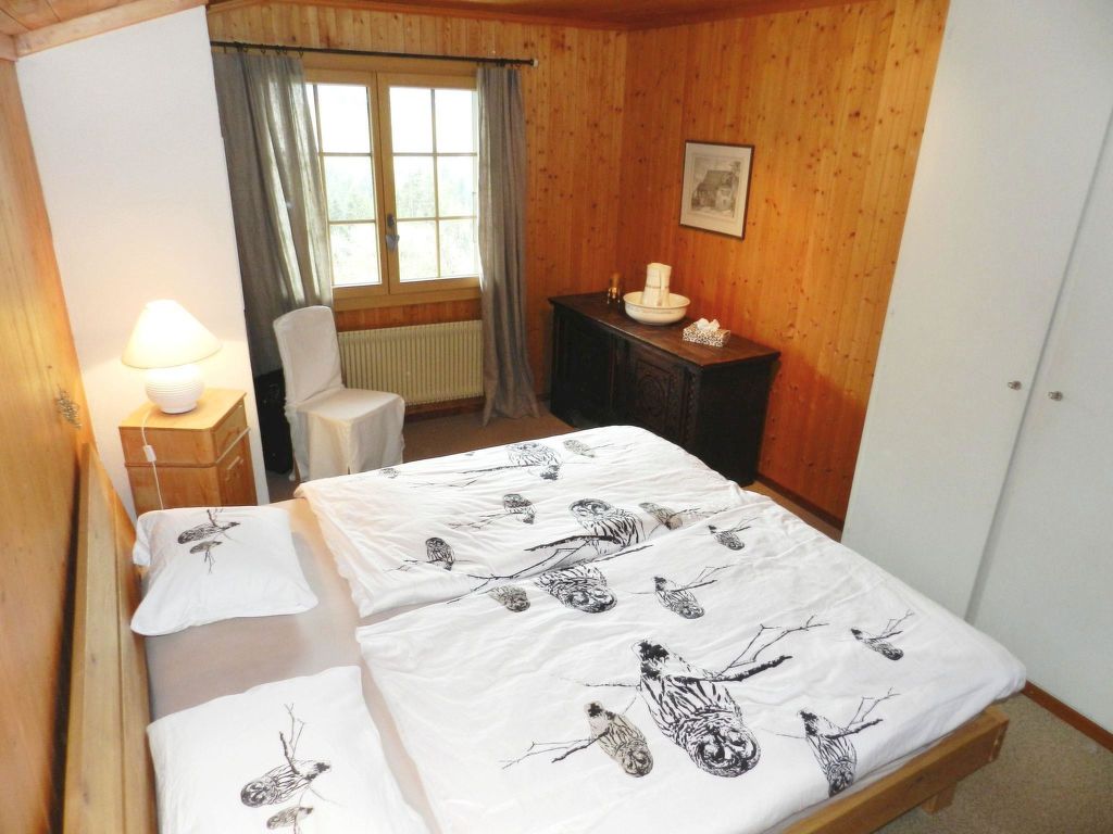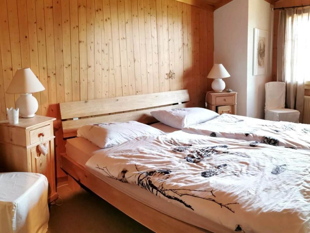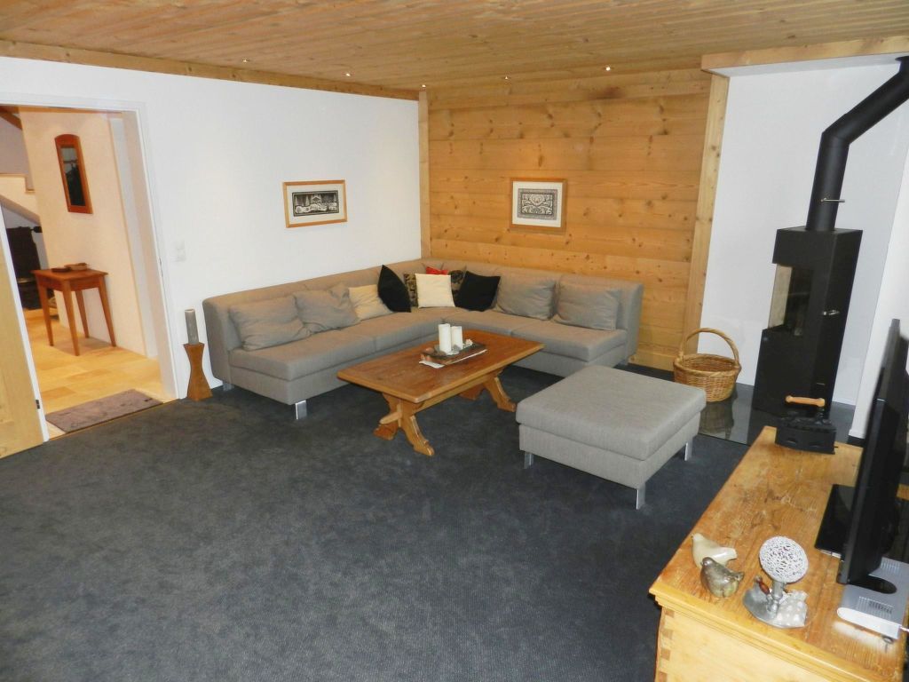 100 m2. Weitere Angaben des Anbieters: Teilrenovierte und liebevoll eingerichtete 5-Zimmerduplexwohnung (100m2) im 1. und 2. Stock eines Zweifamilienchalets mit beeindruckender Panoramaaussicht über das ganze Saanenland. Eine im Sommer möblierte Terrasse (mit Grill) vor dem Wohnungseingang und ein Balkon im 1. Stock sind vorhanden. 1 Parkplatz in der Garage (Höhe 1m95), 1 ungedeckter Aussenparkplatz, ein Abstellraum für Sportgeräte sowie eine eigene Waschmaschine im Heizungsraum stehen zur Verfügung. Das Chalet Häftli eignet sich für Sommer- und Winterferien und liegt 850m (10 Gehminuten) von der Bäckerei mit kleinem Lebensmittelladen, 1.2km (ca. 15 Gehminuten) vom Bahnhof, Molkerei und Metzgerei sowie 1.5km vom Sessellift Horneggli entfernt. -> Wichtige Information: Aufgrund der offenen Treppe ist mit Kleinkindern Vorsicht geboten. Jegliche Haftung bei einem Unfall wird seitens Gstaad Saanenland Tourismus und seitens des Eigentümers abgelehnt! 1. Stock: Wohn-/Esszimmer mit Esstisch, Sofa, TV, Schwedenofen und Balkonzugang. Kleine separate Küche mit Backofen, Kühlschrank mit Gefrierfach, Geschirrspülmaschine, Kapsel-Kaffeemaschine (Nespresso) sowie Fondue- und Raclette-Set. 1 Badezimmer mit Dusche/WC. 2. Stock: 2 Schlafzimmer mit je 1 Doppelbett (2x90x200cm). 1 Schlafzimmer mit 2 Einzelbetten (je 95x190cm). 1 kleines Schlafzimmer mit 1 Etagenbett (2x90x200cm). 1 Badezimmer mit Dusche/WC. WiFi. Kinderbett (60x120cm) inkl. Bettwäsche, Kinderhochstuhl und Babywippe vorhanden. INKLUSIVE: Elektrizität, Heizung, Wasser, 1 Parkplatz in der Garage, 1 ungedeckter Aussenparkplatz, Waschmaschine, Cheminéeholz, WiFi, Kinderbett (60x120cm) inkl. Bettwäsche, Kinderhochstuhl, Küchen-, Badezimmer- und Bettwäsche (Erstausstattung) sowie Kurtaxen und Endreinigung. EXKLUSIVE: Kapseln für Kaffeemaschine (Nespresso). ***Haustiere nicht erlaubt*** ***Kaution: CHF/EUR 300.00 bei Anreise direkt vor Ort bar beim Schlüsselhalter zu bezahlen***.