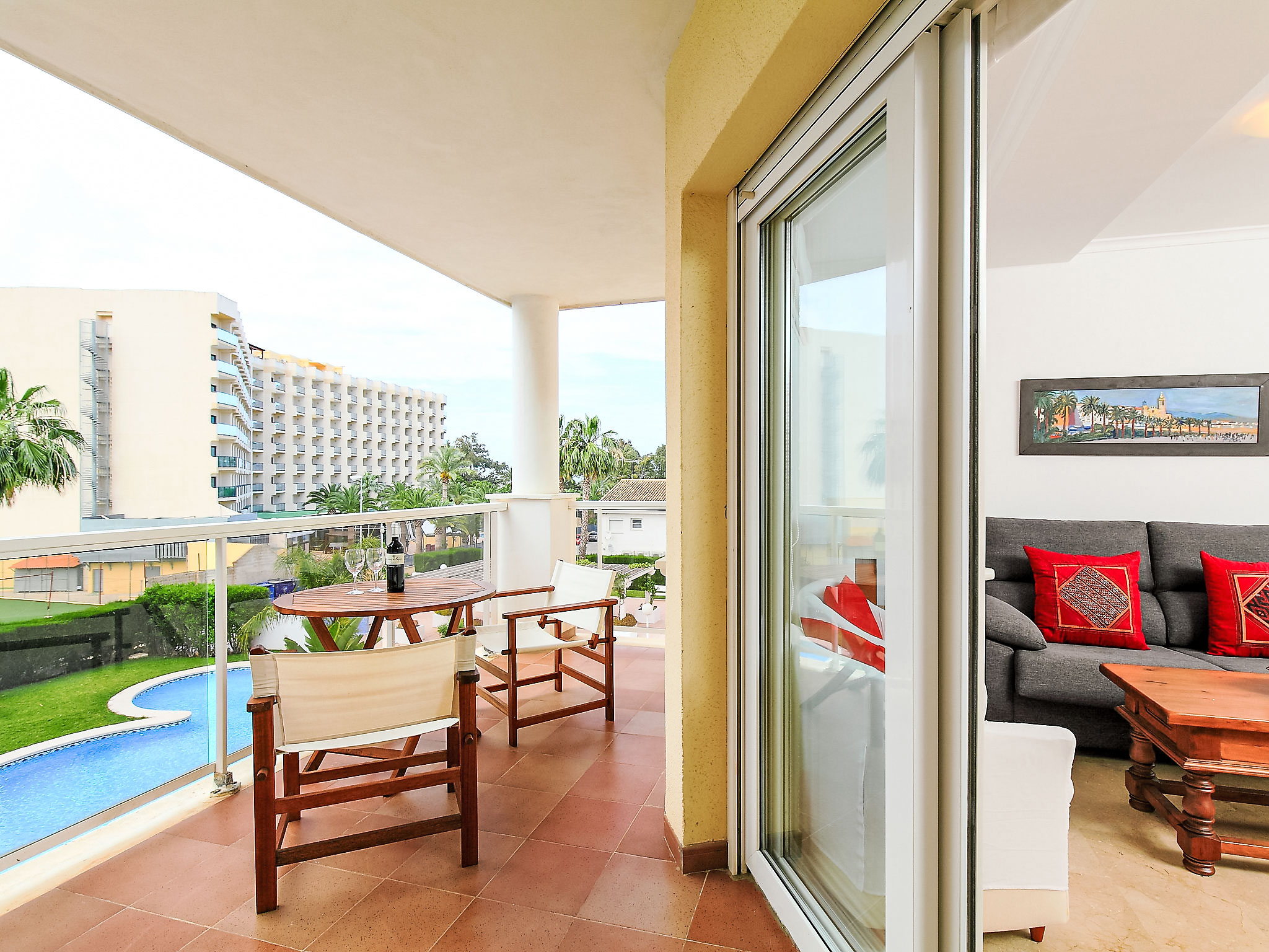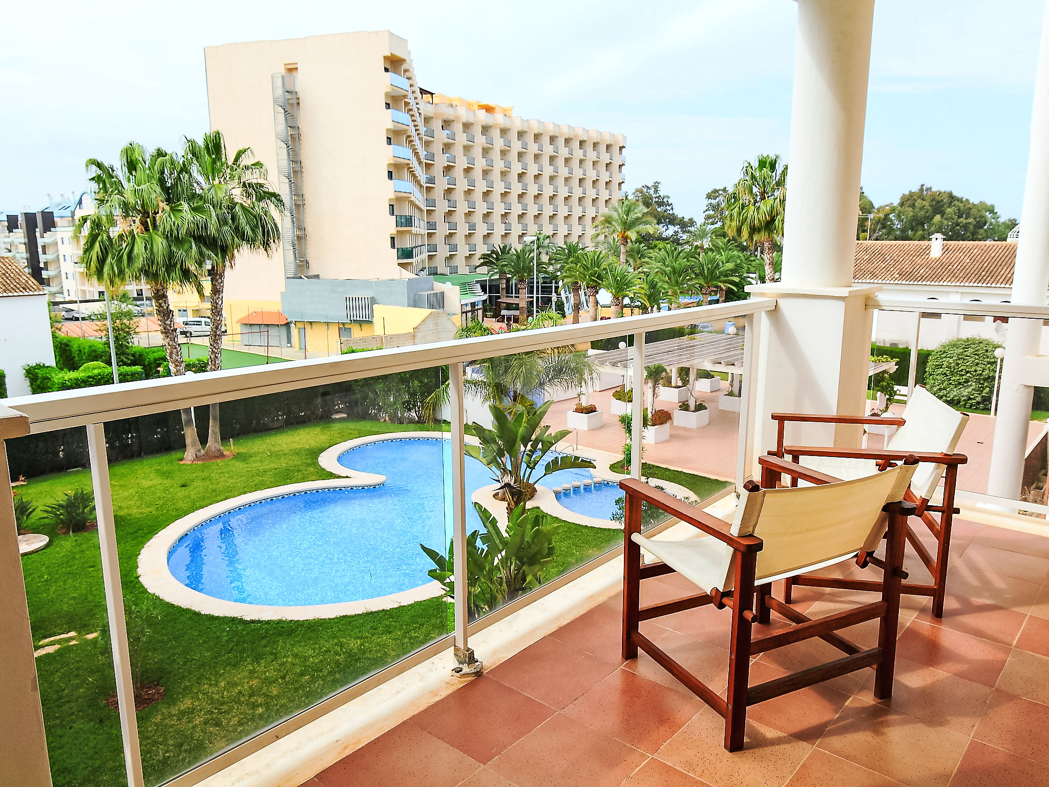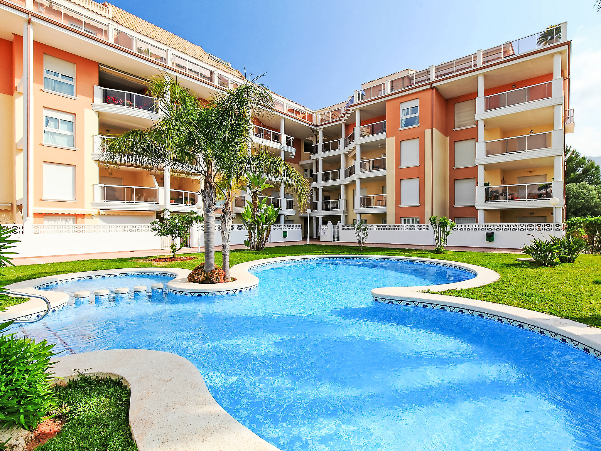 Sorts de la Mar 1 km von Dénia: Sehr schönes, komfortables Appartementhaus "Estrella del Mar", auf 3 Stockwerken. Am Ortsrand, 1 km vom Zentrum von Dénia, 130 m vom Meer, 130 m vom Strand, Richtung Norden. Zur Mitbenutzung: grosser Garten (eingezäunt) mit Rasen und Bäumen, Schwimmbad (12 x 8 m, 80 - 210 cm tief, saisonale Verfügbarkeit: 01.Jan.-31.Dez.). Ungleichmässige Schwimmbadform, Kinderbecken, Aussendusche, Nahe gelegene Sehenswürdigkeiten: club náutico 500 m. Der Besitzer akzeptiert keine Jugendgruppen.