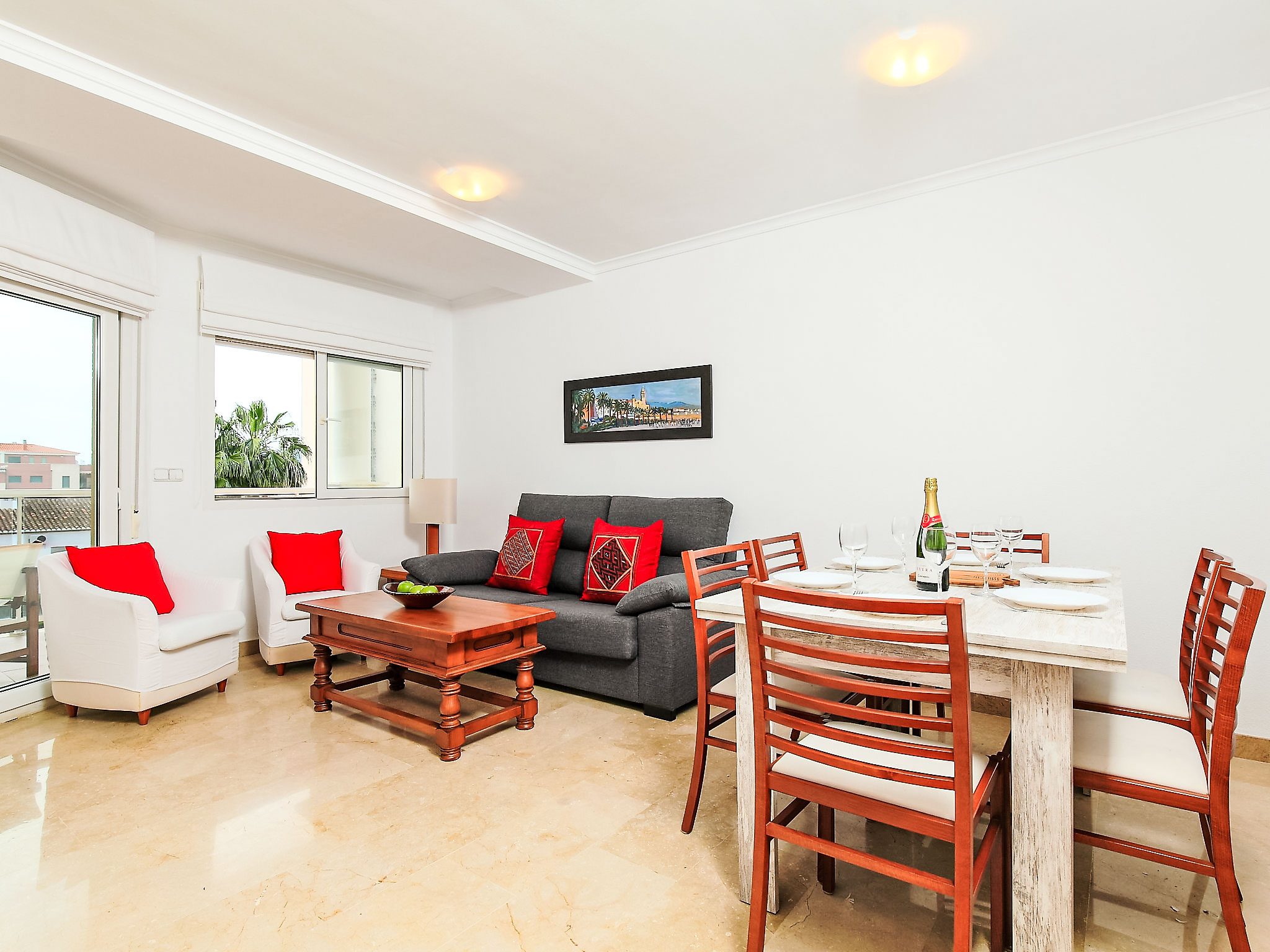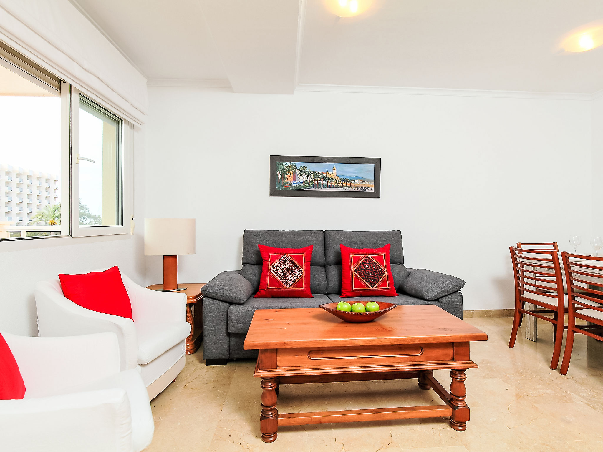 "Estrella del Mar", 3-Zimmer-Wohnung im 2. Stock, Nordwestlage. Geräumig, sehr komfortabel und modern eingerichtet: Wohn-/Esszimmer mit Sat-TV und Internationale TV-Sender (Flachbildschirm), Klimaanlage und Warmluftheizung. Ausgang zur Terrasse. 1 Zimmer mit 1 franz. Bett, Bad/Bidet/WC, Klimaanlage und Warmluftheizung. 1 Zimmer mit 2 Betten (90 cm), Klimaanlage und Warmluftheizung. Küche (Backofen, Geschirrspüler, 4 Glaskeramikherd Platten, Mikrowelle, Tiefkühler, elektrische Kaffeemaschine). Bad/Bidet/WC. Zur Verfügung: Waschmaschine, Bügeleisen, Haartrockner. Internet (Wireless LAN, gratis). Garage. Bitte beachten: Nichtraucher-Unterkunft. 1 Haustier/Hund erlaubt. AT-447361-A