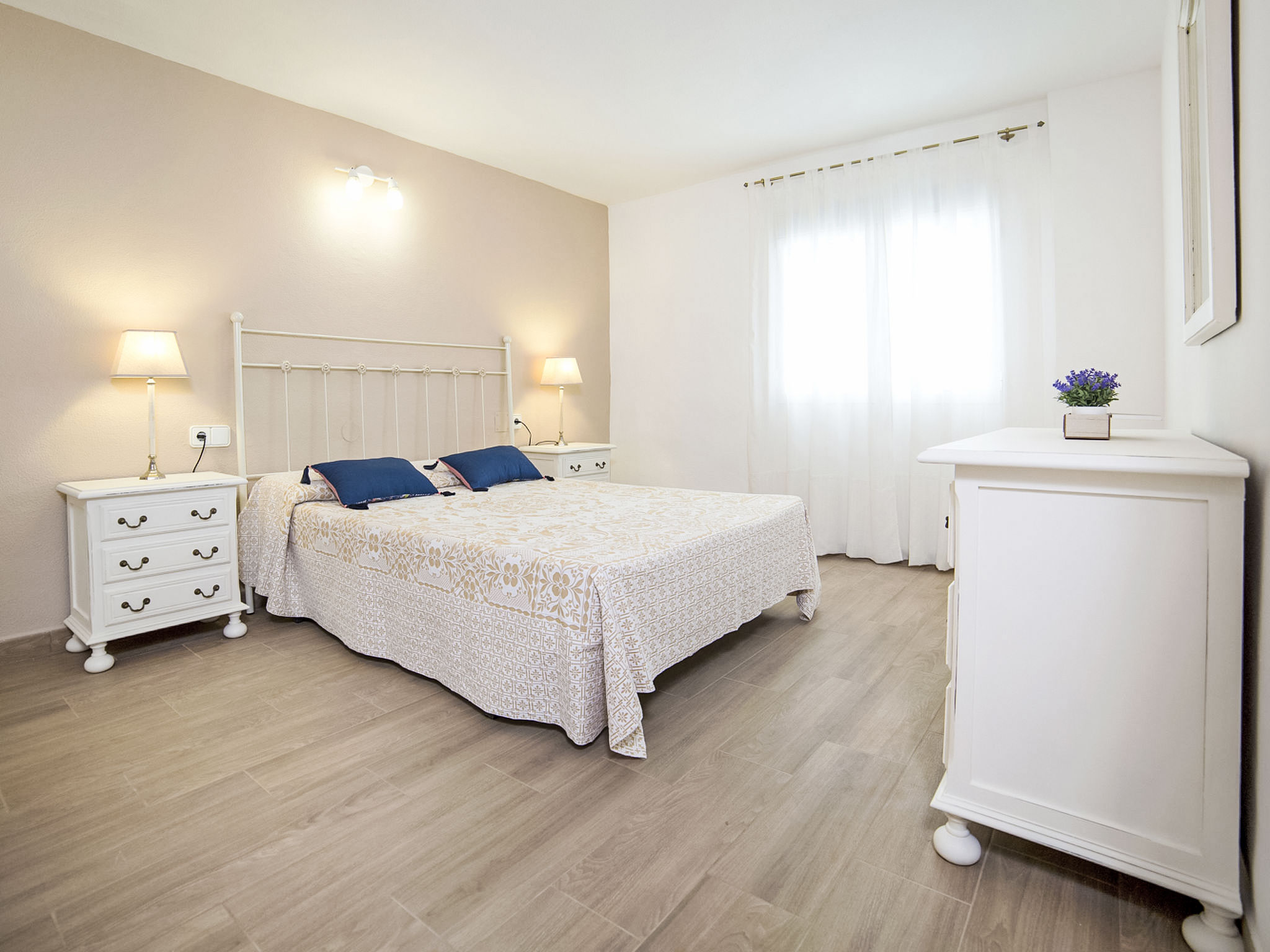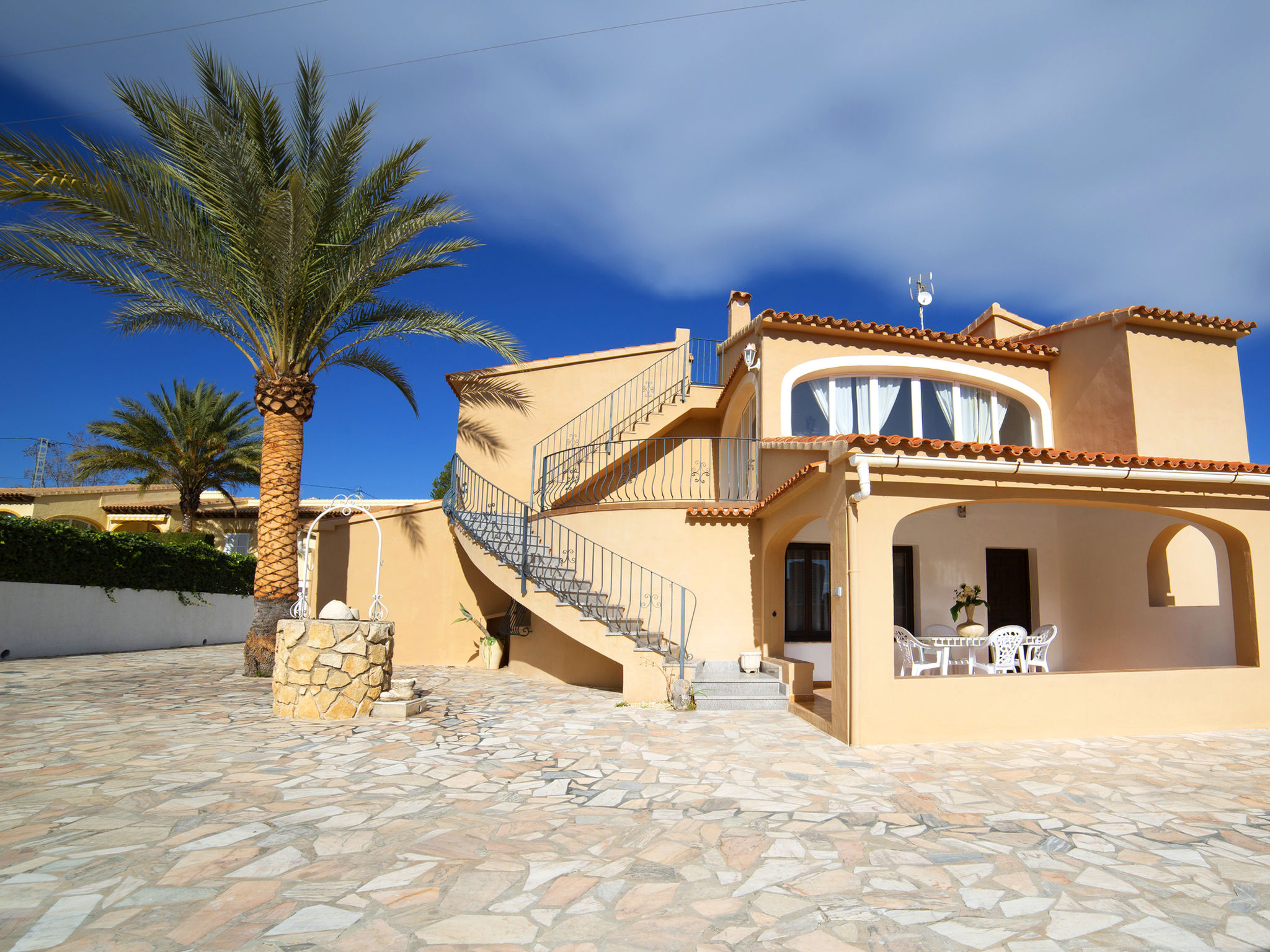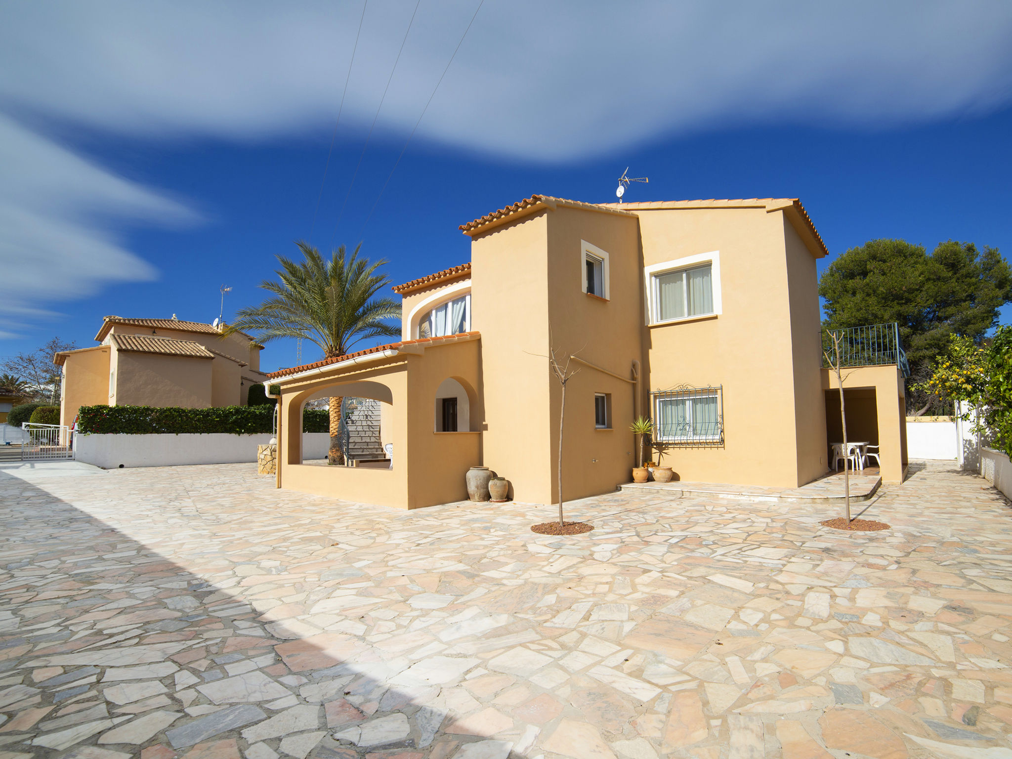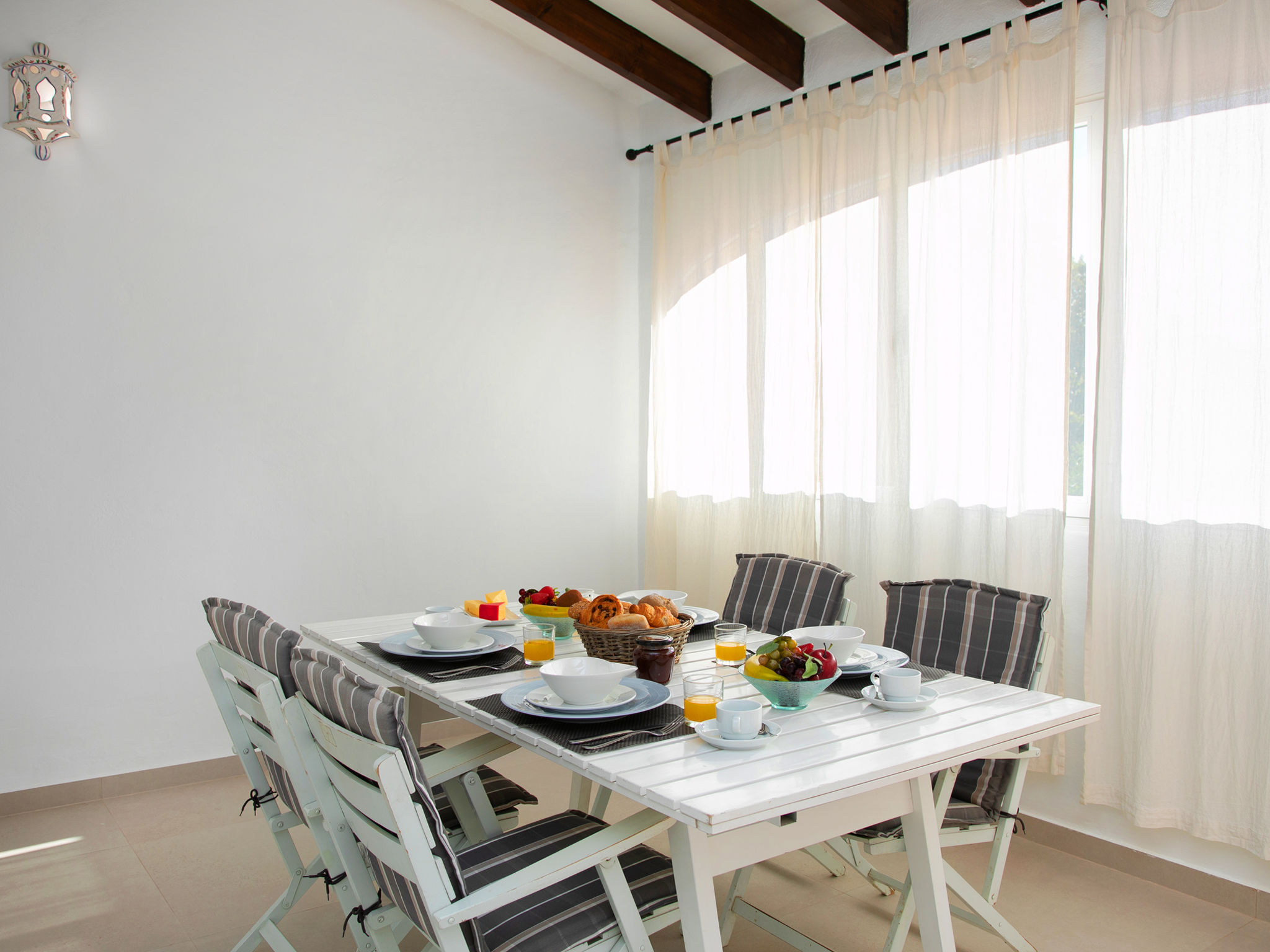 "Campos", 7-Zimmer-Haus 180 m2 auf 2 Stockwerken. Geräumig und hell, zweckmässig und komfortabel eingerichtet: Wohn-/Esszimmer mit Sat-TV und Digital-TV. Ausgang zur Terrasse. 1 Zimmer mit 1 franz. Bett (150 cm, Länge 190 cm), Ventilator. 1 Zimmer mit 2 Betten (90 cm, Länge 190 cm), Ventilator. Offene Küche (4 Kochplatten, Backofen, Toaster, Wasserkocher, Mikrowelle, Tiefkühler, elektrische Kaffeemaschine). Dusche/WC. Obergeschoss: (Aussentreppe) Wohn-/Esszimmer 40 m2 mit offenem Kamin, Sat-TV und Digital-TV. Ausgang zur Veranda. 1 Zimmer mit 1 franz. Bett (150 cm, Länge 190 cm), Ventilator. 1 Zimmer mit 2 Betten (90 cm, Länge 190 cm), Ventilator. 1 Zimmer mit 2 Betten (90 cm, Länge 190 cm), Dusche/Bidet/WC und Ventilator. Küche (4 Kochplatten, Backofen, Mikrowelle, Tiefkühler, Grill, elektrische Kaffeemaschine). Dusche/Bidet/WC. Grosse Terrasse. Terrassenmöbel, Gartengrill, Liegestühle, Loggia. Sicht auf die Ortschaft. Zur Verfügung: Waschmaschine, Bügeleisen, Fliegengitter, Kinderhochstuhl, Babybett bis 2 Jahre, Haartrockner. Internet (Wireless LAN, gratis). Parkplatz (eingezäunt). Geeignet für Familien. AT-419997-A