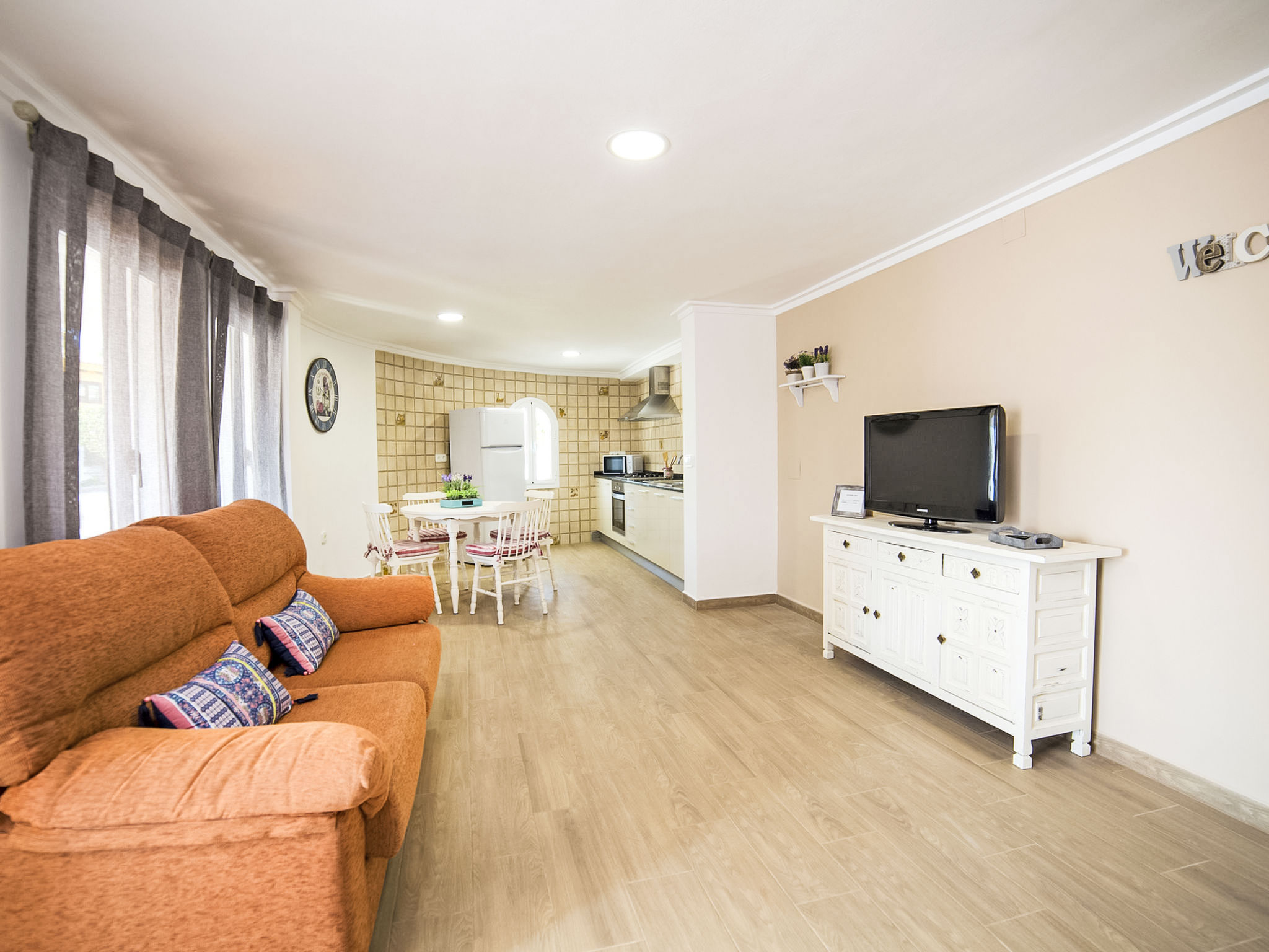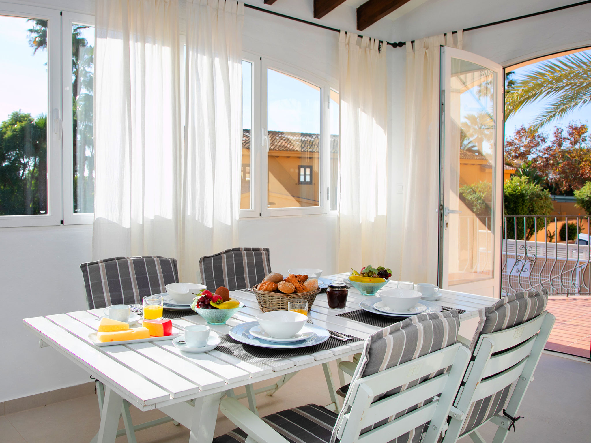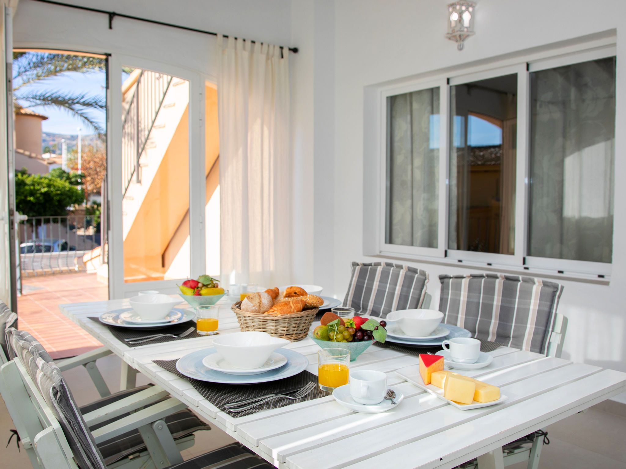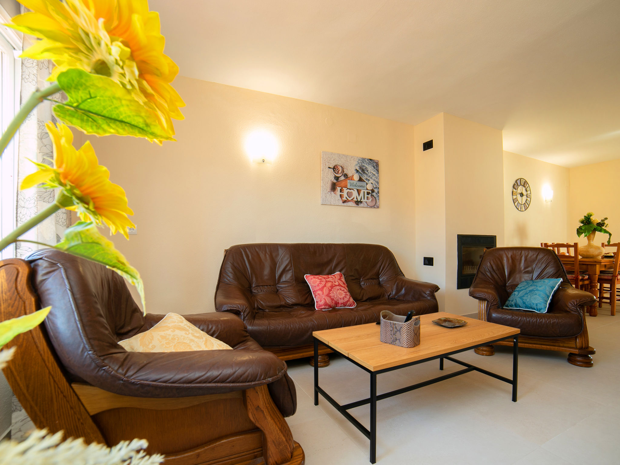 "Campos", 7-Zimmer-Haus 180 m2 auf 2 Stockwerken. Geräumig und hell, zweckmässig und komfortabel eingerichtet: Wohn-/Esszimmer mit Sat-TV und Digital-TV. Ausgang zur Terrasse. 1 Zimmer mit 1 franz. Bett (150 cm, Länge 190 cm), Ventilator. 1 Zimmer mit 2 Betten (90 cm, Länge 190 cm), Ventilator. Offene Küche (4 Kochplatten, Backofen, Toaster, Wasserkocher, Mikrowelle, Tiefkühler, elektrische Kaffeemaschine). Dusche/WC. Obergeschoss: (Aussentreppe) Wohn-/Esszimmer 40 m2 mit offenem Kamin, Sat-TV und Digital-TV. Ausgang zur Veranda. 1 Zimmer mit 1 franz. Bett (150 cm, Länge 190 cm), Ventilator. 1 Zimmer mit 2 Betten (90 cm, Länge 190 cm), Ventilator. 1 Zimmer mit 2 Betten (90 cm, Länge 190 cm), Dusche/Bidet/WC und Ventilator. Küche (4 Kochplatten, Backofen, Mikrowelle, Tiefkühler, Grill, elektrische Kaffeemaschine). Dusche/Bidet/WC. Grosse Terrasse. Terrassenmöbel, Gartengrill, Liegestühle, Loggia. Sicht auf die Ortschaft. Zur Verfügung: Waschmaschine, Bügeleisen, Fliegengitter, Kinderhochstuhl, Babybett bis 2 Jahre, Haartrockner. Internet (Wireless LAN, gratis). Parkplatz (eingezäunt). Geeignet für Familien. AT-419997-A