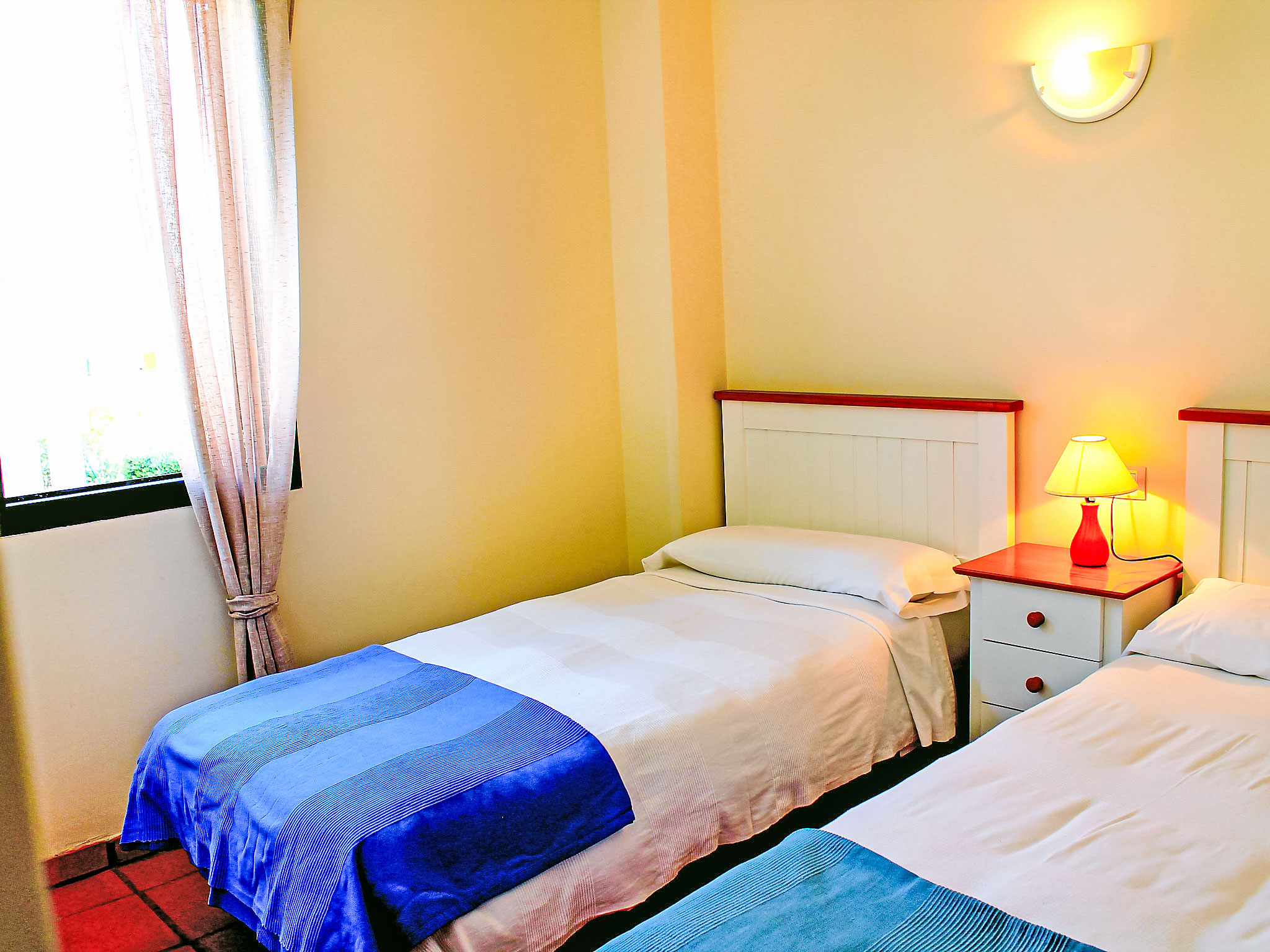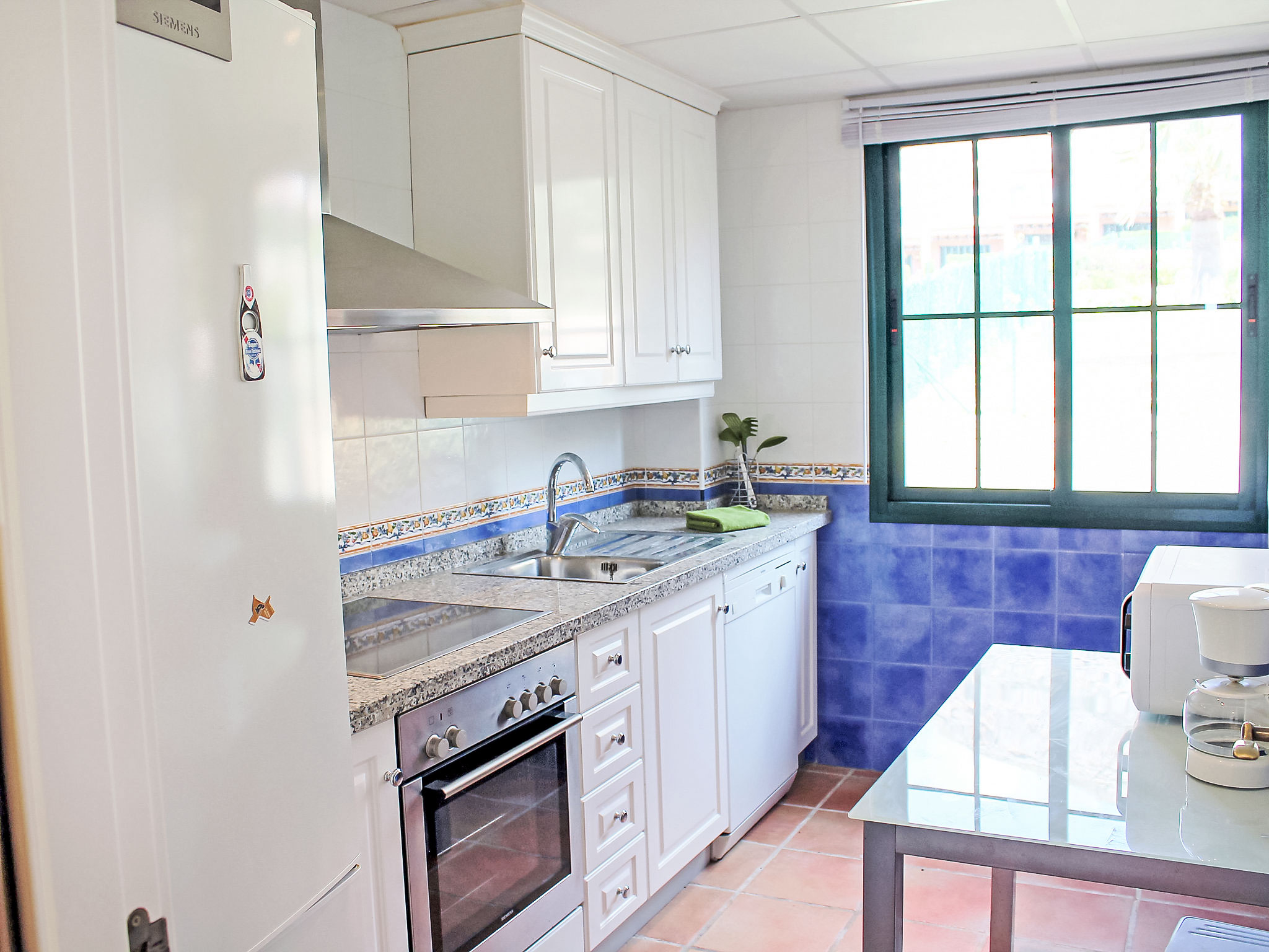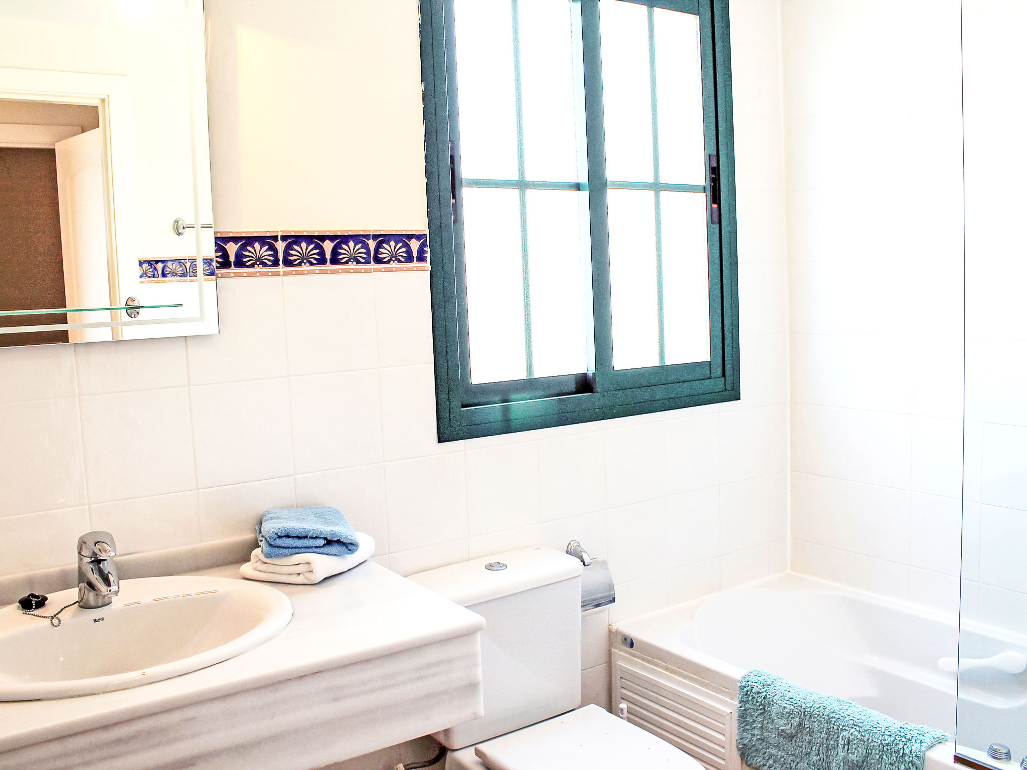 "Mirador II", 3-Zimmer-Reihenhaus 90 m2 auf 2 Stockwerken. Geräumig und hell, zweckmässig und komfortabel eingerichtet: Wohn-/Esszimmer 25 m2 mit 1 Diwanbett, Digital-TV, Flachbildschirm und Klimaanlage. Ausgang zum Gartensitzplatz. Küche (Backofen, Geschirrspüler, 4 Glaskeramikherd Platten, Toaster, Wasserkocher, Mikrowelle, Tiefkühler, elektrische Kaffeemaschine). Sep. WC. Obergeschoss: 1 Zimmer mit 2 Betten (90 cm, Länge 190 cm), Klimaanlage. 1 Zimmer mit 1 franz. Bett (135 cm, Länge 190 cm), Bad/Bidet/WC, Sprudelbad und Klimaanlage. Dusche/WC. Terrasse, Garten 120 m2, Rasen. Terrassenmöbel. Sicht auf den Garten. Zur Verfügung: Waschmaschine, Bügeleisen, Haartrockner. Internet (Wireless LAN, gratis). Parkplatz Nr. 1-6 beim Haus. 1 kleines Haustier/Hund erlaubt. AT436616A
