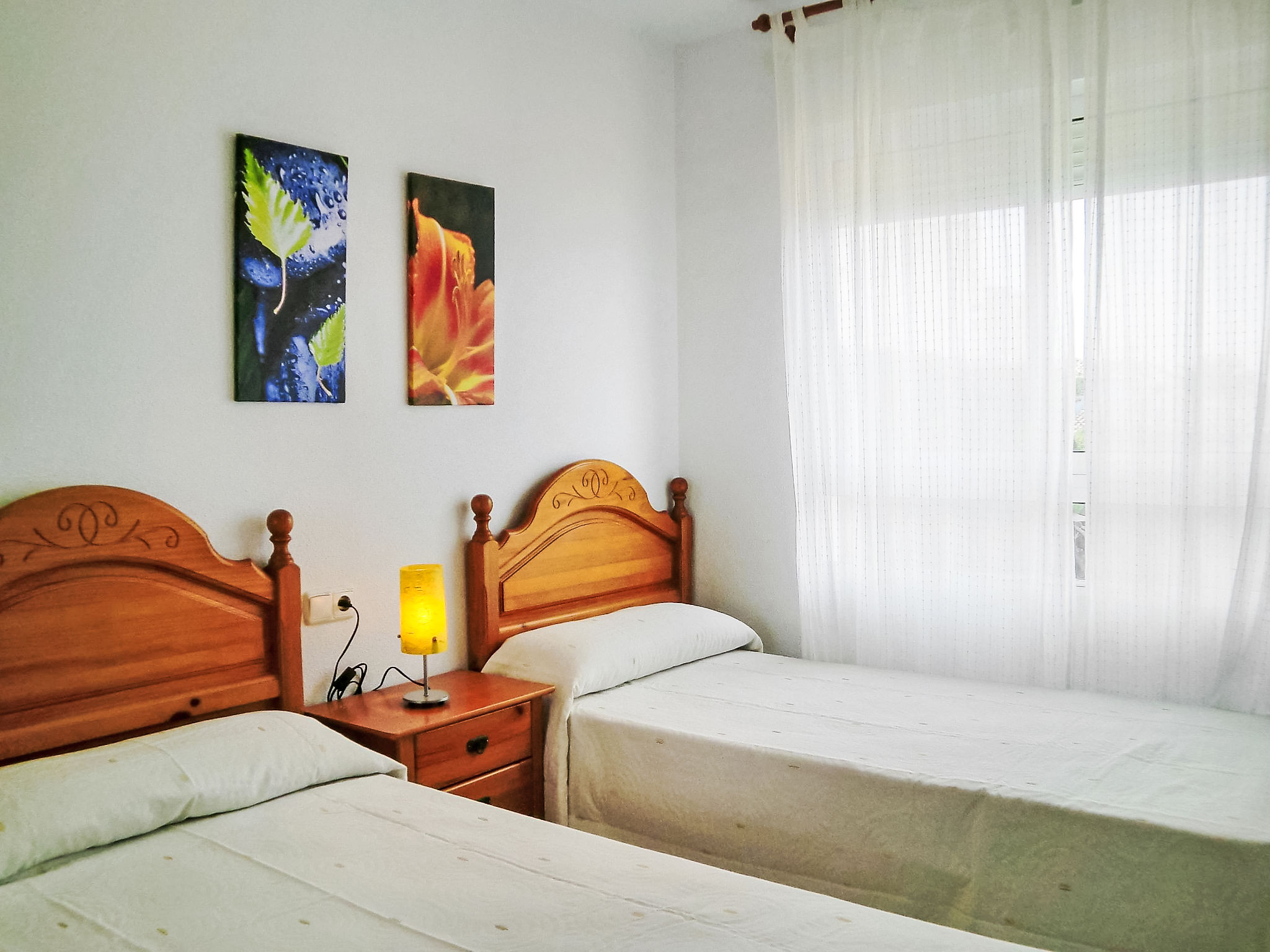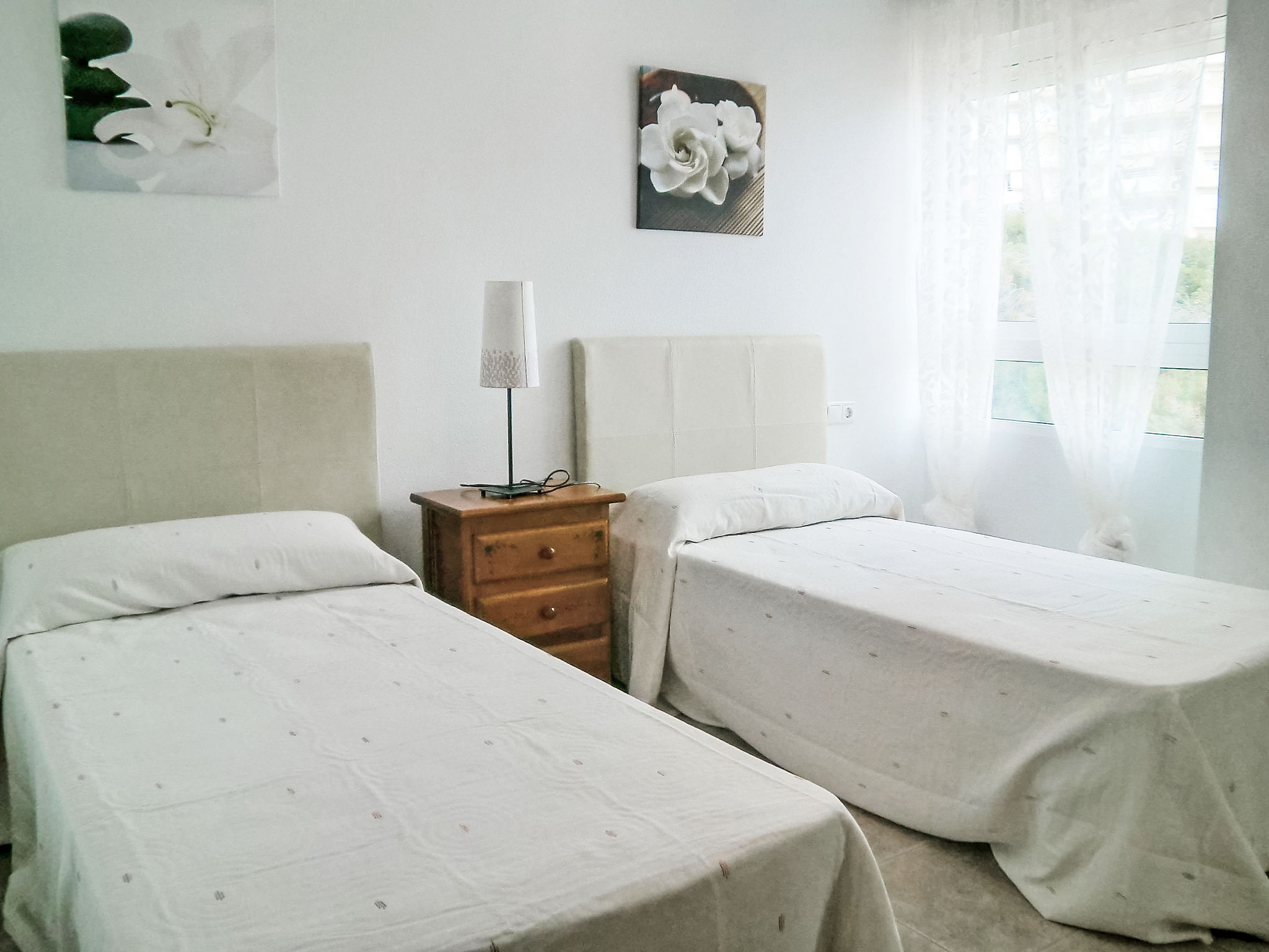 "Urbaeuropa", 4-Zimmer-Wohnung 90 m2 im 1. Stock, Ostlage. Geräumig und hell, komfortabel und geschmackvoll eingerichtet: Wohn-/Esszimmer 22 m2 mit Digital-TV, Klimaanlage und Warmluftheizung. Ausgang zur Terrasse. 1 Zimmer mit 2 Betten (90 cm, Länge 190 cm), Bad/Bidet/WC. 2 Zimmer 7 m2, jedes Zimmer mit 2 Betten (90 cm, Länge 190 cm). Küche 8 m2 (Backofen, Geschirrspüler, 4 Glaskeramikherd Platten, Toaster, Wasserkocher, Mikrowelle, Tiefkühler, elektrische Kaffeemaschine). Bad/Bidet/WC. Kleine Terrasse. Terrassenmöbel. Herrliche Sicht auf das Meer, das Schwimmbad und den Garten. Zur Verfügung: Waschmaschine, Bügeleisen, Haartrockner. Parkplatz Nr. 19 sotano 2. AT437296A