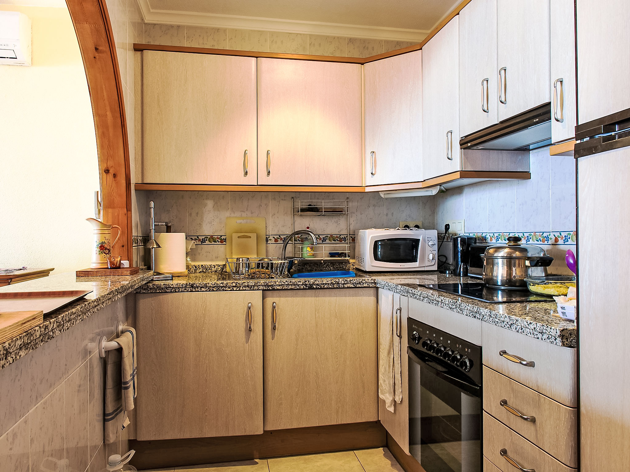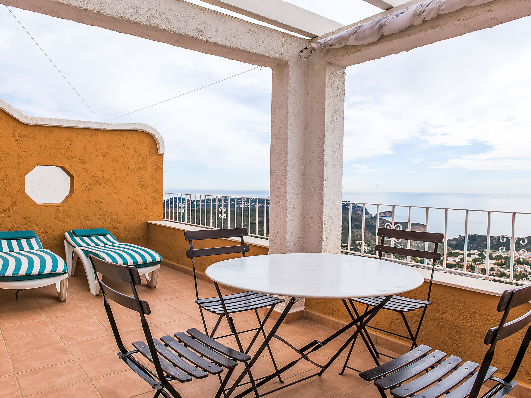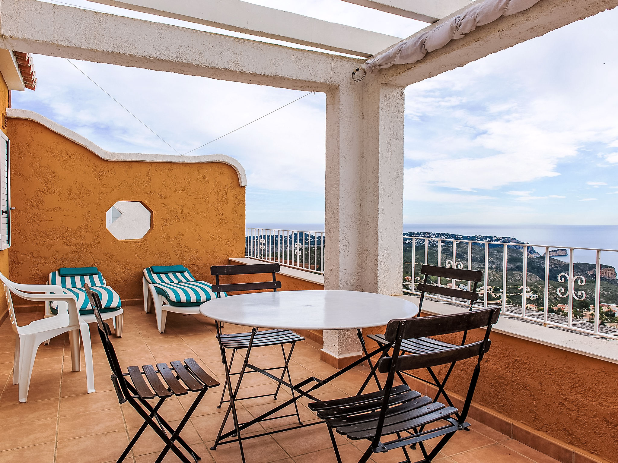 Benitachell: Feriensiedlung "Vista Mar", Baujahr 2008. Im Ortsteil Cumbre del Sol, ruhige, sonnige, erhöhte Lage, 3 km vom Meer. Zur Mitbenutzung: 2 Schwimmbäder (saisonale Verfügbarkeit: 01.Mar.-30.Nov.) mit Innentreppe. Kinderbecken, Aussendusche, öffentliche Parkplätze auf der Strasse. Supermarkt 1 km, Einkaufszentrum 2 km, Restaurant 2 km, Sandstrand "Arenal" 7 km, Badebucht 3 km. Bitte beachten: Fahrzeug empfohlen, kein Fahrstuhl vorhanden.