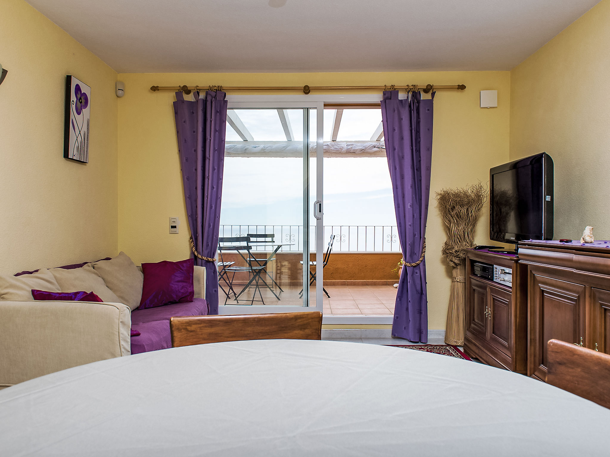 3-Zimmer-Wohnung 70 m2. Hell, komfortabel und schön eingerichtet: Wohn-/Esszimmer mit Sat-TV, Stereoanlage und Klimaanlage. Ausgang zur Terrasse. 1 Zimmer mit 1 franz. Bett (2 x 140 cm), Klimaanlage. 1 Zimmer mit 2 Betten und Klimaanlage. Offene Küche (Backofen, 4 Glaskeramikherd Platten, Mikrowelle, Tiefkühler). Bad/Bidet/WC. Grosse Terrasse 20 m2. Terrassenmöbel, Liegestühle (2). Herrliche Panoramasicht auf das Meer und die Landschaft. Zur Verfügung: Waschmaschine. Bitte beachten: Nichtraucher-Haus. AT446956