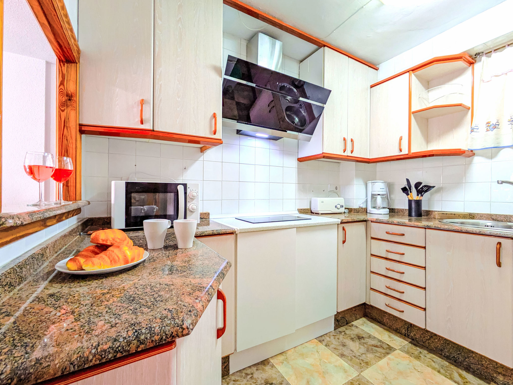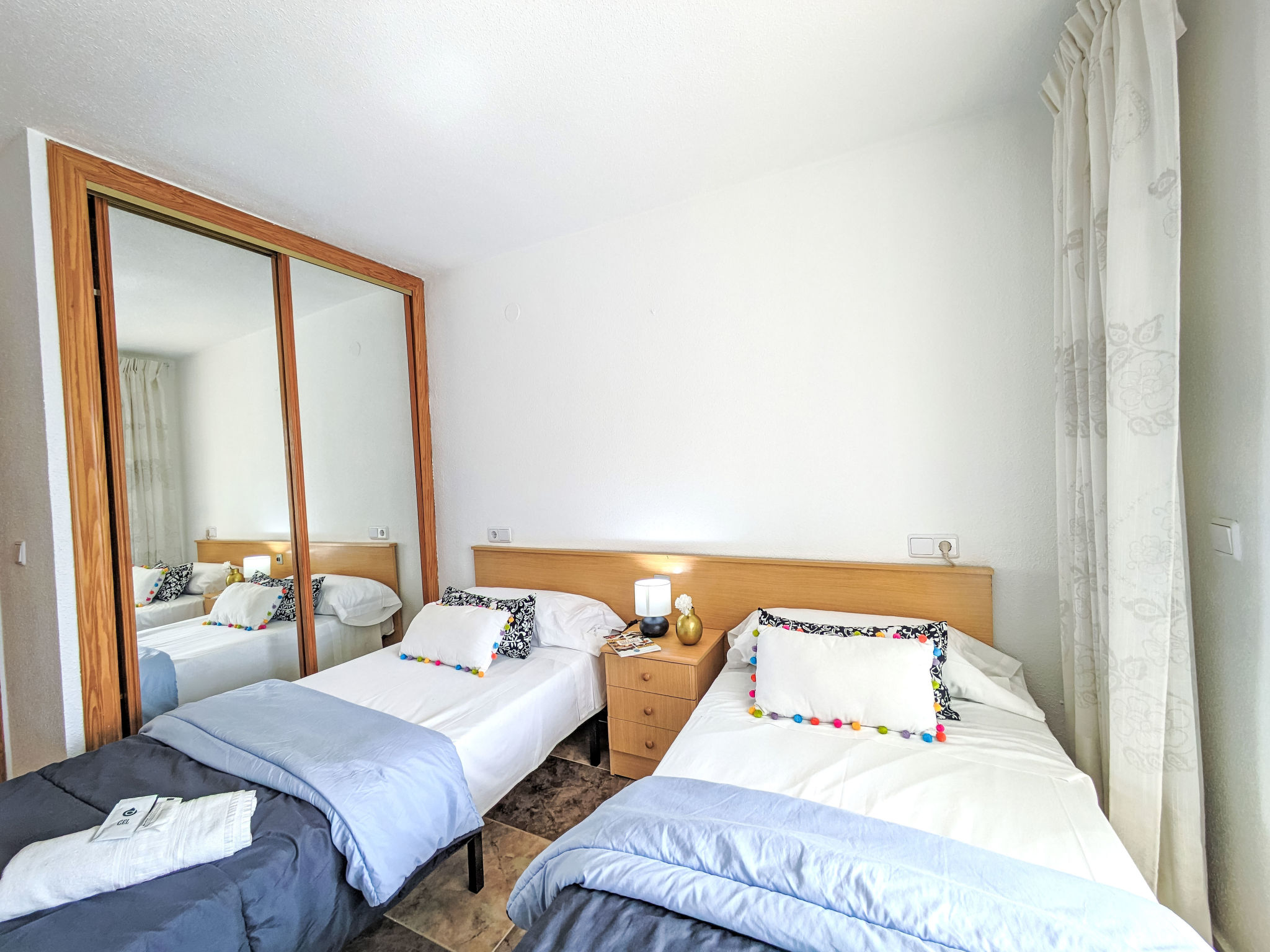 "Halcon Levante", 3-Zimmer-Wohnung 40 m2 im 2. Stock. Geräumig und hell, zweckmässig und komfortabel eingerichtet: Wohn-/Esszimmer mit Digital-TV, Klimaanlage und Warmluftheizung. Ausgang zur Terrasse. 1 Zimmer mit 2 Betten (90 cm, Länge 190 cm). 1 Zimmer mit 1 franz. Bett (135 cm, Länge 190 cm). Küche (4 Kochplatten, Backofen, Mikrowelle, elektrische Kaffeemaschine). Dusche/WC. Kleine Terrasse. Terrassenmöbel. Eingeschränkte Sicht auf die Ortschaft. Zur Verfügung: Waschmaschine, Bügeleisen, Haartrockner. 1 kleines Haustier/Hund erlaubt. AT321937BM