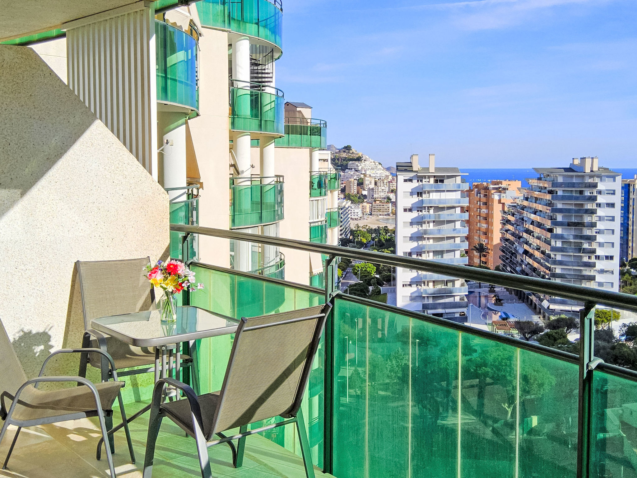 Cala de Villajoyosa: Modernes, schönes Appartementhaus "Vila Park", auf 10 Stockwerken. Am Ortsrand, 4 km vom Zentrum von Benidorm, sonnige Lage am Hang, 750 m vom Meer, 750 m vom Strand. Zur Mitbenutzung: Grundstück (eingezäunt) mit Rasen und Pflanzen, Schwimmbad (saisonale Verfügbarkeit: 01.Apr.-30.Okt.). Kinderbecken, Aussendusche, Grill. Im Hause: Fahrstuhl. Parkplatz Nr. 92 (überdacht). Supermarkt, Restaurant, Bar 600 m, Bushaltestelle "Benidorm" 700 m. Nahe gelegene Sehenswürdigkeiten: Terra Mitia 8 km, Terra Natura 9 km, Aqualandia 13 km, Mundomar 13 m, Alicante 41 m, Aeropuerto Alicante 53 m. Bitte beachten: Babyausstattung auf Anfrage.