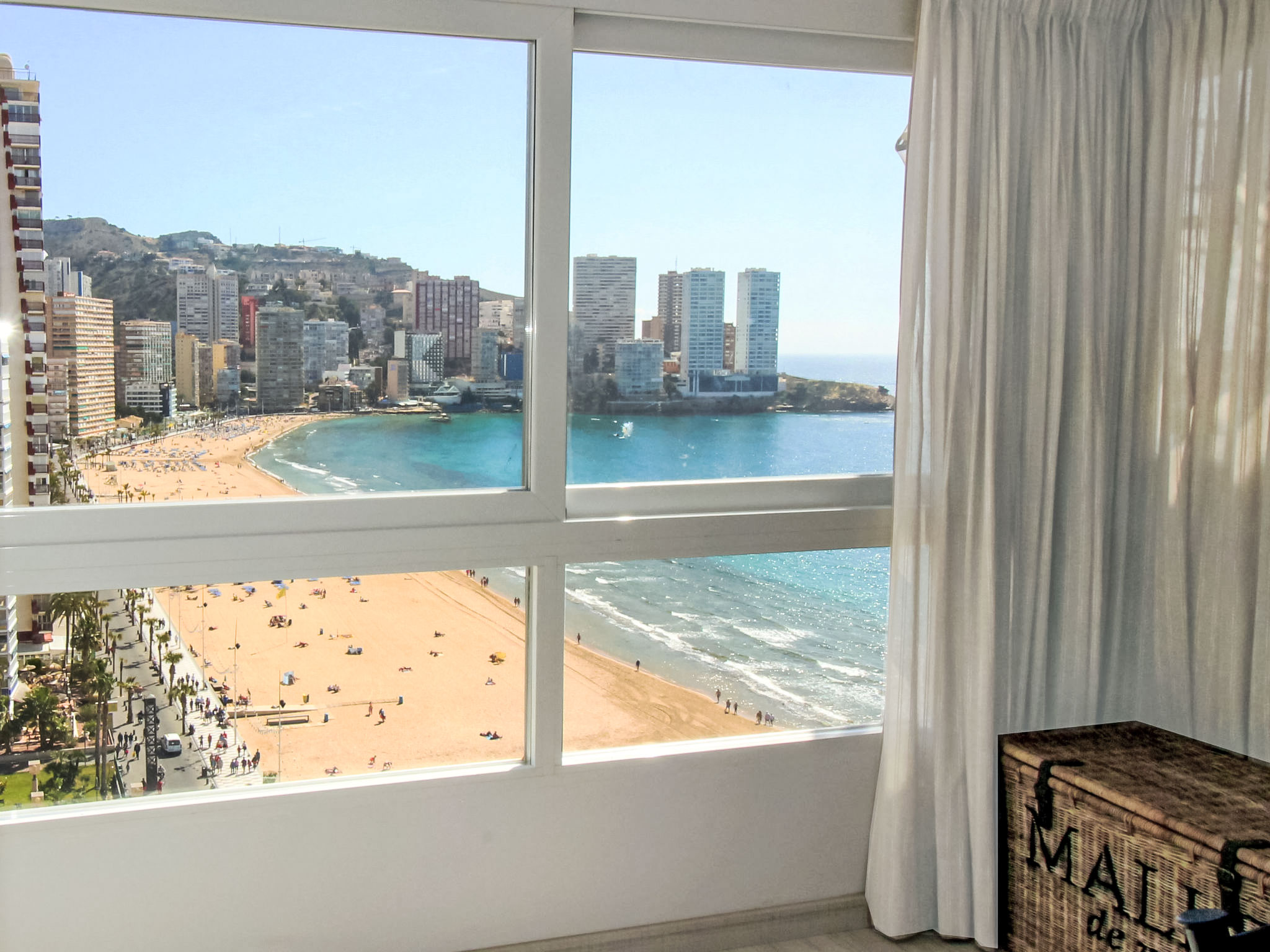 "Tor Serena", 4-Zimmer-Wohnung 80 m2 im 15. Stock, Ostlage. Objekt geeignet für 6 Erwachsene. Geräumig und hell, renoviert im Jahre 2017, komfortabel und geschmackvoll eingerichtet: Wohn-/Esszimmer 22 m2 mit Digital-TV, Klimaanlage und Warmluftheizung. Ausgang zur Veranda. 1 Zimmer 12 m2 mit 2 Betten (90 cm, Länge 190 cm), Bad/Bidet/WC, Klimaanlage und Warmluftheizung. 1 Zimmer 6 m2 mit 2 Betten (90 cm, Länge 190 cm), Klimaanlage und Warmluftheizung. 1 Zimmer 10 m2 mit 2 Betten (90 cm, Länge 190 cm), Klimaanlage und Warmluftheizung. Ausgang zur Veranda. Küche 6 m2 (Backofen, Geschirrspüler, 3 Induktionskochplatten, Toaster, Wasserkocher, Mikrowelle, Tiefkühler, elektrische Kaffeemaschine). Dusche/WC, Dusche/Bidet/WC. Sehr schöne Sicht auf das Meer und die Ortschaft. Zur Verfügung: Waschmaschine, Bügeleisen, Haartrockner. Internet (Wireless LAN, gratis). AT322126BM