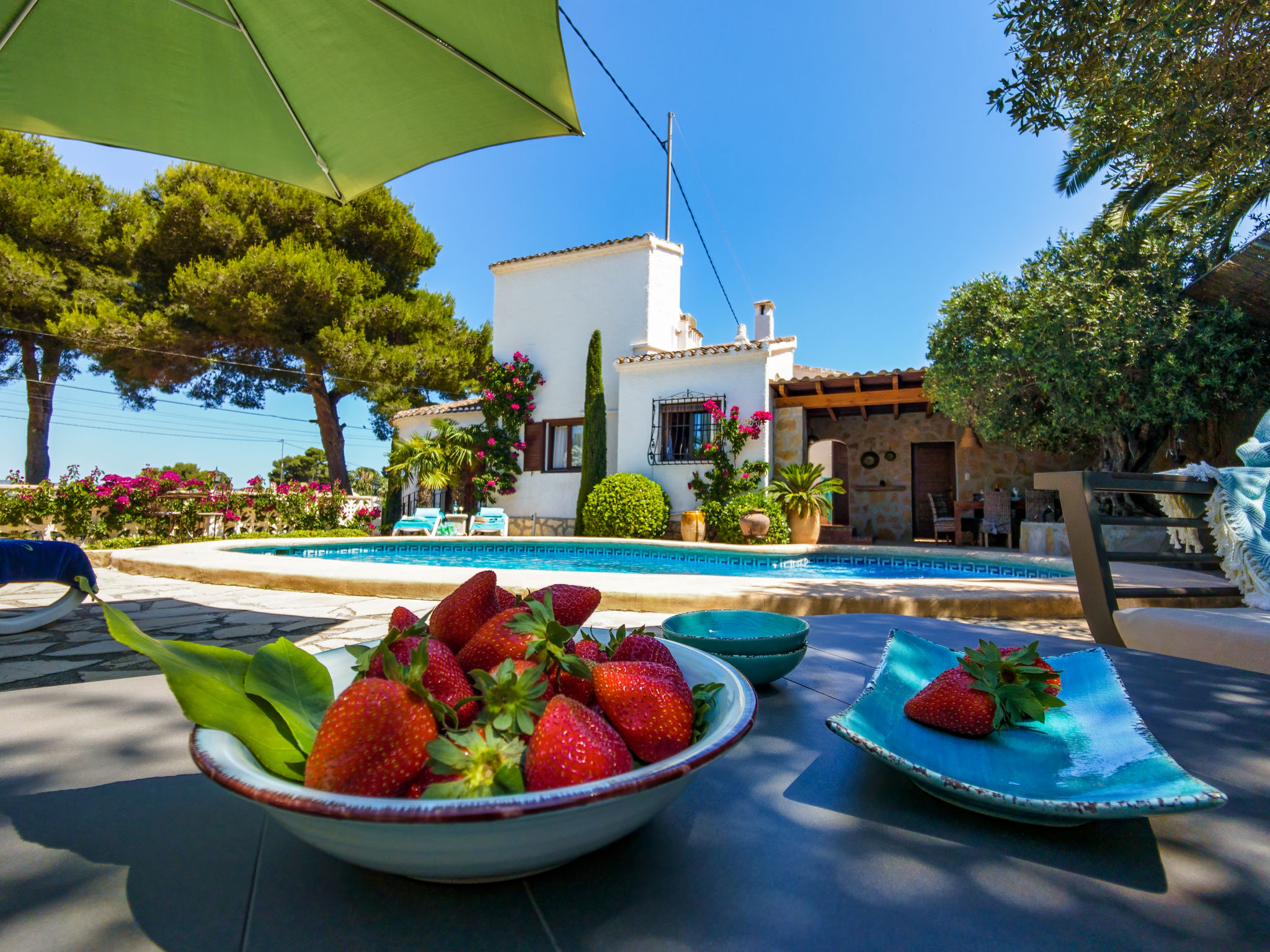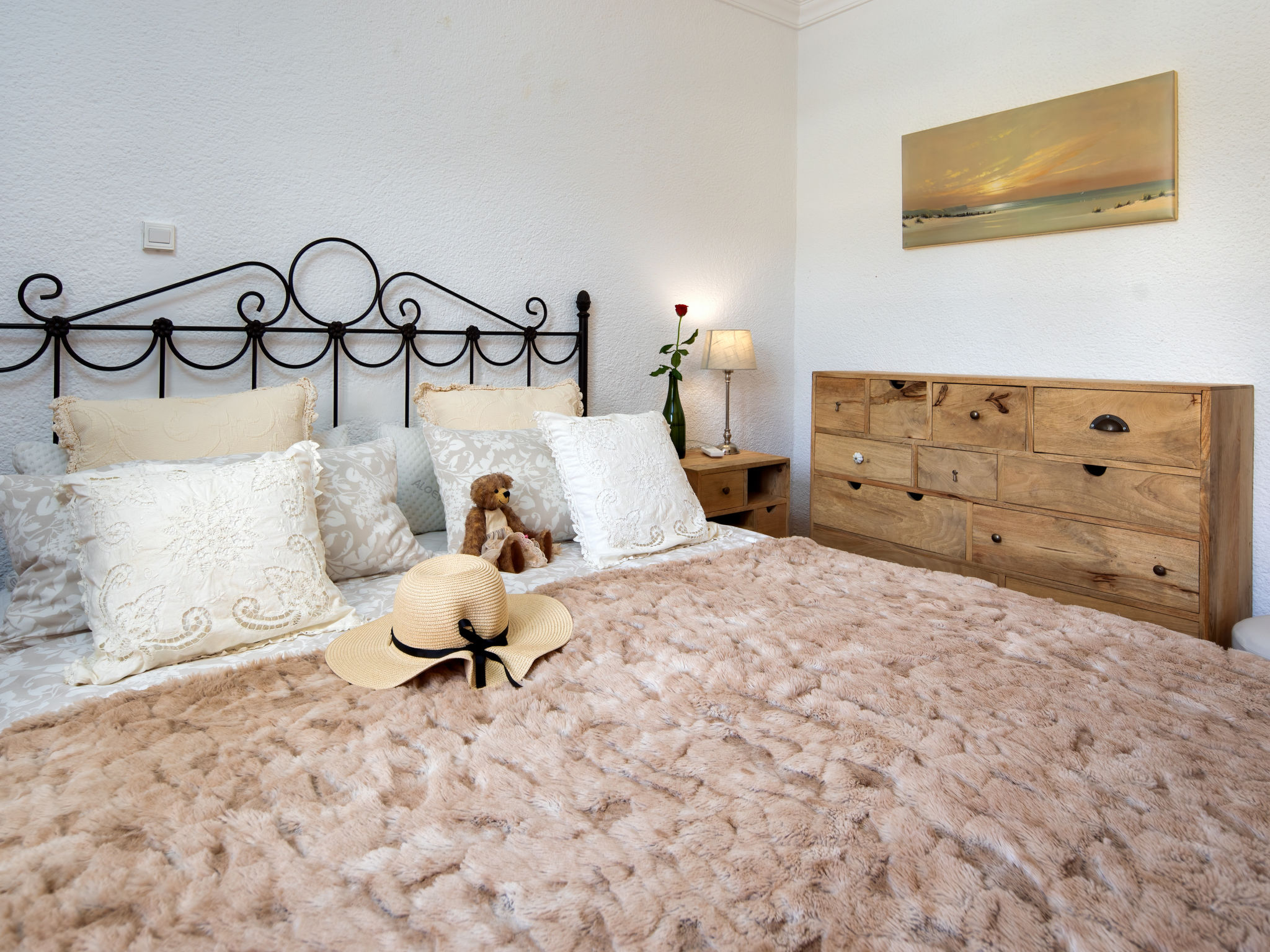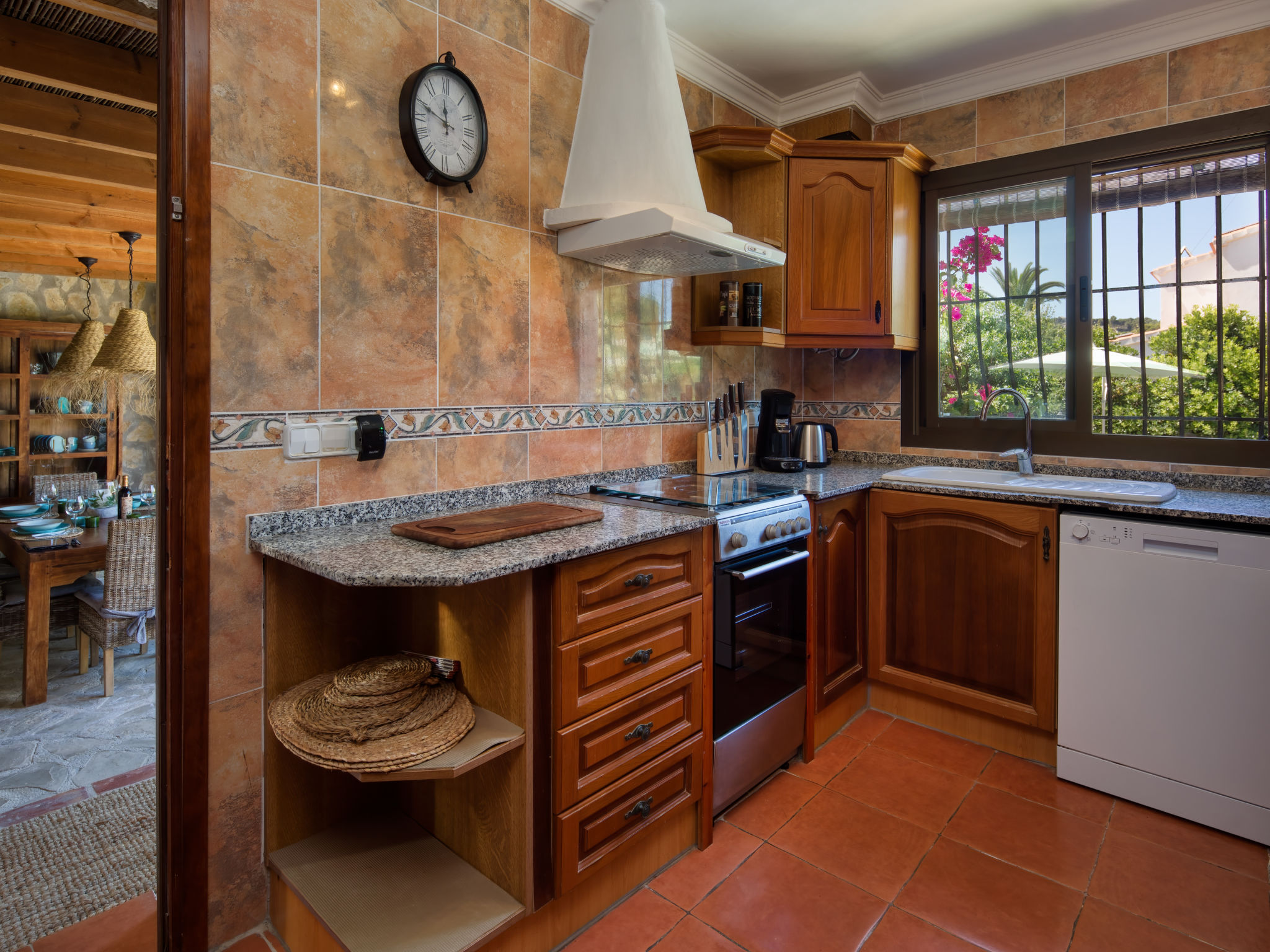 Haus "Mabrouk", auf 2 Stockwerken. Im Ortsteil Toscal, 3 km vom Meer. Zur Alleinbenutzung: Garten 750 m2 (eingezäunt) mit Pflanzen, Schwimmbad nierenförmig (4 x 8 m, 01.01.-31.12.) mit Innentreppe. Aussendusche. Treppenweg (2 Stufen) bis zum Haus. Supermarkt 2 km, Restaurant 2 km, Sandstrand "Arenal" 3 km.