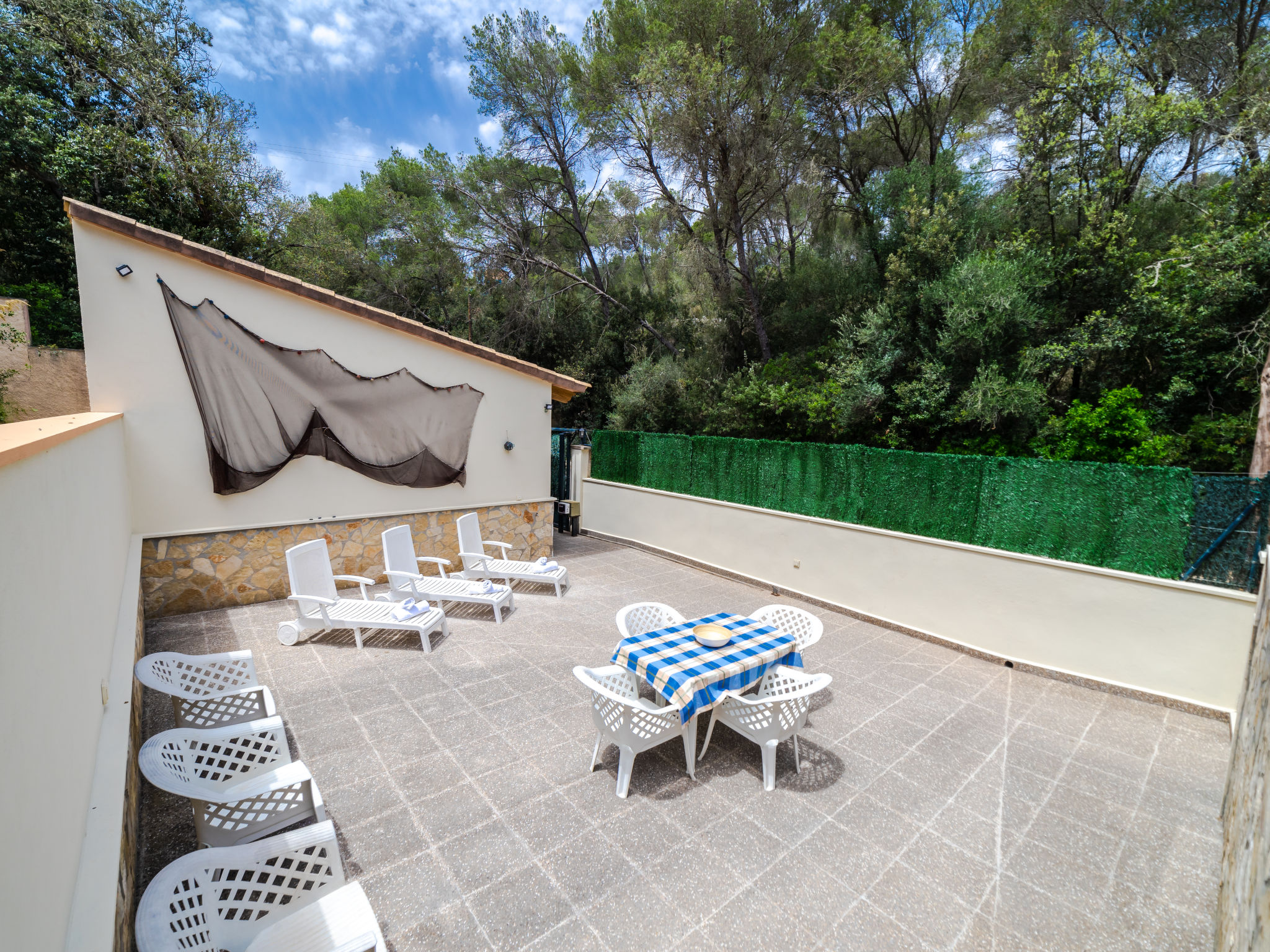"Cala Santanyí Beach House JM", 6-Zimmer-Villa 150 m2 auf 2 Stockwerken. Objekt geeignet für 6 Erwachsene. Sehr zweckmässig und komfortabel eingerichtet: offenes grosses Esszimmer mit Panoramafenster mit Esstisch. Ausgang zum Gartensitzplatz. Salon. Grosse Küche (Backofen, Geschirrspüler, 3 Glaskeramikherd Platten, Mikrowelle, Tiefkühler, elektrische Kaffeemaschine). Dusche/WC. Obergeschoss: Wohnzimmer mit Panoramafenster mit Sat-TV, Digital-TV, Flachbildschirm, DVD, Klimaanlage und Warmluftheizung. Ausgang zur Terrasse. 1 Doppelzimmer mit Panoramafenster mit 1 franz. Bett (150 cm, Länge 190 cm), Klimaanlage und Warmluftheizung. 1 Zimmer mit Panoramafenster mit 1 franz. Bett (135 cm, Länge 190 cm). 1 grosses Doppelzimmer mit Panoramafenster mit 2 Betten (90 cm, Länge 190 cm), Klimaanlage und Warmluftheizung. Dusche/WC. Grosser Balkon, grosser Gartensitzplatz, Laube. Terrassenmöbel, Balkonmöbel, Gartengrill, Liegestühle, Loggia, Sitzplatz, Abstellkammer. Sicht auf das Tal und die Ortschaft. Zur Verfügung: Waschmaschine, Bügeleisen, Kinderhochstuhl, Babybett, Haartrockner. Internet (Wireless LAN, gratis). Parkplatz (überdacht, eingezäunt). Geeignet für Familien. 1 Haustier/Hund erlaubt. ETV13938