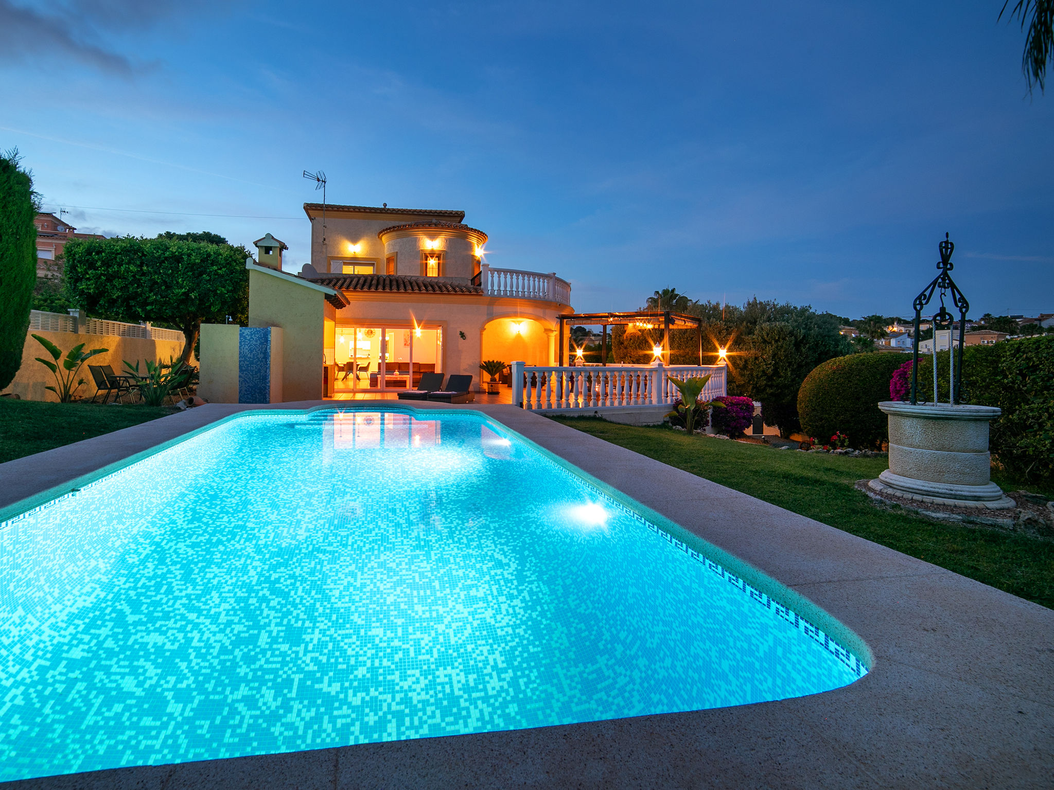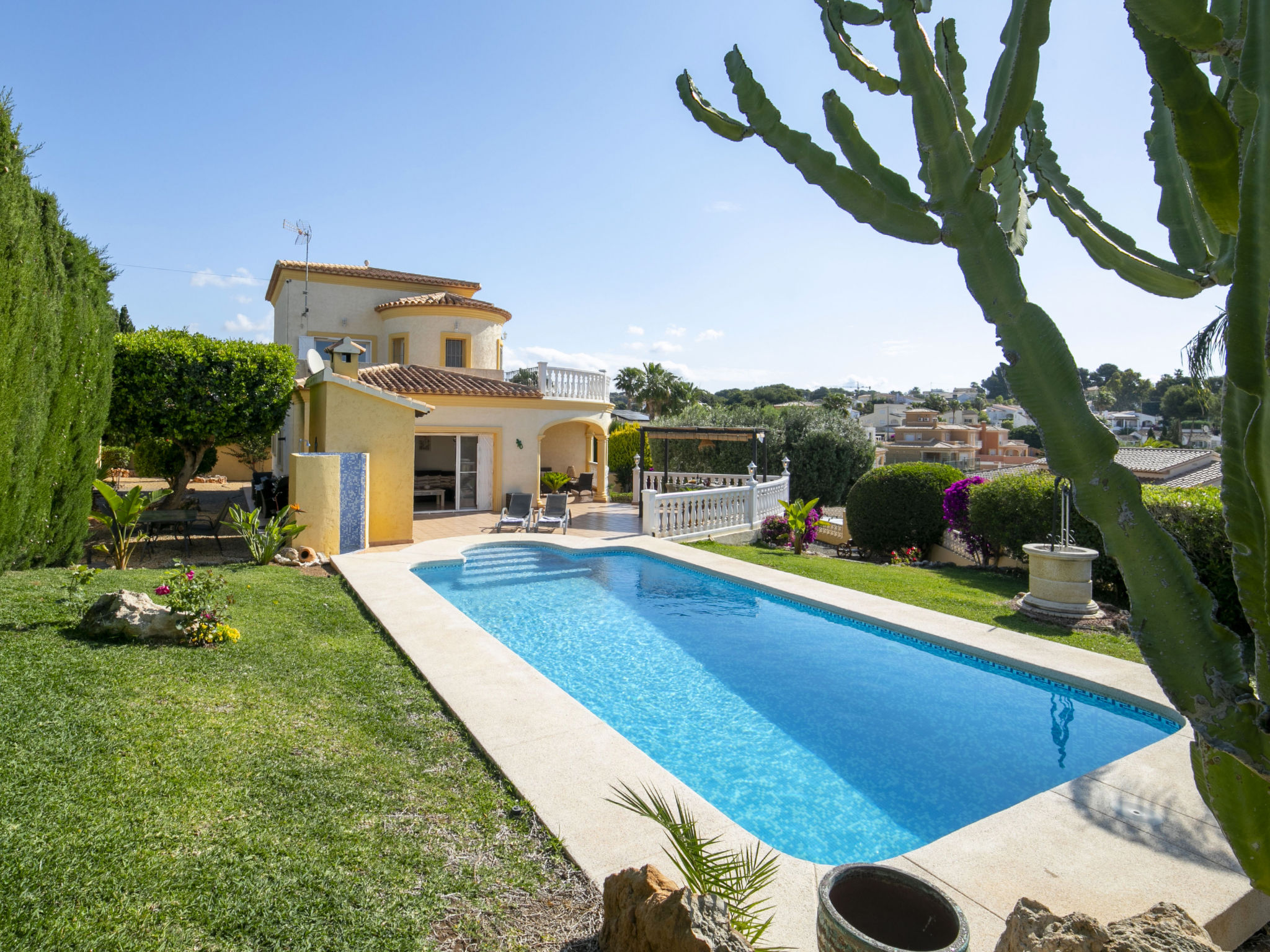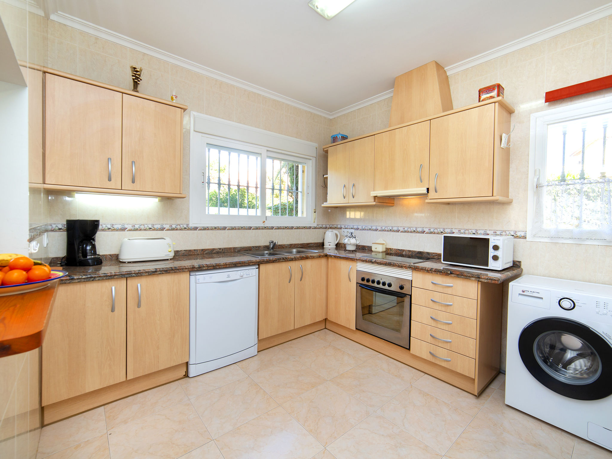"Hawaii", 4-Zimmer-Villa 130 m2 auf 2 Stockwerken. Geräumig und hell, schön und gemütlich eingerichtet: Wohn-/Esszimmer mit Esstisch, Sat-TV, Digital-TV, Flachbildschirm, Radio, CD, Klimaanlage, Warmluftheizung und Boiler (100 Liter). Ausgang zur Terrasse, zum Schwimmbad. 1 Zimmer mit 1 franz. Bett (150 cm, Länge 200 cm), Klimaanlage und Warmluftheizung. 1 Zimmer mit 1 franz. Bett (150 cm, Länge 200 cm), Klimaanlage und Warmluftheizung. Grosse Küche (Backofen, Geschirrspüler, 4 Glaskeramikherd Platten, Mikrowelle, Tiefkühler, elektrische Kaffeemaschine). Bad/WC, Bidet. E-Heizung, Boiler (100 Liter). Heizung nur verfügbar von 01.11. bis 30.04. Obergeschoss: 1 Zimmer mit 1 franz. Bett (150 cm, Länge 200 cm), Bad/WC, Bidet, Klimaanlage und Warmluftheizung. Ausgang zur Terrasse. Büro. Grosse Terrasse 50 m2, Südlage und Ostlage, Garten, Rasen. Terrassenmöbel, Gartengrill, Liegestühle (6). Fernsicht auf das Meer und die Landschaft. Zur Verfügung: Waschmaschine, Bügeleisen, Fliegengitter, Kinderhochstuhl, Babybett bis 2 Jahre, Haartrockner. Internet (Wireless LAN, gratis). Parkplatz (eingezäunt). Bitte beachten: geeignet für Familien. Nichtraucher-Haus. AT-481467-A