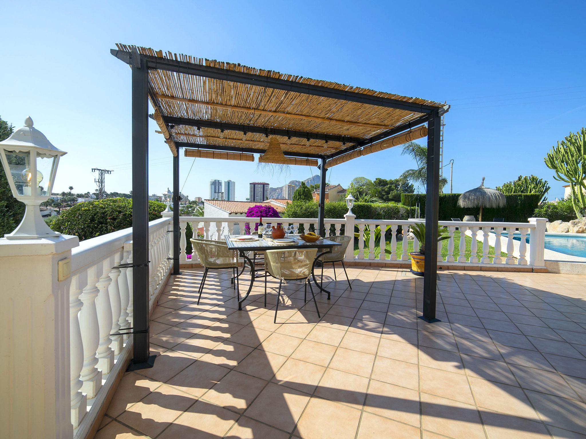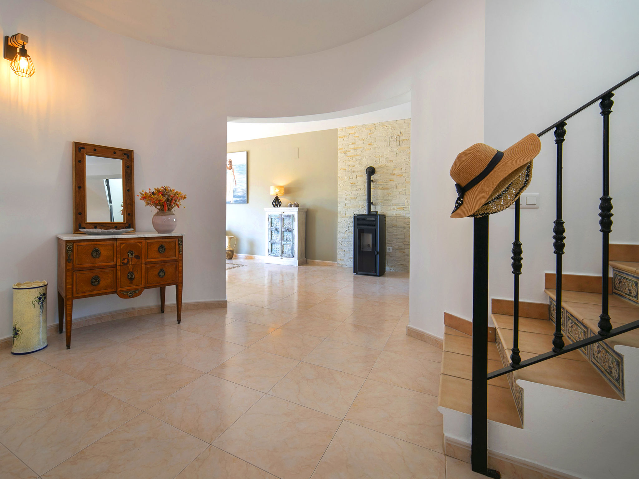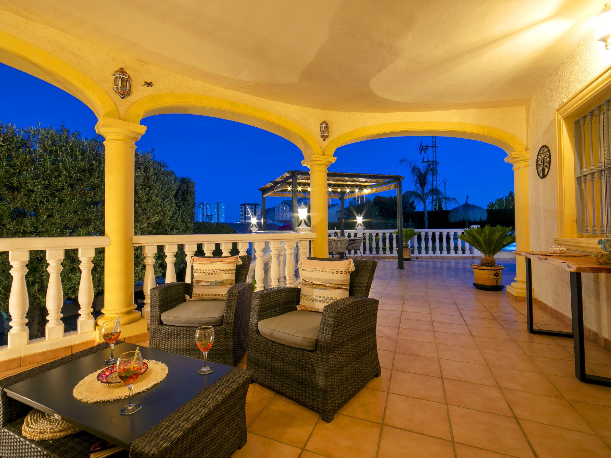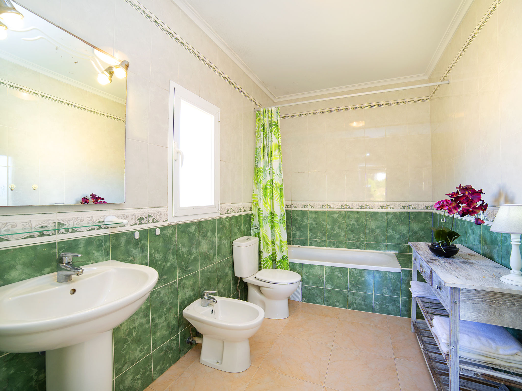 "Hawaii", 4-Zimmer-Villa 130 m2 auf 2 Stockwerken. Geräumig und hell, schön und gemütlich eingerichtet: Wohn-/Esszimmer mit Esstisch, Sat-TV, Digital-TV, Flachbildschirm, Radio, CD, Klimaanlage, Warmluftheizung und Boiler (100 Liter). Ausgang zur Terrasse, zum Schwimmbad. 1 Zimmer mit 1 franz. Bett (150 cm, Länge 200 cm), Klimaanlage und Warmluftheizung. 1 Zimmer mit 1 franz. Bett (150 cm, Länge 200 cm), Klimaanlage und Warmluftheizung. Grosse Küche (Backofen, Geschirrspüler, 4 Glaskeramikherd Platten, Mikrowelle, Tiefkühler, elektrische Kaffeemaschine). Bad/WC, Bidet. E-Heizung, Boiler (100 Liter). Heizung nur verfügbar von 01.11. bis 30.04. Obergeschoss: 1 Zimmer mit 1 franz. Bett (150 cm, Länge 200 cm), Bad/WC, Bidet, Klimaanlage und Warmluftheizung. Ausgang zur Terrasse. Büro. Grosse Terrasse 50 m2, Südlage und Ostlage, Garten, Rasen. Terrassenmöbel, Gartengrill, Liegestühle (6). Fernsicht auf das Meer und die Landschaft. Zur Verfügung: Waschmaschine, Bügeleisen, Fliegengitter, Kinderhochstuhl, Babybett bis 2 Jahre, Haartrockner. Internet (Wireless LAN, gratis). Parkplatz (eingezäunt). Bitte beachten: geeignet für Familien. Nichtraucher-Haus. AT-481467-A