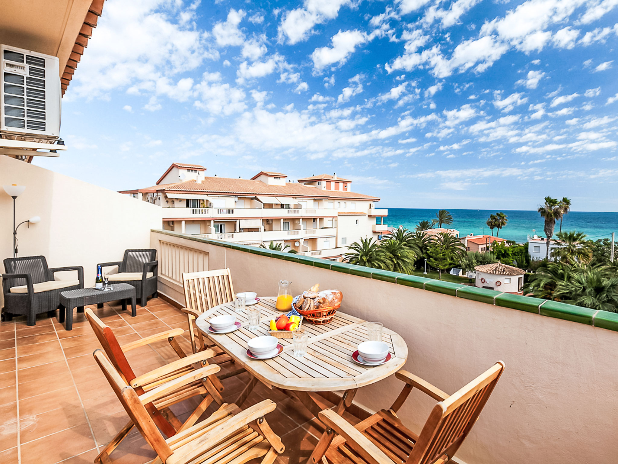 Schönes, gemütliches Appartementhaus "La Marina", auf 3 Stockwerken. 6 km vom Zentrum von Dénia, 50 m vom Meer. Zur Mitbenutzung: grosser, schöner, gepflegter Garten (eingezäunt) mit Rasen und Pflanzen, Schwimmbad (16 x 11 m, saisonale Verfügbarkeit: 01.Jan.-31.Dez.). Kinderbecken. Im Hause: Fahrstuhl. Einkaufsgeschäft 300 m, Supermarkt 800 m, Restaurant, Café 300 m, Bushaltestelle, Sandstrand 50 m.