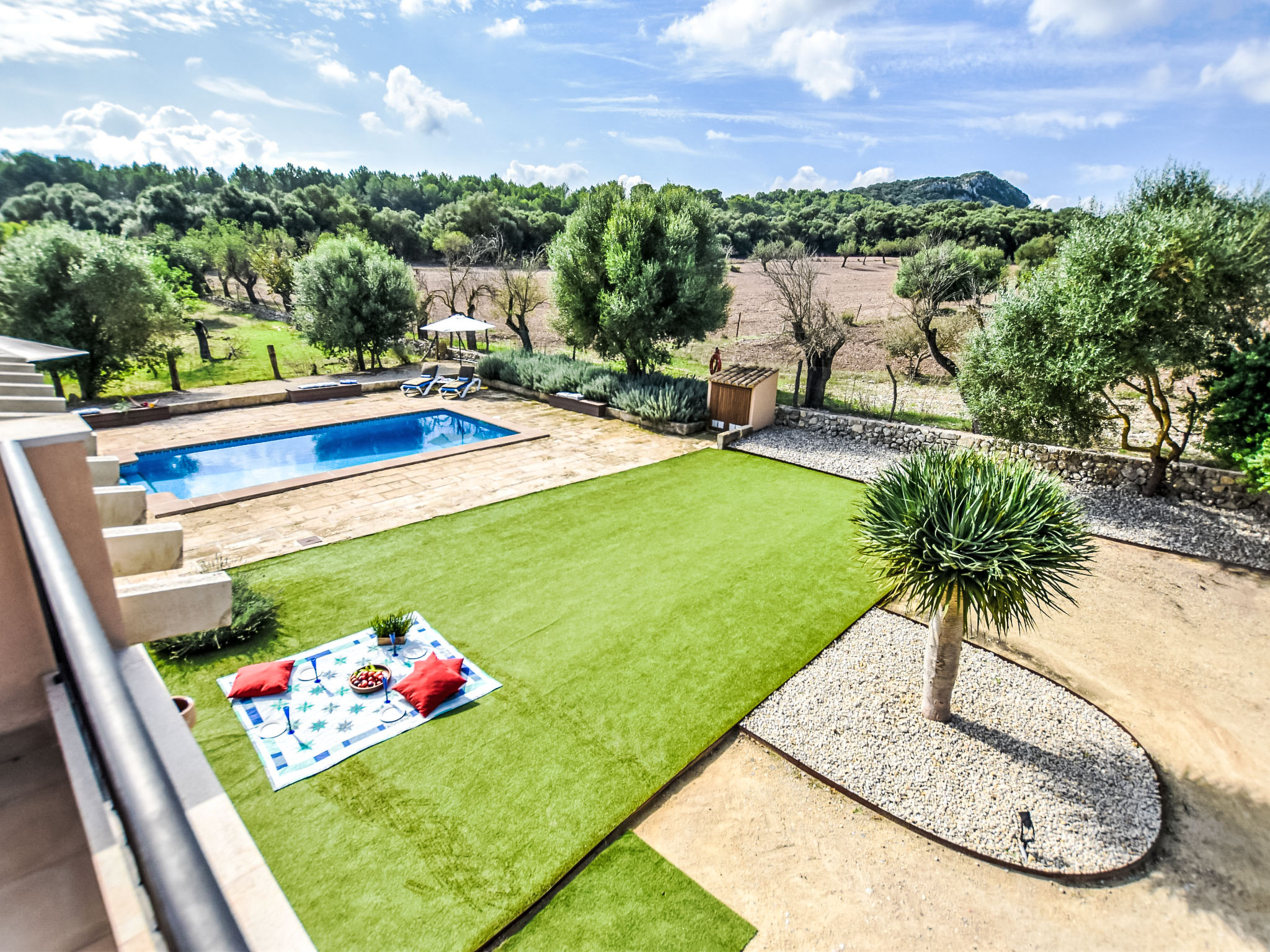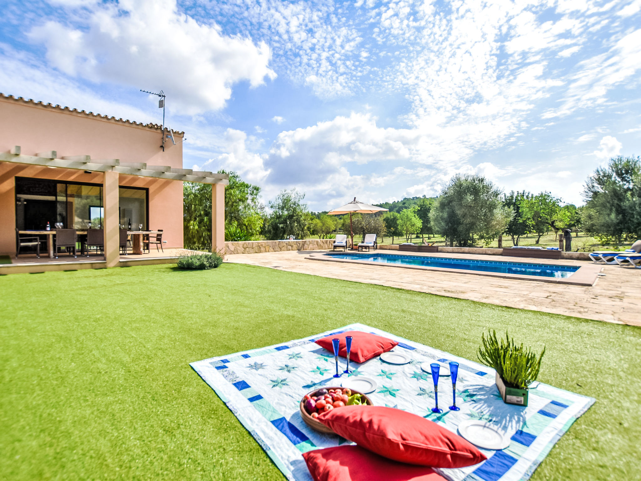 4 km von Sineu: Sehr schöner, komfortabler Finca "Son Tey", auf 2 Stockwerken, Baujahr 2017, umgeben von Feldern. Ausserhalb des Ortes, 4.5 km vom Zentrum von Sineu, ruhige, sonnige Lage, 1 km vom Waldrand, 27 km vom Meer, 27 km vom Strand. Zur Alleinbenutzung: Garten mit Rasen und Pflanzen, Schwimmbad eckig (8 x 4 m, 120 - 170 cm tief, 01.01.-31.12.). Sitzplatz, Laube, Pergola, Gartenmöbel, Grill. Im Hause: Internetzugang, Wireless LAN, Zentralheizung, Klimaanlage, Waschmaschine. Parkplatz beim Haus auf dem Grundstück. Einkaufsgeschäft 4.5 km, Lebensmittelgeschäft 4.5 km, Supermarkt 4.5 km, Restaurant 4.3 km, Bar 4.3 km, Bäckerei 4.5 km, Café 4.2 km, Fahrradverleih 4.5 km, Zentrum zu Fuss in 50 Minuten erreichbar, Bushaltestelle 4.5 km, Bahnstation 4.5 km, Sandstrand 27 km, Felsstrand 27 km. Sporthafen 27 km, Golfplatz (18 Loch) 35 m, Tennis 5.5 km, Wanderwege ab Haus 1 km, Radweg 900 m. Nahe gelegene Sehenswürdigkeiten: Local Market Sineu, Petra, Sineu, Sant Joan, Sencelles. Ruta Arqueológica de Costitx, Observatorio Astronómico de Mallorca. Ciudad de Inca. Wandergebiete: Ermita de Bonany, Petra. Serra de Tramuntana. Bitte beachten: Fahrzeug empfohlen. Geeignet für Familien, geeignet für Senioren. Objekt geeignet für 6 Erwachsene Jugendgruppen nur auf Anfrage. Be- und Entladen am Ferienhaus möglich. Flugplatz 40 km vom Haus.