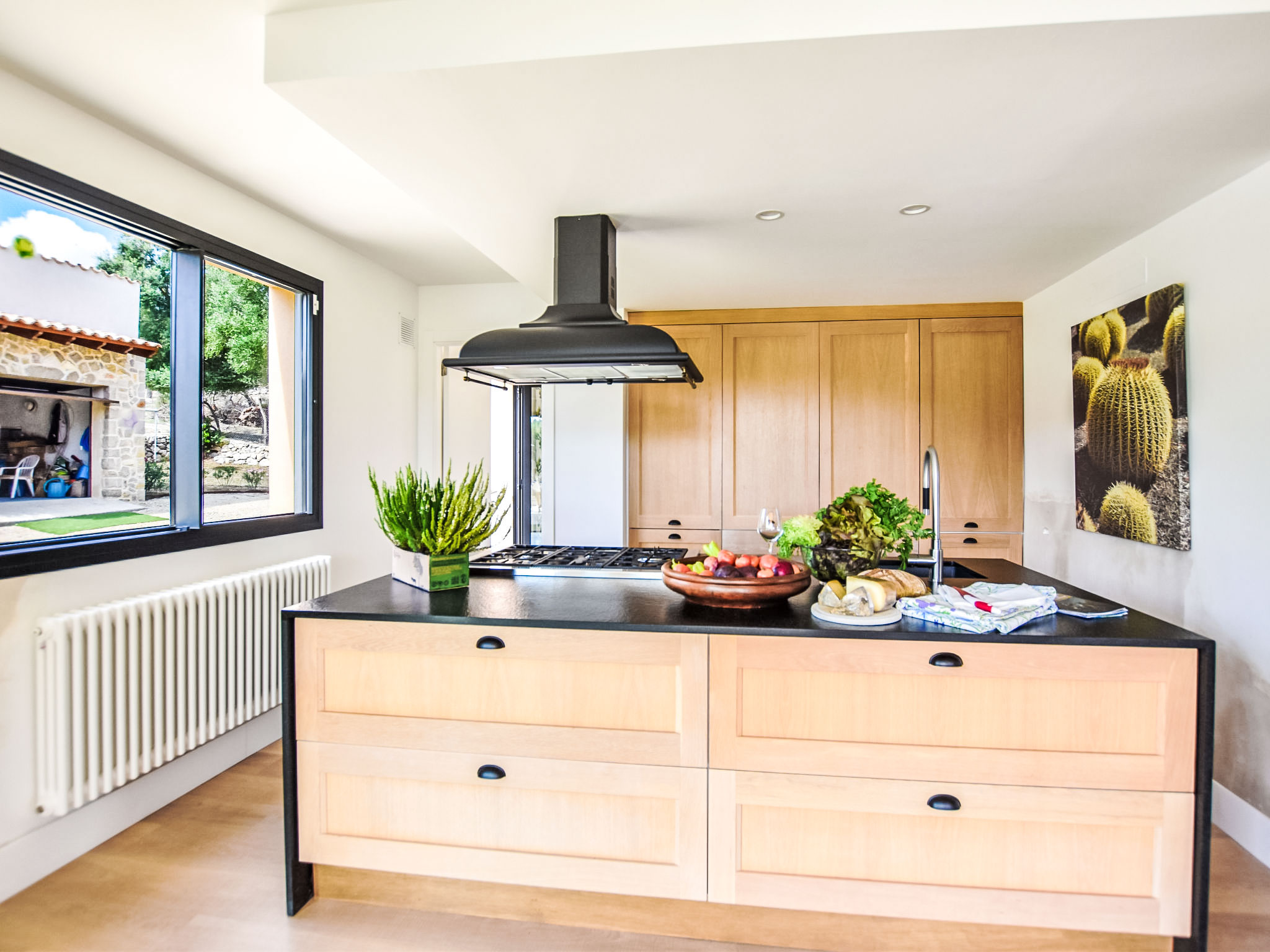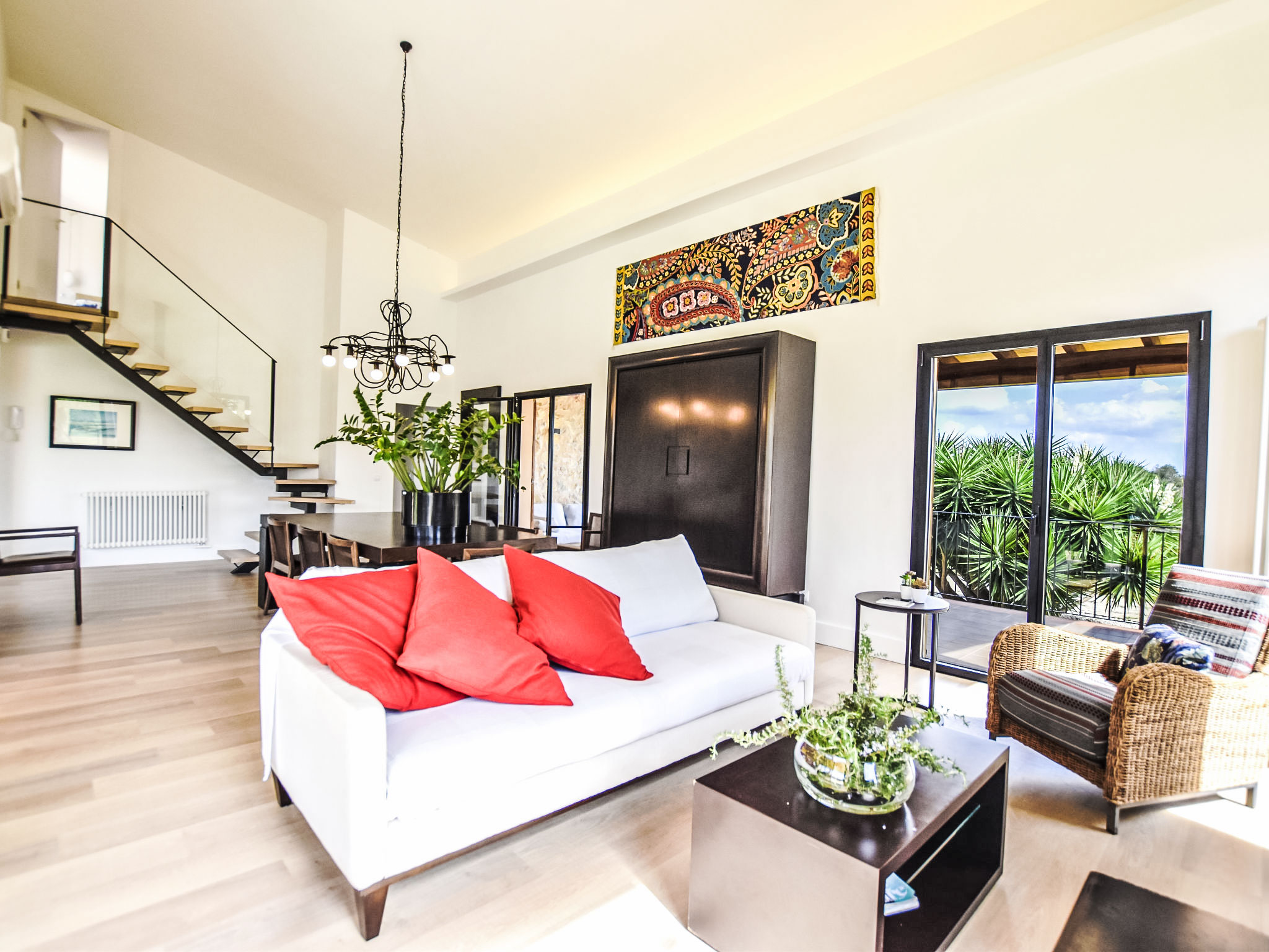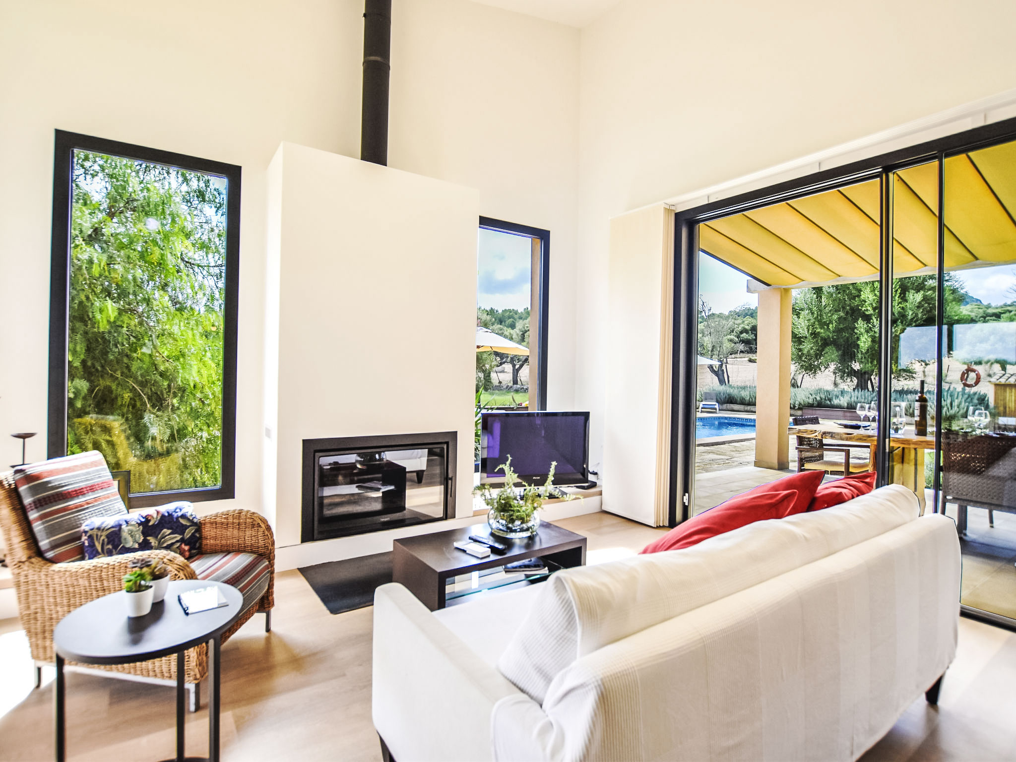 "Son Tey", 4-Zimmer-Villa 150 m2 auf 2 Stockwerken. Objekt geeignet für 6 Erwachsene. Geräumig, vollständig renoviert, sehr komfortabel und modern eingerichtet: offenes grosses Wohn-/Esszimmer mit Schiebetür, Panoramafenster mit Esstisch, Sat-TV, Digital-TV, Flachbildschirm, Klimaanlage und Warmluftheizung. Ausgang zum Gartensitzplatz, zum Schwimmbad. 1 grosses Doppelzimmer mit Panoramafenster mit 1 franz. Bett (150 cm). 1 Doppelzimmer mit Panoramafenster mit 1 Ausziehbett (2 Pers. 2 x 90 cm), Bad/Dusche/WC. Ausgang zum Gartensitzplatz, zum Schwimmbad. Offene Küche (6 Kochplatten, Backofen, Geschirrspüler, Mikrowelle, Tiefkühler, elektrische Kaffeemaschine, Kochinsel). Ausgang zum Gartensitzplatz, zum Schwimmbad. Bad/Dusche/WC. Obergeschoss: 1 abgeschrägtes grosses Doppelzimmer mit Schiebetür, Panoramafenster mit 1 franz. Bett (150 cm), Klimaanlage und Warmluftheizung. Ausgang zum Balkon. Balkon, 2 grosse Terrassen, grosser Garten, Rasen, Laube. Terrassenmöbel, Balkonmöbel, Gartengrill, Liegestühle, Loggia. Sehr schöne Sicht auf die Berge und die Landschaft. Zur Verfügung: Waschmaschine, Bügeleisen, Kinderhochstuhl, Babybett, Haartrockner. Internet (Wireless LAN, gratis). Parkplatz (eingezäunt). Geeignet für Familien. ETV8461