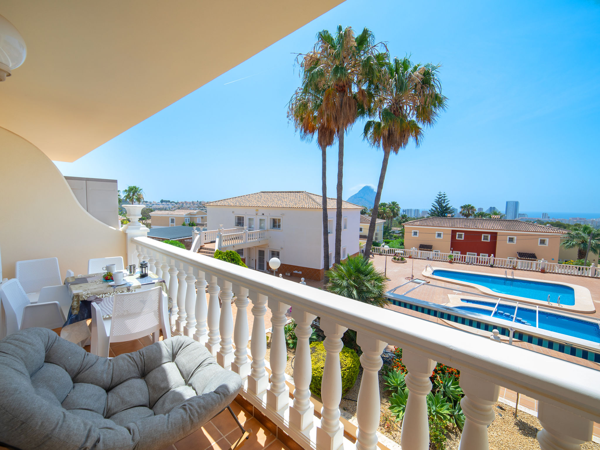 Garduix: Einfaches, komfortables Appartementhaus "Garduix", einseitig angebaut, umgeben von Feldern. 10 Häuser im Ferienresort. Ausserhalb des Ortes, 200 m vom Zentrum von calpe, im Bezirk Garduix, ruhige, sonnige Lage im Villenviertel, 2 km vom Meer, 2 km vom Strand. Zur Mitbenutzung: Grundstück (eingezäunt), Hof, Schwimmbad (saisonale Verfügbarkeit: 01.Jan.-31.Dez.). Kinderbecken, Aussendusche, Laube, Parkplatz (beschränkte Anzahl). Einkaufsgeschäft 1 km, Lebensmittelgeschäft 1 km, Supermarkt 1 km, Einkaufszentrum 1 km, Bar 1 km, Bäckerei 1 km, Zentrum zu Fuss in 26 Minuten erreichbar, Sandstrand "Playa Arenal" 2 km. Sporthafen 3.4 km, Jacht-Hafen 3.4 km, Surfschule 3.4 km, Segelschule 3.4 km, Tennis 1.1 km. Nahe gelegene Sehenswürdigkeiten: Casa del Cocó, Sierra Bernia, Guadalest. Wandergebiete: Peñon de Ifach. Bitte beachten: geeignet für Familien, geeignet für Senioren. Die Nachbarschaft ist sehr lärmempfindlich. Ruhe und gutes Benehmen wird erwartet.