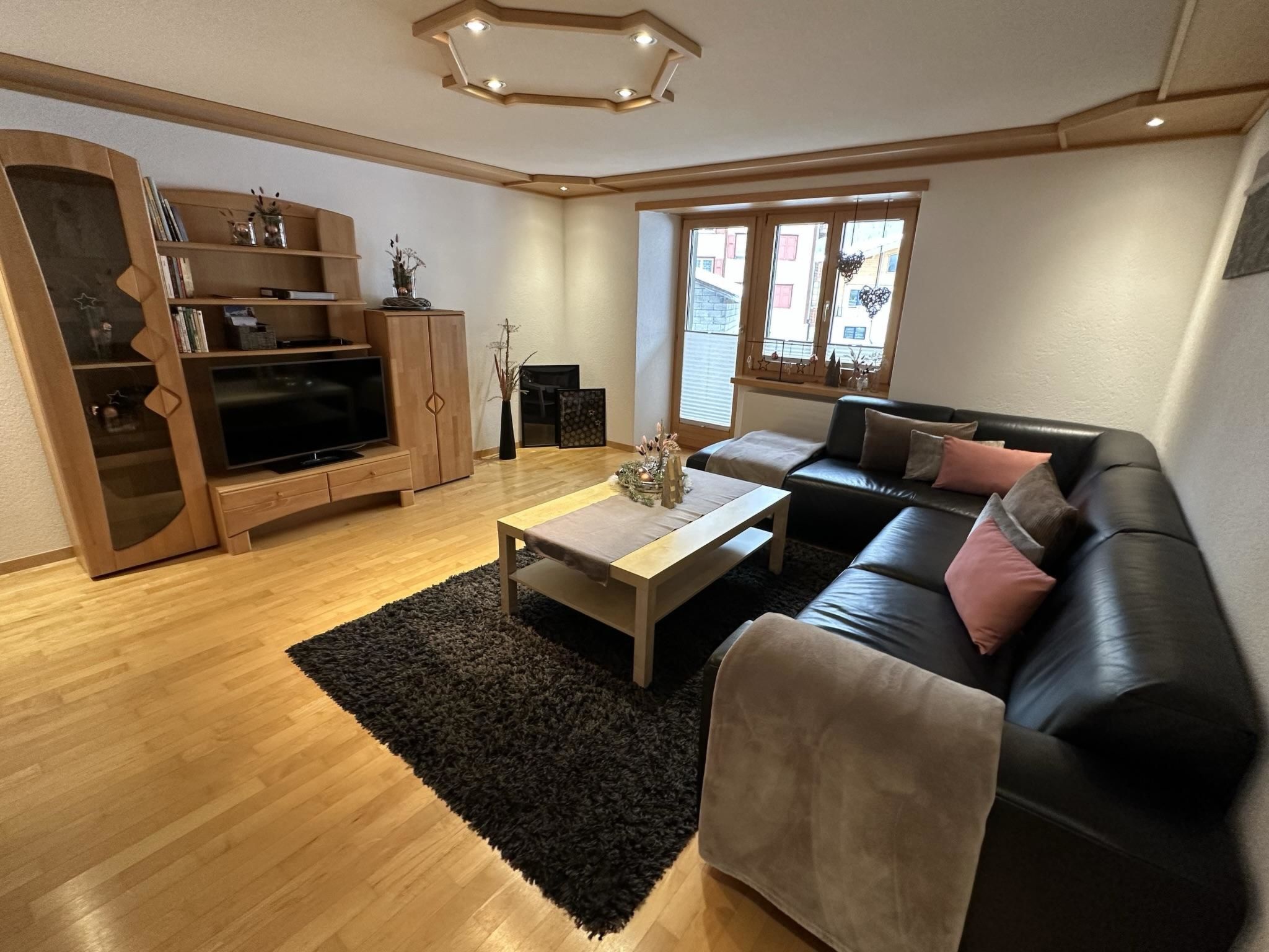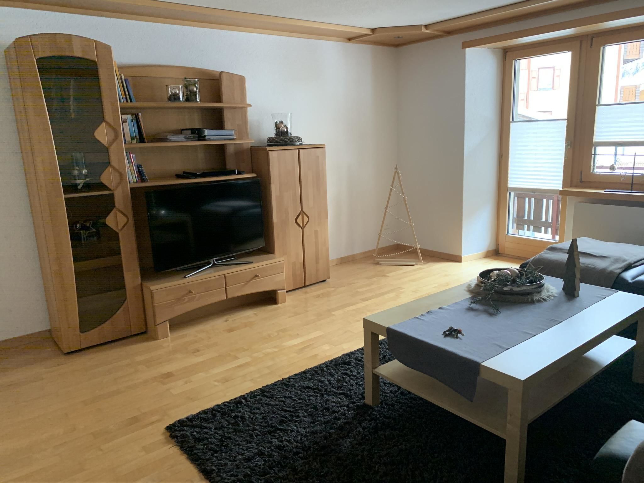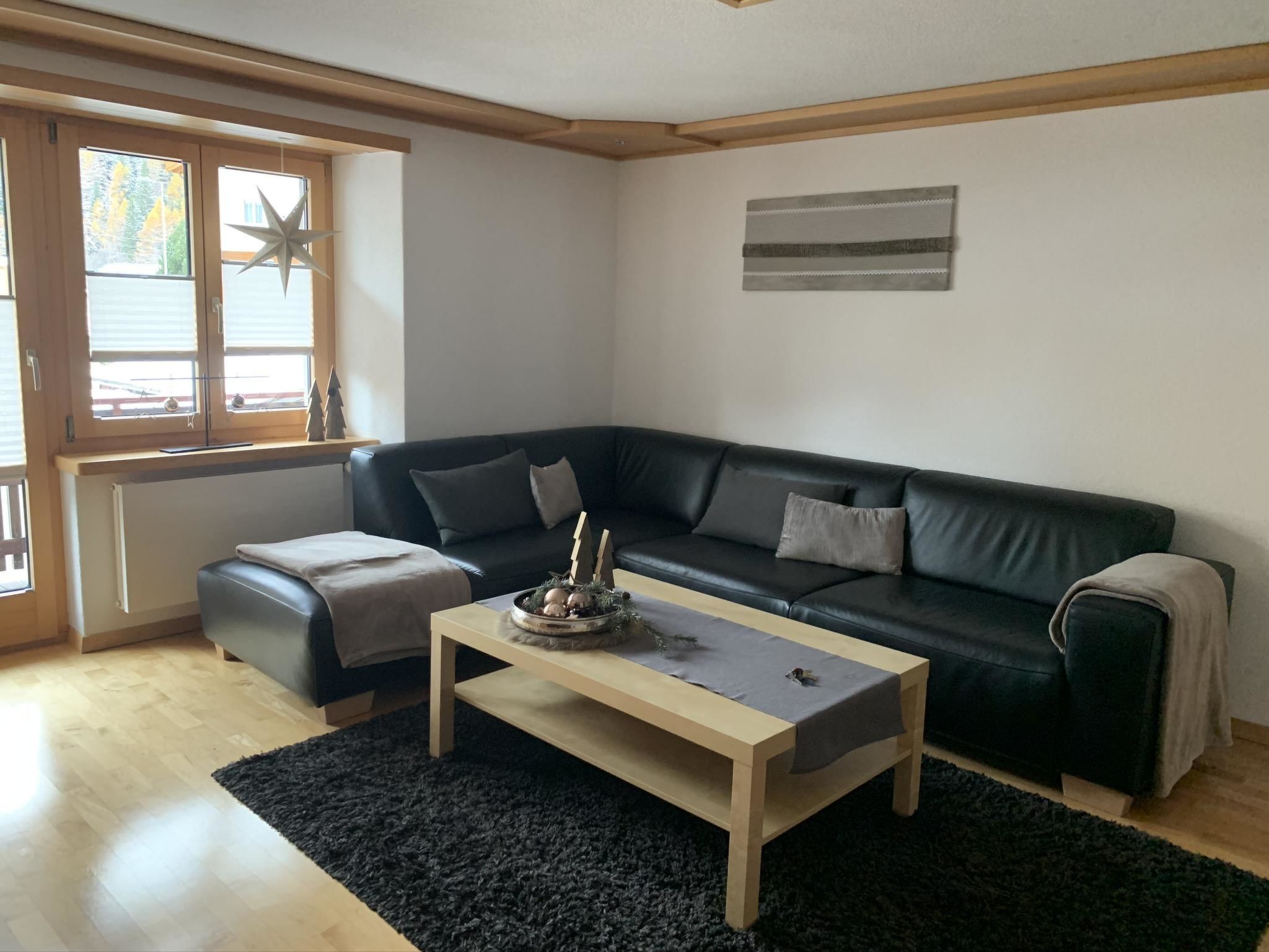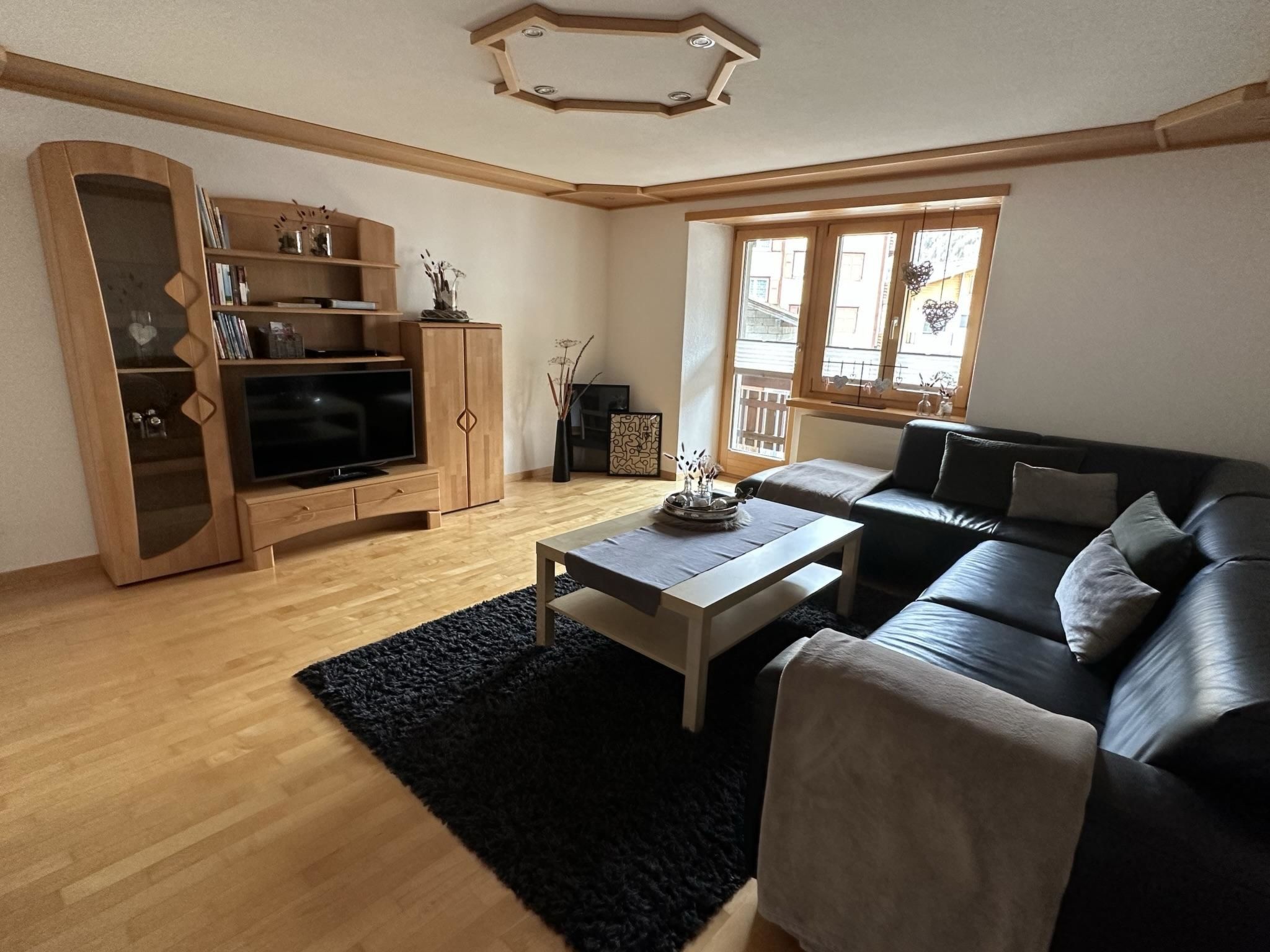 Die 4.5-Zimmerwohnung befindet sich im 1. Stock und bietet Platz für 2 - 5 Personen (ca. 95m2). Das Apartment ist ausgestattet mit: - Wohnzimmer mit Flachbild-TV-SAT / DVD-Player (Blu-ray) - DAB Digital Radio - Kostenfreies WLAN (Internet) - Eine separate Küche mit Geschirrspüler, Glaskeramik-Kochfeld, Backofen, Kühlschrank, Gefrierschrank, Nespresso Kaffeemaschine (Kapselsystem), Filter-Kaffeemaschine, Mikrowelle, Toaster, Racletteofen und Fonduerechaud - Zwei Doppelschlafzimmer, eines davon mit Waschbecken - Ein Einzelzimmer mit Waschbecken - Babybett (Reisebett) und Zubehör auf Anfrage vorhanden - Bettschutzgitter - Nasszelle mit Dusche, WC und Waschbecken - Haartrockner und Kosmetikspiegel - Handtuchradiator - Bettwäsche, Frottier- und Küchentücher - Holzparkett - Südbalkon mit Tisch, Stühlen und Sonnenschirm - Gratis Parkplatz beim Haus - Skiraum - Skischuhtrockner - Haustiere sind nicht erlaubt - Nichtraucherwohnung
