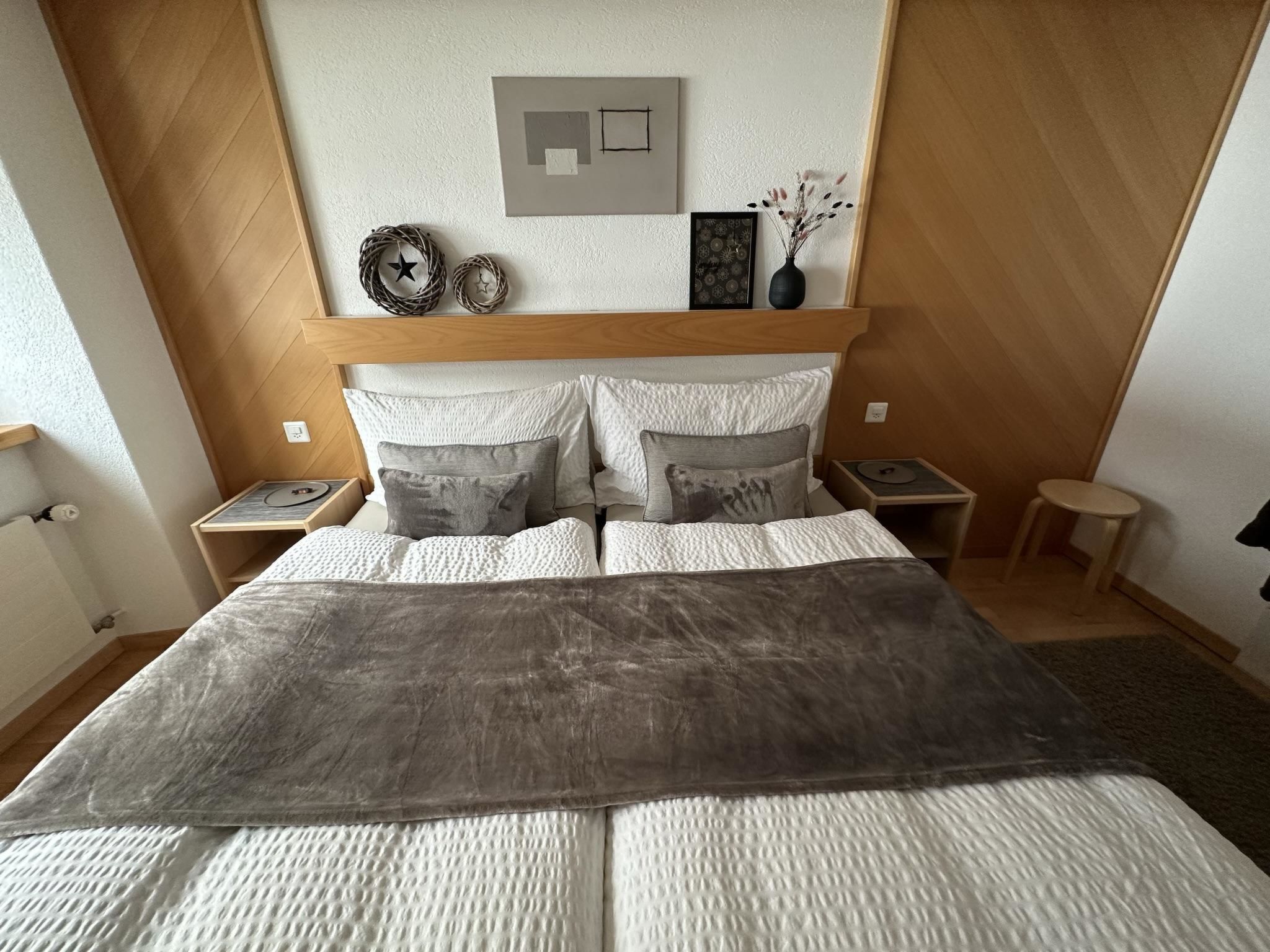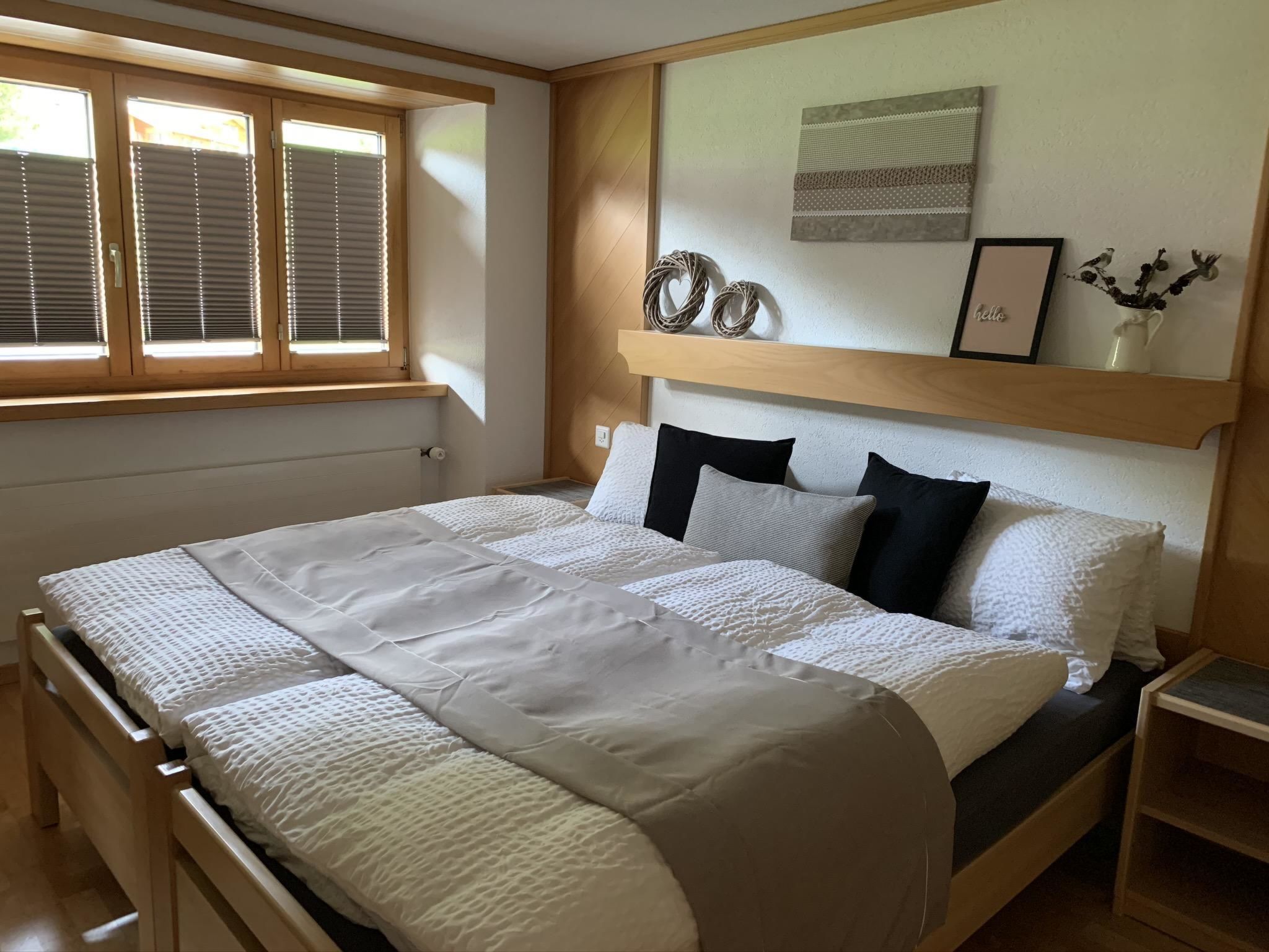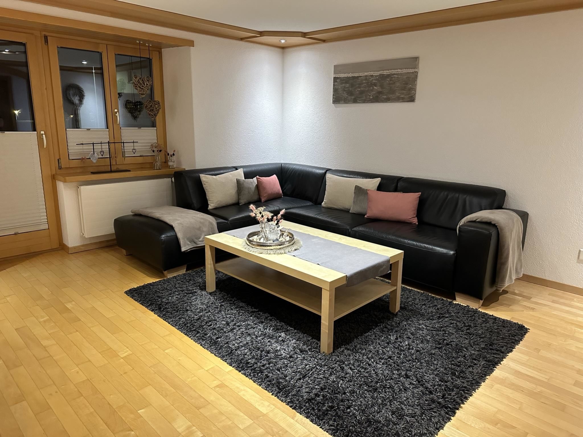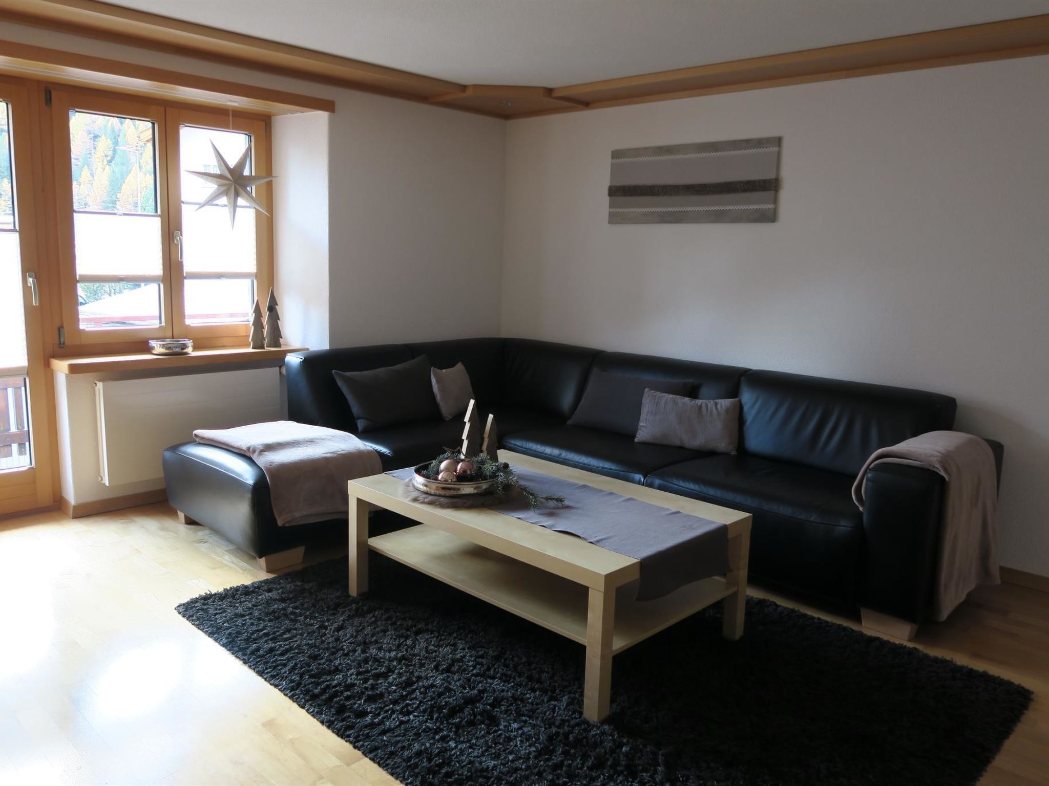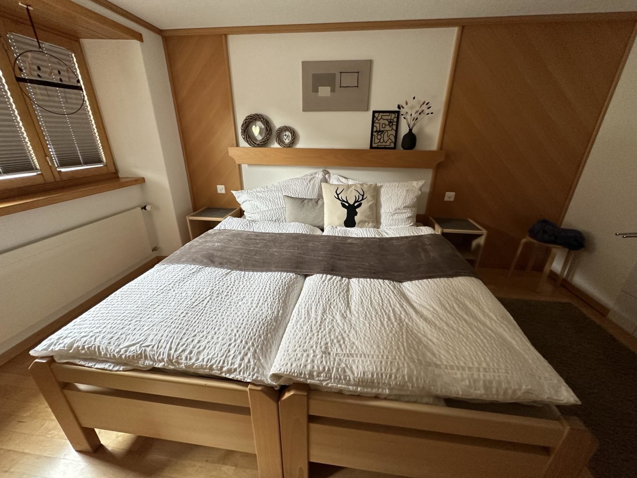 Die 4.5-Zimmerwohnung befindet sich im 1. Stock und bietet Platz für 2 - 5 Personen (ca. 95m2). Das Apartment ist ausgestattet mit: - Wohnzimmer mit Flachbild-TV-SAT / DVD-Player (Blu-ray) - DAB Digital Radio - Kostenfreies WLAN (Internet) - Eine separate Küche mit Geschirrspüler, Glaskeramik-Kochfeld, Backofen, Kühlschrank, Gefrierschrank, Nespresso Kaffeemaschine (Kapselsystem), Filter-Kaffeemaschine, Mikrowelle, Toaster, Racletteofen und Fonduerechaud - Zwei Doppelschlafzimmer, eines davon mit Waschbecken - Ein Einzelzimmer mit Waschbecken - Babybett (Reisebett) und Zubehör auf Anfrage vorhanden - Bettschutzgitter - Nasszelle mit Dusche, WC und Waschbecken - Haartrockner und Kosmetikspiegel - Handtuchradiator - Bettwäsche, Frottier- und Küchentücher - Holzparkett - Südbalkon mit Tisch, Stühlen und Sonnenschirm - Gratis Parkplatz beim Haus - Skiraum - Skischuhtrockner - Haustiere sind nicht erlaubt - Nichtraucherwohnung