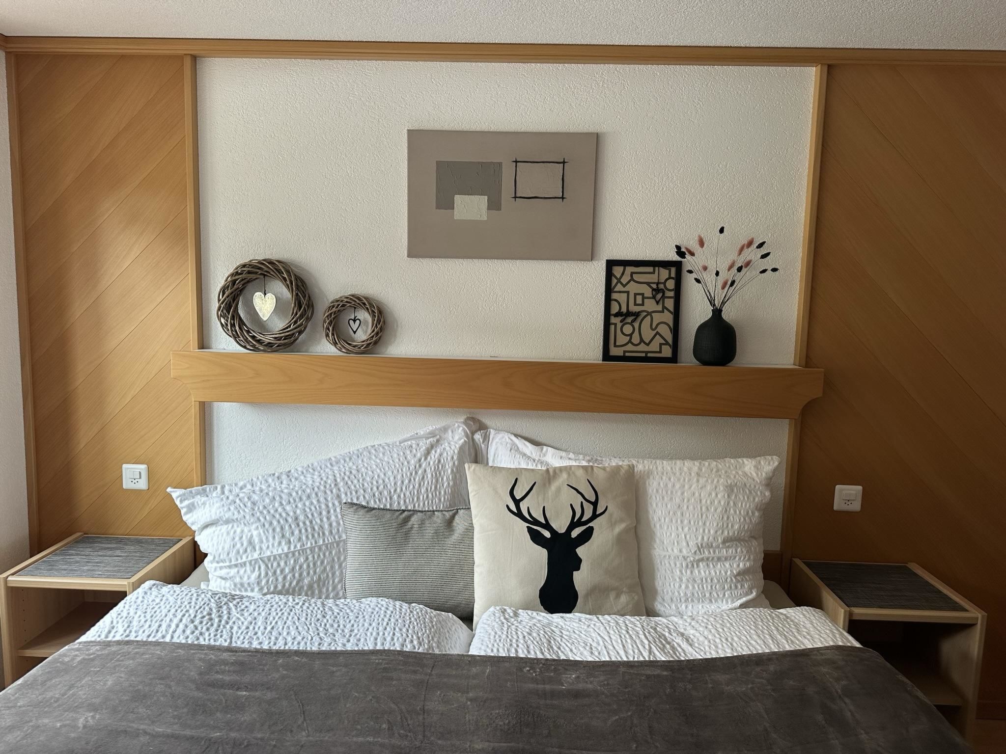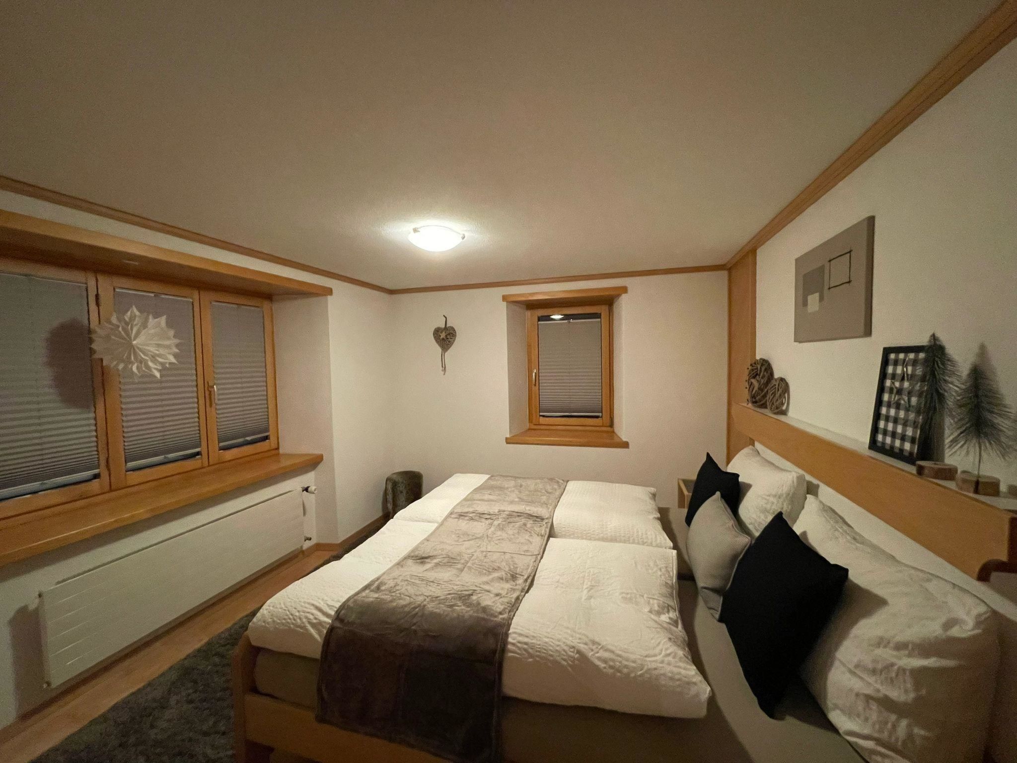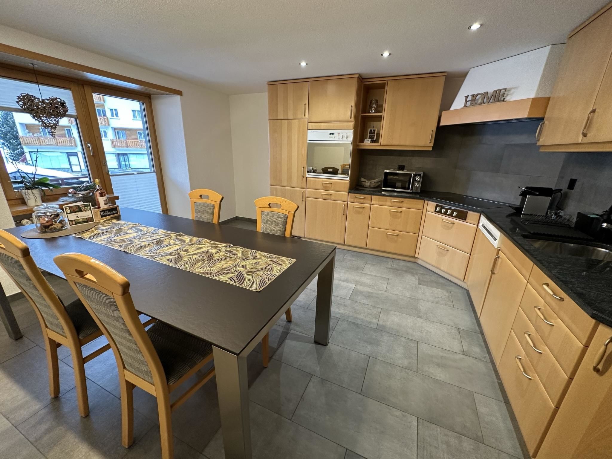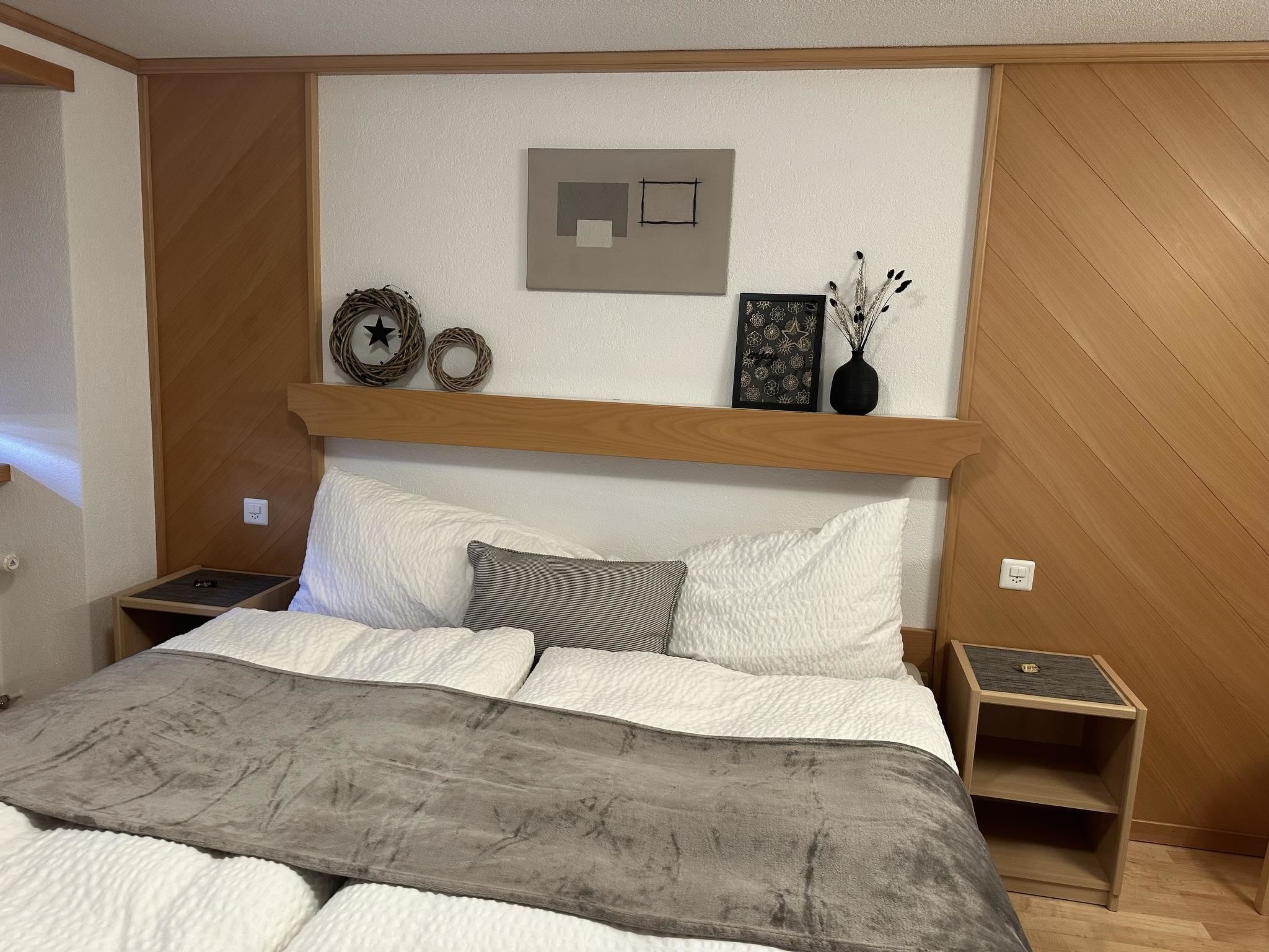 Die 4.5-Zimmerwohnung befindet sich im 1. Stock und bietet Platz für 2 - 5 Personen (ca. 95m2). Das Apartment ist ausgestattet mit: - Wohnzimmer mit Flachbild-TV-SAT / DVD-Player (Blu-ray) - DAB Digital Radio - Kostenfreies WLAN (Internet) - Eine separate Küche mit Geschirrspüler, Glaskeramik-Kochfeld, Backofen, Kühlschrank, Gefrierschrank, Nespresso Kaffeemaschine (Kapselsystem), Filter-Kaffeemaschine, Mikrowelle, Toaster, Racletteofen und Fonduerechaud - Zwei Doppelschlafzimmer, eines davon mit Waschbecken - Ein Einzelzimmer mit Waschbecken - Babybett (Reisebett) und Zubehör auf Anfrage vorhanden - Bettschutzgitter - Nasszelle mit Dusche, WC und Waschbecken - Haartrockner und Kosmetikspiegel - Handtuchradiator - Bettwäsche, Frottier- und Küchentücher - Holzparkett - Südbalkon mit Tisch, Stühlen und Sonnenschirm - Gratis Parkplatz beim Haus - Skiraum - Skischuhtrockner - Haustiere sind nicht erlaubt - Nichtraucherwohnung
