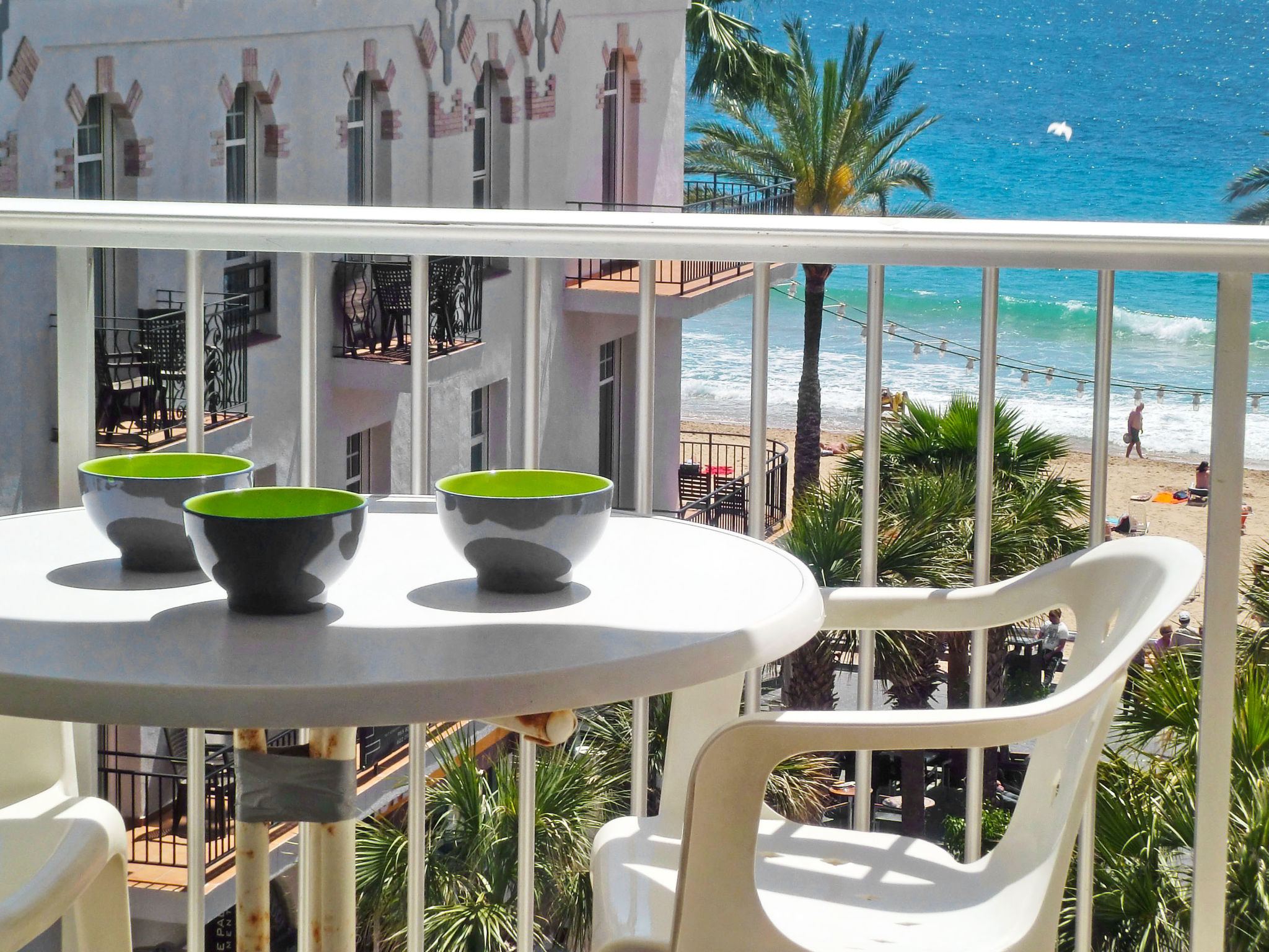 "Giner", 3-Zimmer-Wohnung 75 m2 im 4. Stock, Ostlage. Geräumig und hell, komfortabel und modern eingerichtet: Wohn-/Esszimmer 18 m2 mit Digital-TV und E-Heizung. Ausgang zum Balkon. 2 Zimmer 12 m2, jedes Zimmer mit 2 Betten (90 cm, Länge 190 cm). Kleine Küche 5 m2 (Backofen, 4 Glaskeramikherd Platten, Toaster, Wasserkocher, Mikrowelle, Tiefkühler, elektrische Kaffeemaschine) mit Boiler (100 Liter). Dusche/WC. E-Heizung. Kleine Terrasse. Terrassenmöbel. Sehr schöne Sicht auf das Meer und die Ortschaft. Zur Verfügung: Waschmaschine, Bügeleisen, Haartrockner. Internet (Wireless LAN, gratis). Bitte beachten: kein Parkplatz. AT319062BM