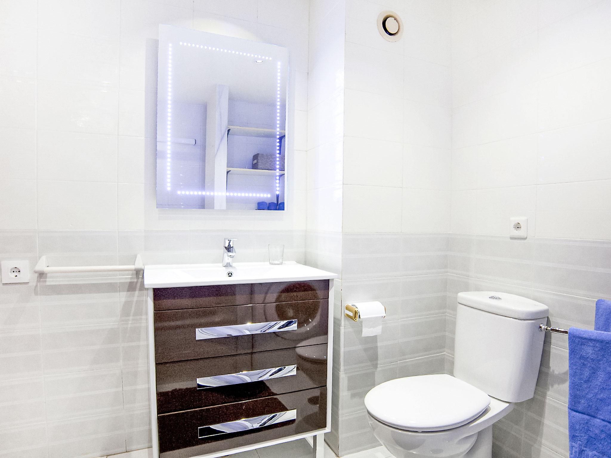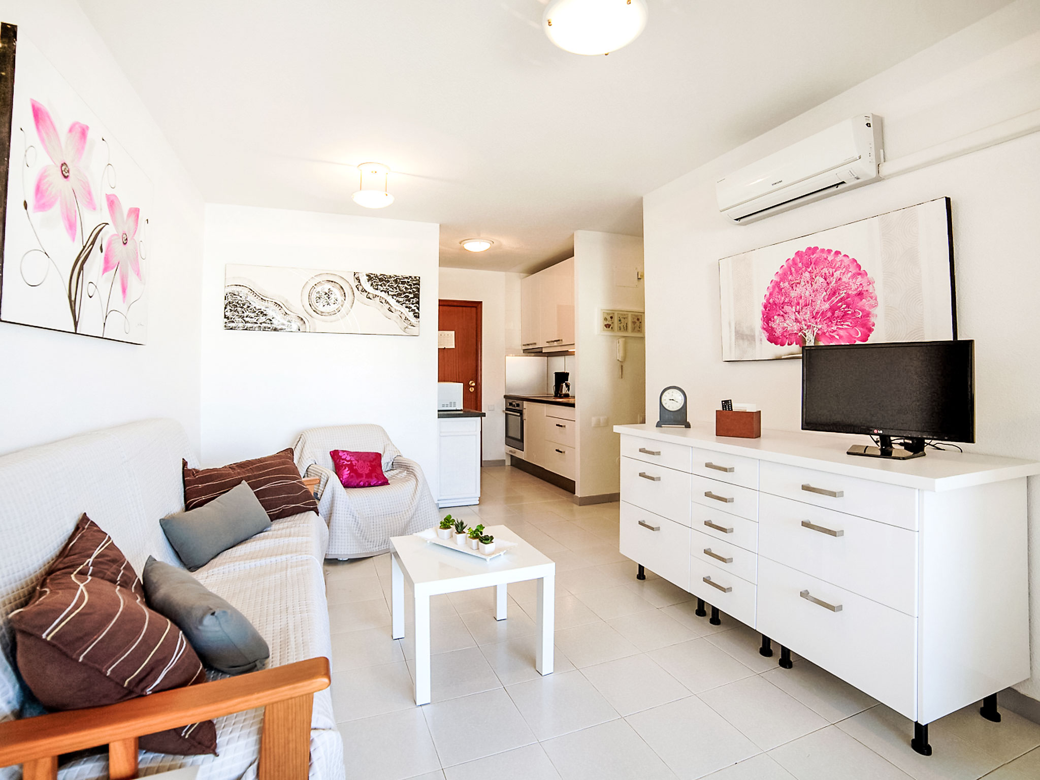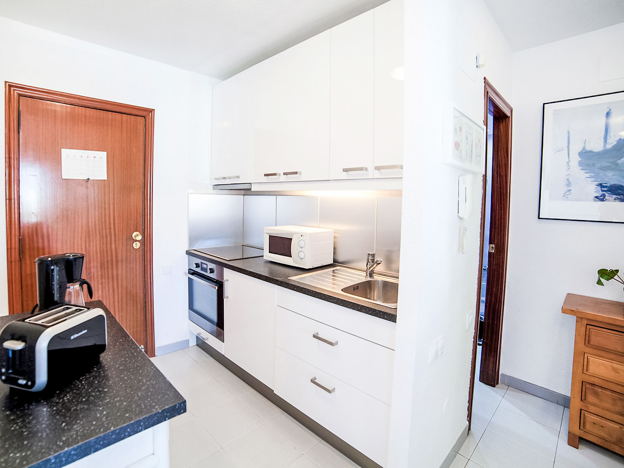 "Esmeralda 02", 2-Zimmer-Wohnung 55 m2 im 12. Stock. Hell, geschmackvoll und stilvoll eingerichtet: Wohn-/Esszimmer mit 1 Doppeldiwanbett, Sat-TV, Digital-TV, Flachbildschirm, Klimaanlage und Warmluftheizung. Ausgang zur Terrasse. 1 Doppelzimmer mit 1 Doppelbett (135 cm, Länge 190 cm). Offene Küche (Backofen, 4 Glaskeramikherd Platten, elektrische Kaffeemaschine, Kombinationsmikrowelle). Bad/WC. Boiler (75 Liter). Terrassenmöbel, Liegestühle (2). Panoramasicht auf das Meer. Zur Verfügung: Waschmaschine. Internet (Wireless LAN, gratis). Parkplatz (extra). Geeignet für Familien. AT-440467-A