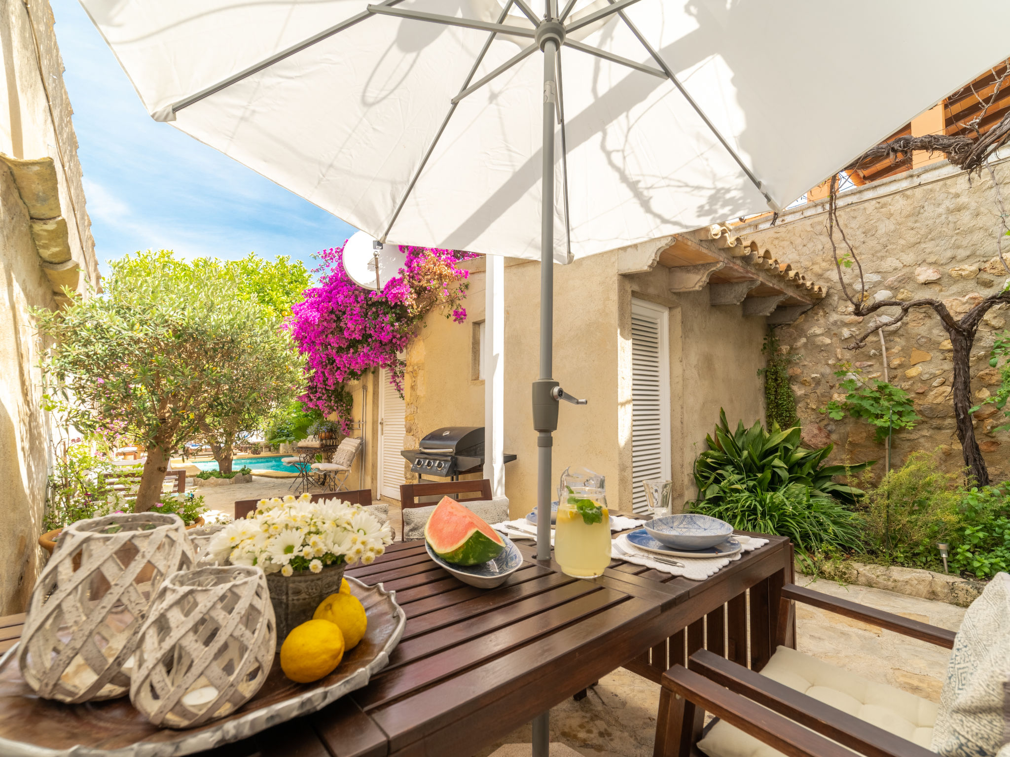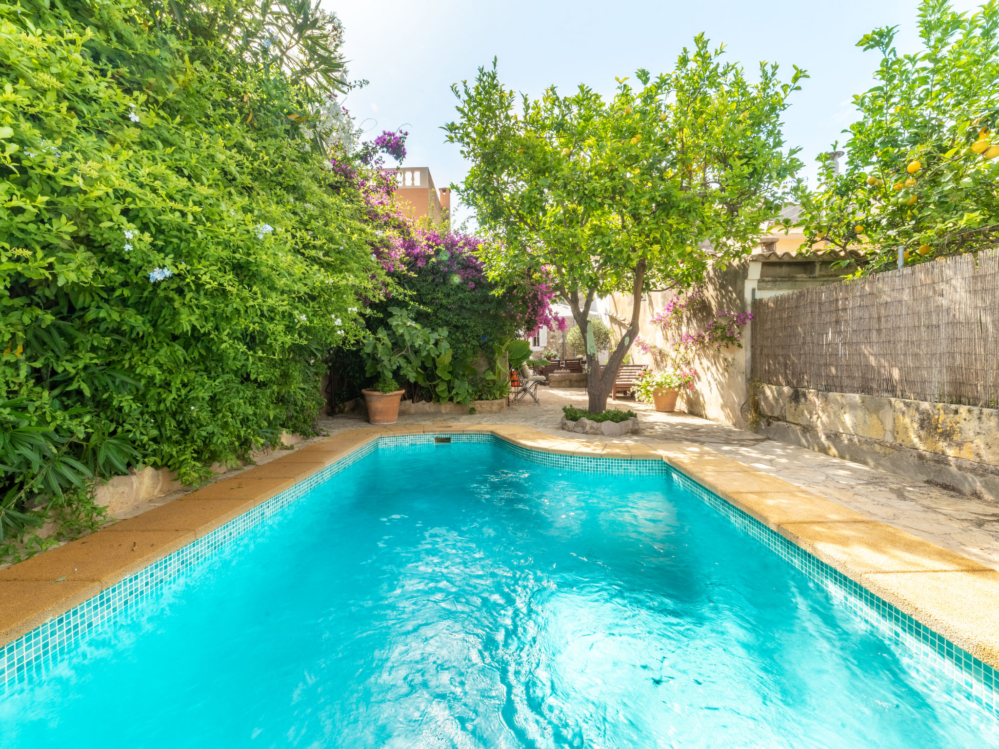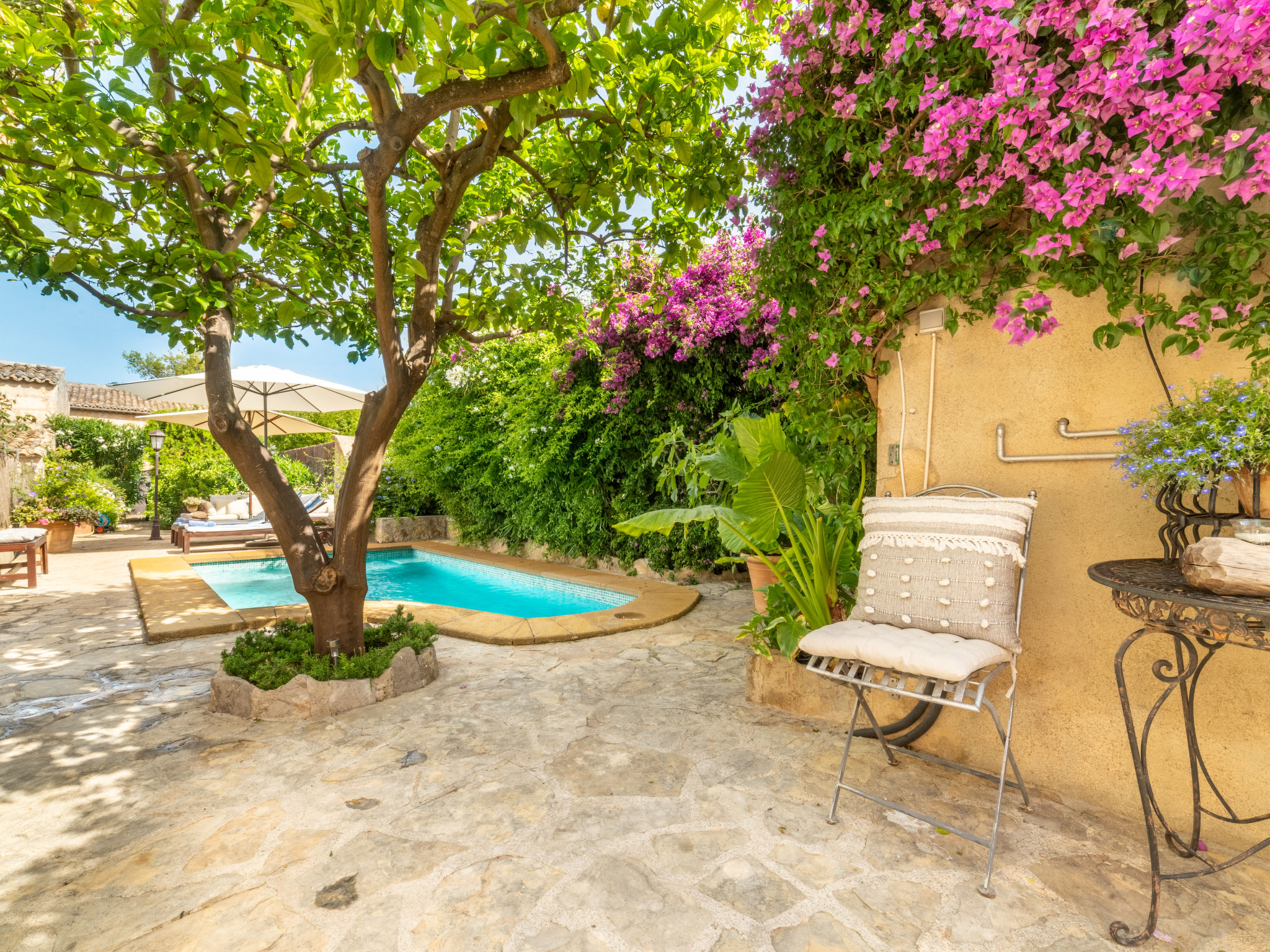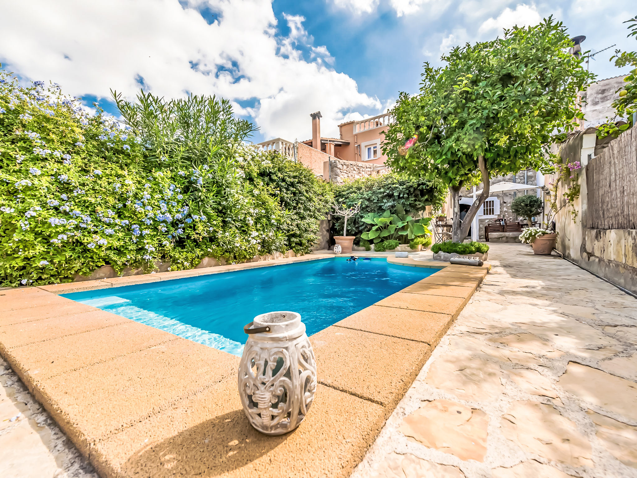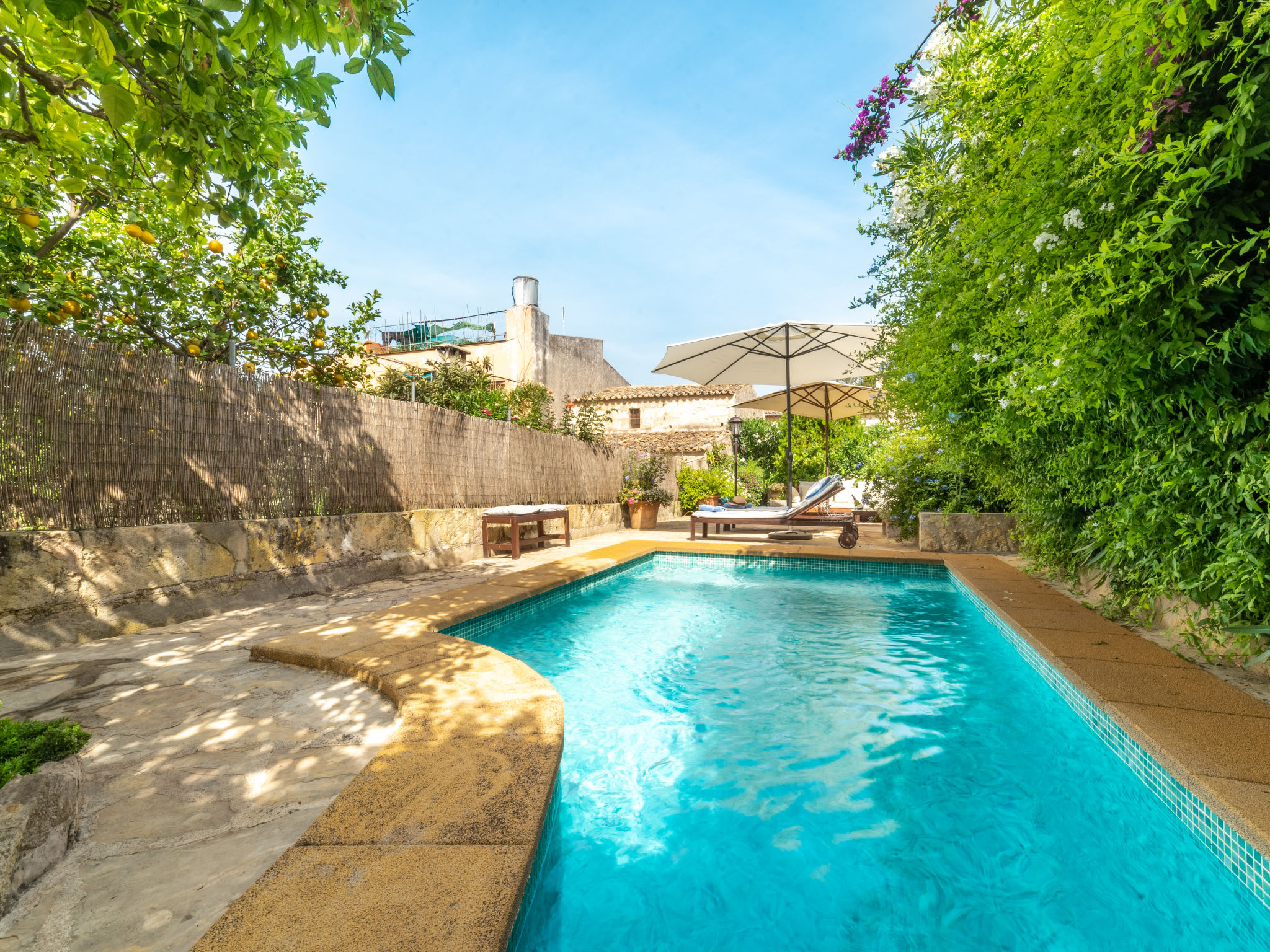 Campanet: Schönes, rustikales Haus "Sa Teulera", auf 2 Stockwerken. Im Ort, 1 km vom Zentrum, ruhige Lage. Zur Alleinbenutzung: wunderschöner Garten zum Entspannen, Schwimmbad eckig (6 x 4 m, 01.03. und 30.11.). Dusche/WC im Poolbereich, Sitzplatz (100 m2), Gartenmöbel, Grill. Im Hause: mit TV, Wireless LAN, Klimaanlage, Waschmaschine, Wäschetrockner. Einkaufsgeschäft, Lebensmittelgeschäft, Supermarkt, Restaurant, Bar, Bäckerei, Café, Fußgängerzone 900 m, Fahrradverleih 5 km, Biergarten 900 m, Bushaltestelle "900", Sandstrand "Playa de Alcudia" 17 km, Kieselstrand "Playa de Aucanada" 18 km, Steinstrand "Playa de Aucanada" 18 km, Felsstrand "Playa de Aucanada" 18 km. Sporthafen 15 km, Jacht-Hafen 15 km, Golfplatz (18 Loch) 18 km, Tennis 1 km, Sportzentrum 1 km, Radweg 500 m. Nahe gelegene Sehenswürdigkeiten: Coves de Campanet 3 km, Fonts Ufanes 5 km, saclasta.com Wine Tour. Bitte beachten: kein Fahrstuhl vorhanden. Geeignet für Familien, geeignet für Senioren. Objekt geeignet für 6 Erwachsene Jugendgruppen nur auf Anfrage. Be- und Entladen am Ferienhaus möglich. Flugplatz 45 km vom Haus.