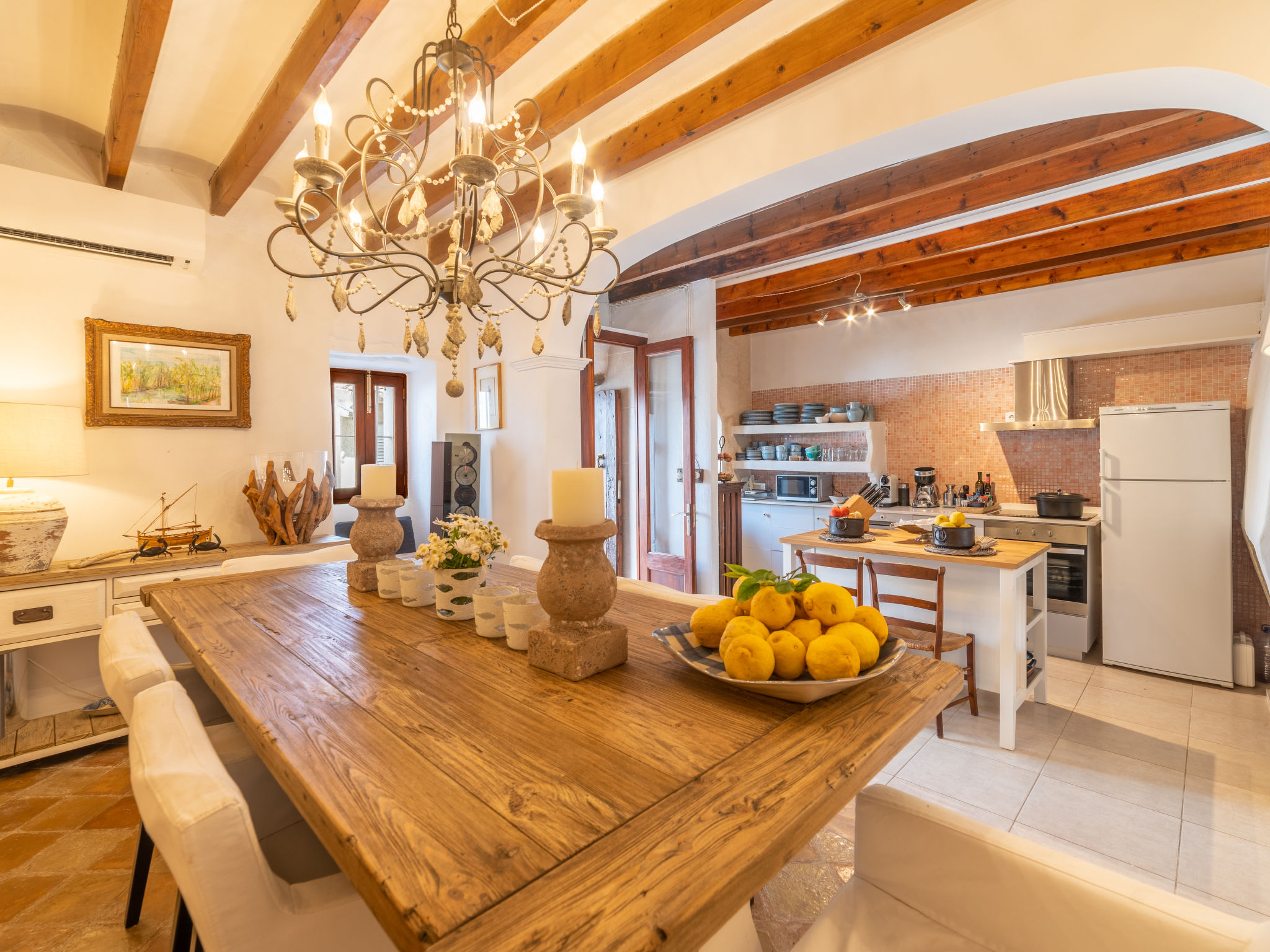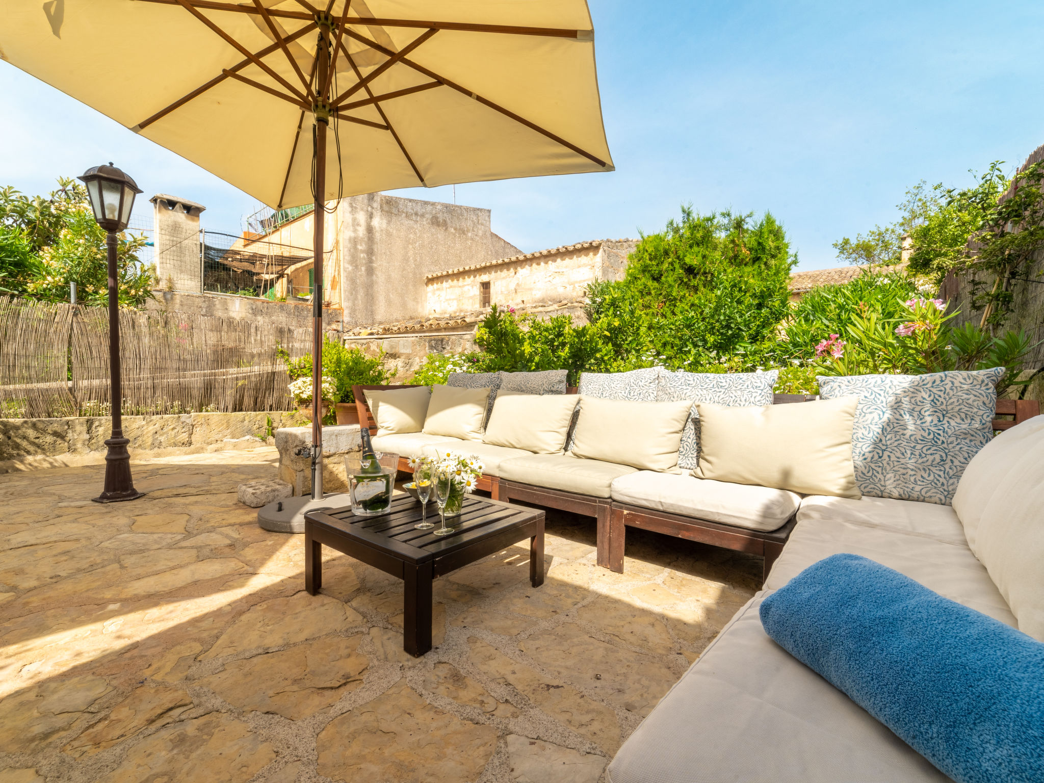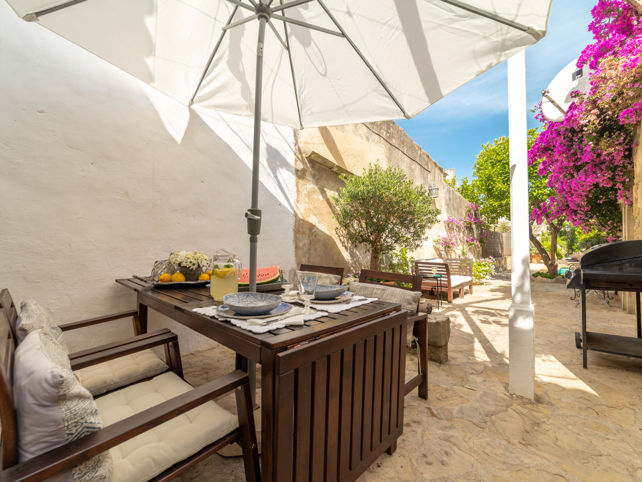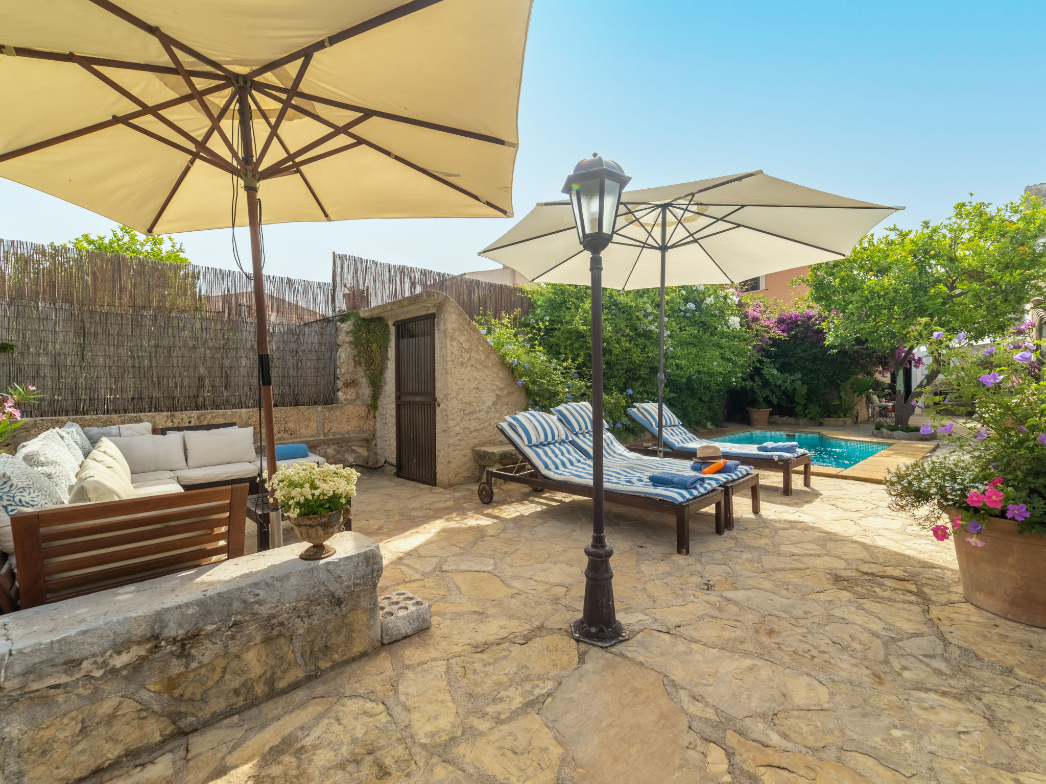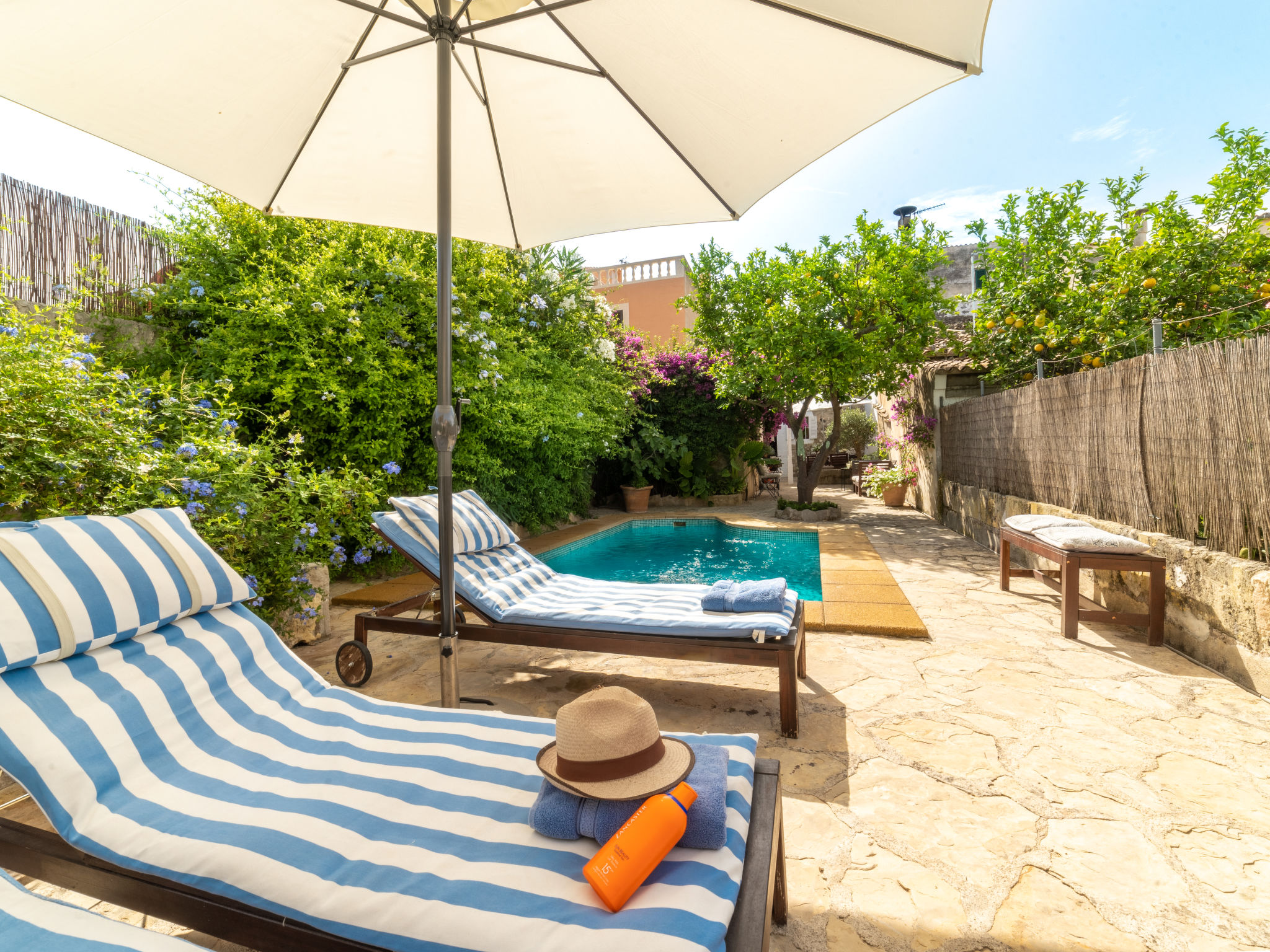 Campanet: Schönes, rustikales Haus "Sa Teulera", auf 2 Stockwerken. Im Ort, 1 km vom Zentrum, ruhige Lage. Zur Alleinbenutzung: wunderschöner Garten zum Entspannen, Schwimmbad eckig (6 x 4 m, 01.03. und 30.11.). Dusche/WC im Poolbereich, Sitzplatz (100 m2), Gartenmöbel, Grill. Im Hause: mit TV, Wireless LAN, Klimaanlage, Waschmaschine, Wäschetrockner. Einkaufsgeschäft, Lebensmittelgeschäft, Supermarkt, Restaurant, Bar, Bäckerei, Café, Fußgängerzone 900 m, Fahrradverleih 5 km, Biergarten 900 m, Bushaltestelle "900", Sandstrand "Playa de Alcudia" 17 km, Kieselstrand "Playa de Aucanada" 18 km, Steinstrand "Playa de Aucanada" 18 km, Felsstrand "Playa de Aucanada" 18 km. Sporthafen 15 km, Jacht-Hafen 15 km, Golfplatz (18 Loch) 18 km, Tennis 1 km, Sportzentrum 1 km, Radweg 500 m. Nahe gelegene Sehenswürdigkeiten: Coves de Campanet 3 km, Fonts Ufanes 5 km, saclasta.com Wine Tour. Bitte beachten: kein Fahrstuhl vorhanden. Geeignet für Familien, geeignet für Senioren. Objekt geeignet für 6 Erwachsene Jugendgruppen nur auf Anfrage. Be- und Entladen am Ferienhaus möglich. Flugplatz 45 km vom Haus.