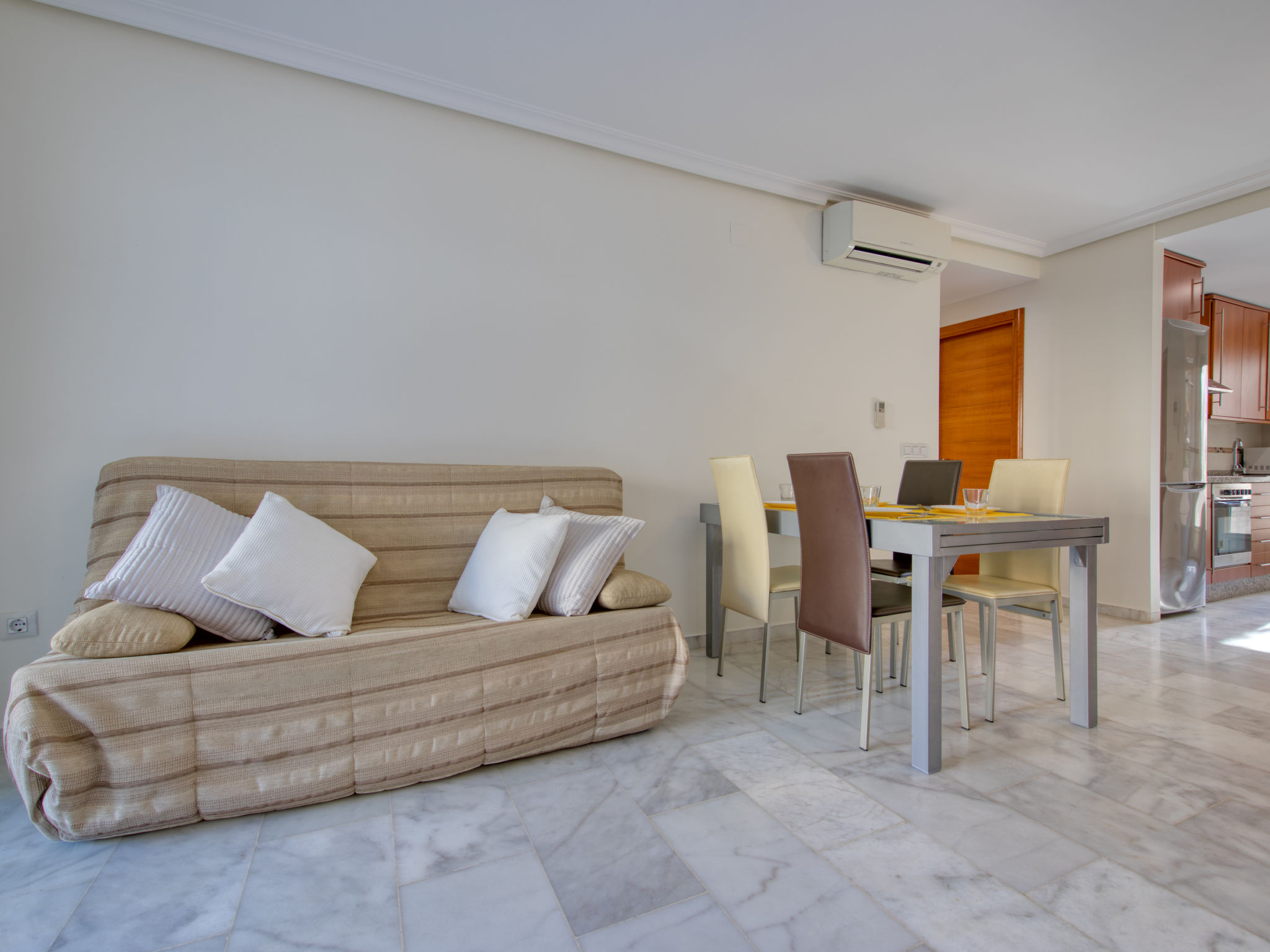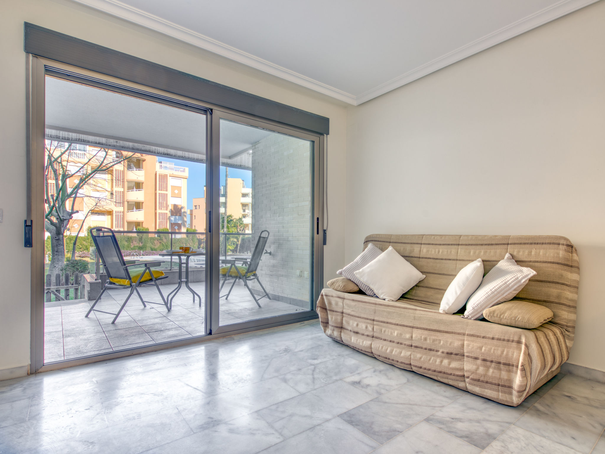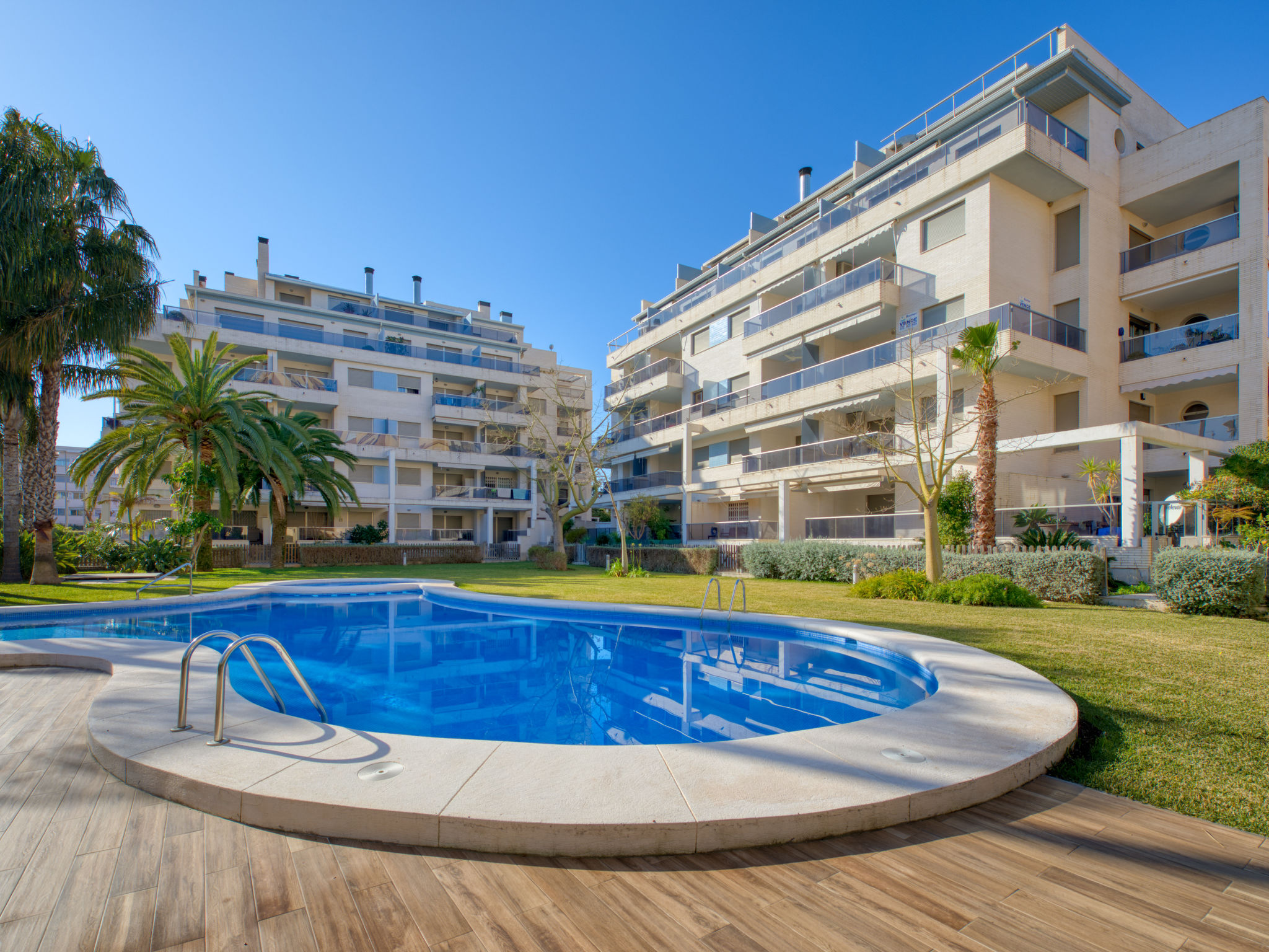 Sehr schönes, gemütliches Appartementhaus. Im Ort, 1.5 km vom Zentrum von Dénia, 400 m vom Meer, 400 m vom Strand. Zur Mitbenutzung: schöner Garten (eingezäunt) mit Rasen und Bäumen, Schwimmbad (saisonale Verfügbarkeit: 01.Jan.-31.Dez.). Aussendusche, Parkplatz (überdacht). Supermarkt 550 m, Restaurant, Bar 170 m, Sandstrand 400 m. Sporthafen 1.5 km, Jacht-Hafen 1.5 km, Surfschule 500 m, Segelschule 600 m. Der Besitzer akzeptiert keine Jugendgruppen.