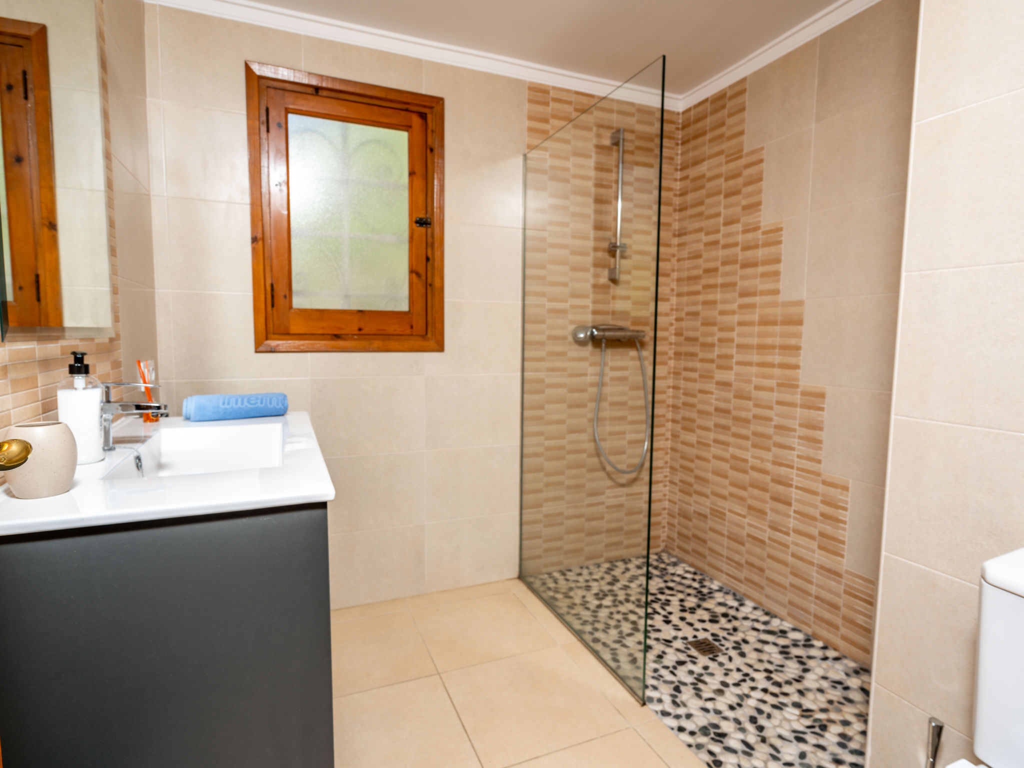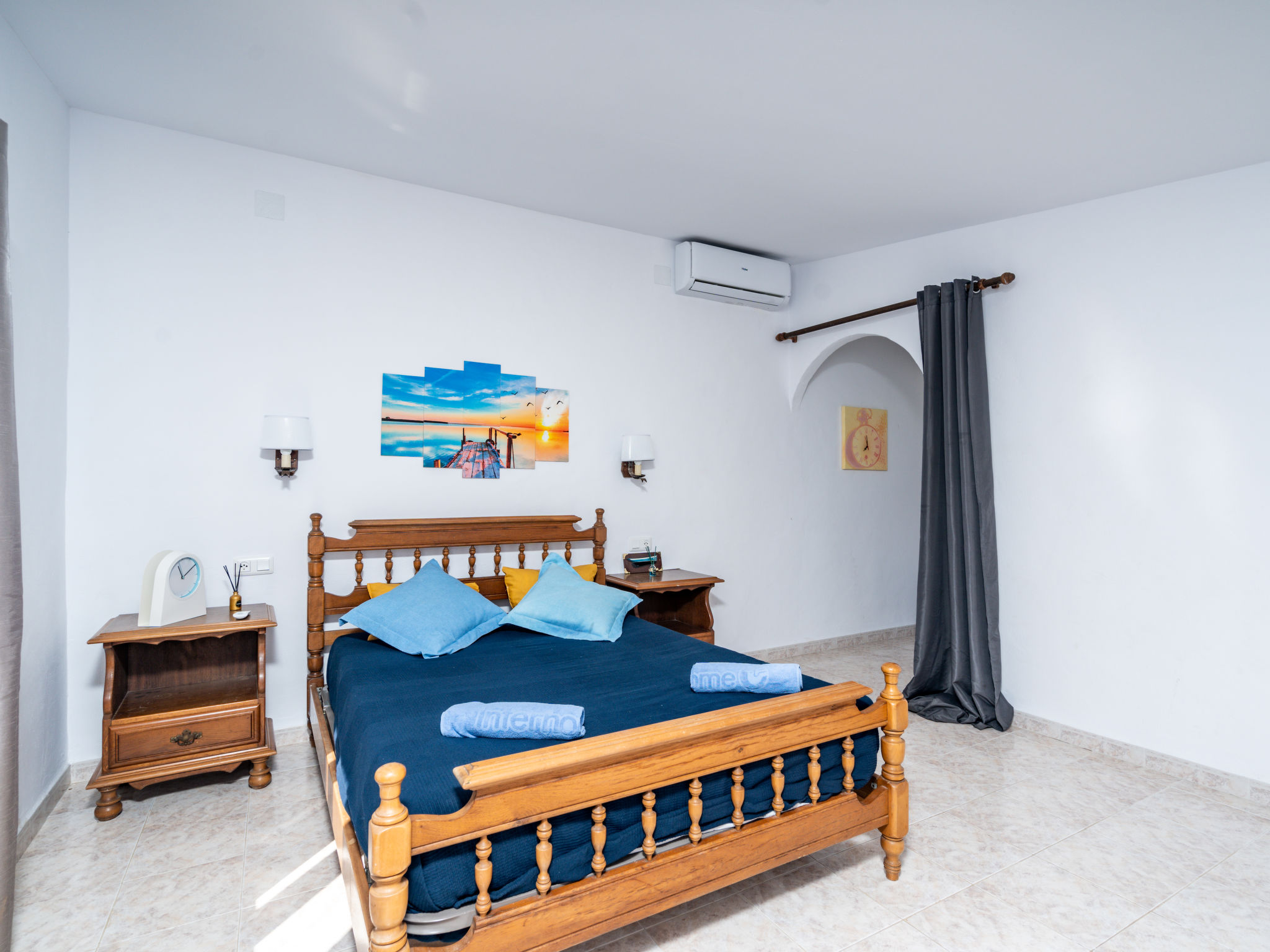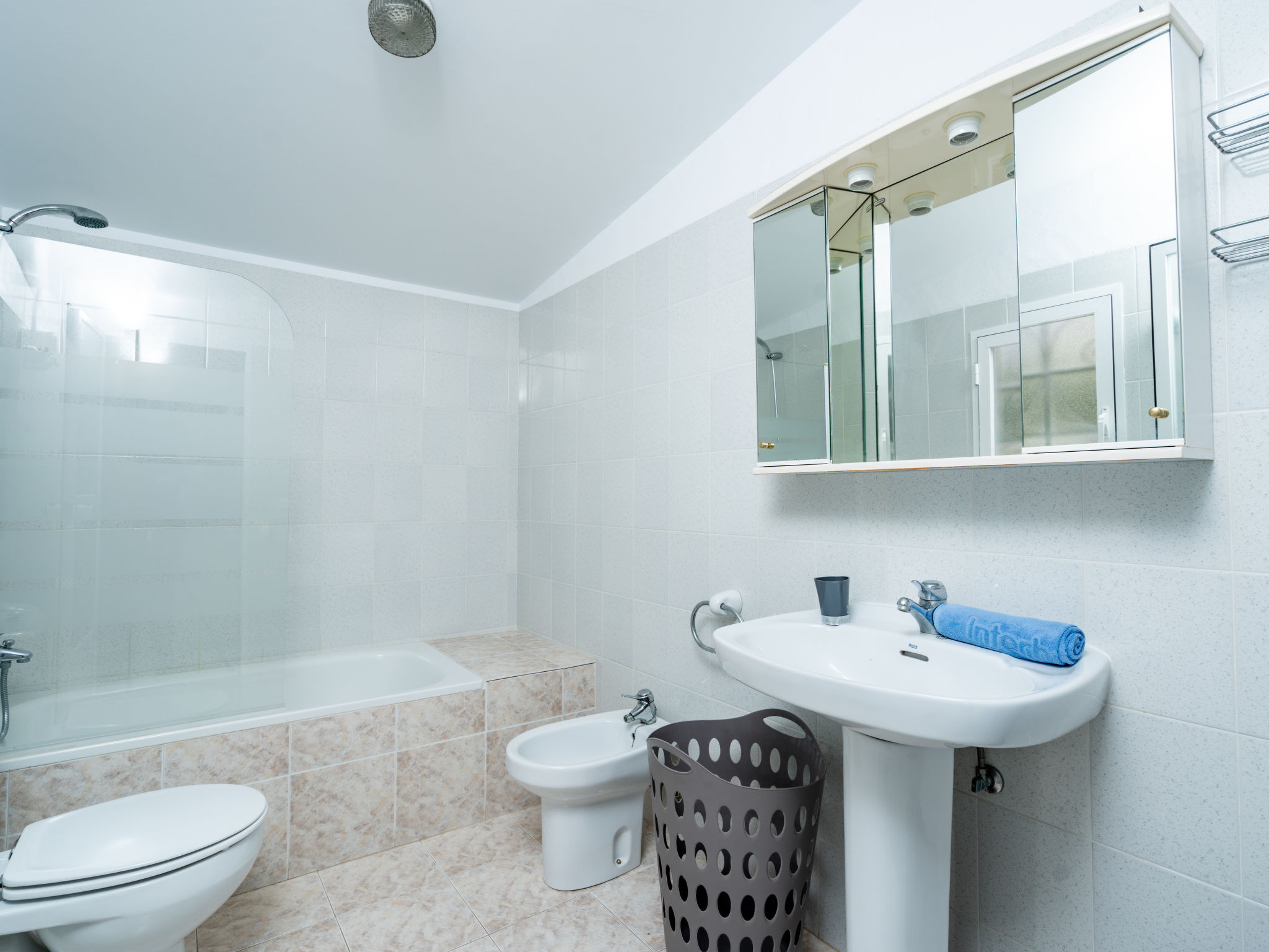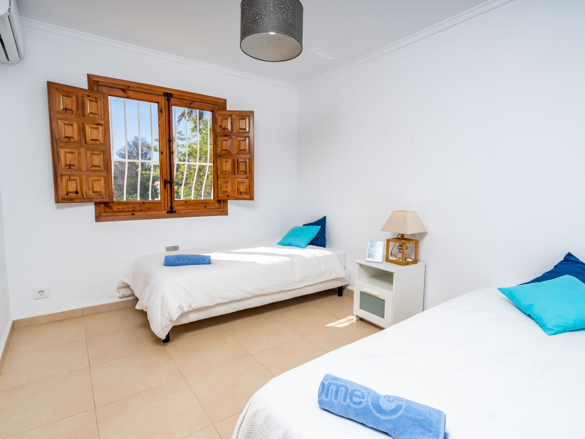 5-Zimmer-Haus 156 m2. Hell, komfortabel und gemütlich eingerichtet: Wohn-/Esszimmer mit Sat-TV und Klimaanlage. Ausgang zum Schwimmbad. 1 Zimmer mit 2 Betten (90 cm, Länge 190 cm), Klimaanlage. 2 Zimmer, jedes Zimmer mit 1 franz. Bett (140 cm, Länge 200 cm), Klimaanlage. Offene Küche (Backofen, Geschirrspüler, 4 Glaskeramikherd Platten, Toaster, Wasserkocher, Mikrowelle, Tiefkühler, elektrische Kaffeemaschine). Dusche/WC, sep. WC. Obergeschoss: (Aussentreppe) 1 Zimmer mit 1 franz. Bett (160 cm, Länge 200 cm), Bad/Bidet/WC und Klimaanlage. Ausgang zur Terrasse. Terrassenmöbel, Gartengrill, Liegestühle (6). Zur Verfügung: Waschmaschine, Bügeleisen, Kinderhochstuhl, Babybett, Haartrockner. Internet (Wireless LAN, gratis). Parkplatz (1 Auto), Garage (1 Auto) beim Haus. Bitte beachten: geeignet für Familien. Nichtraucher-Haus. AT-477320-A