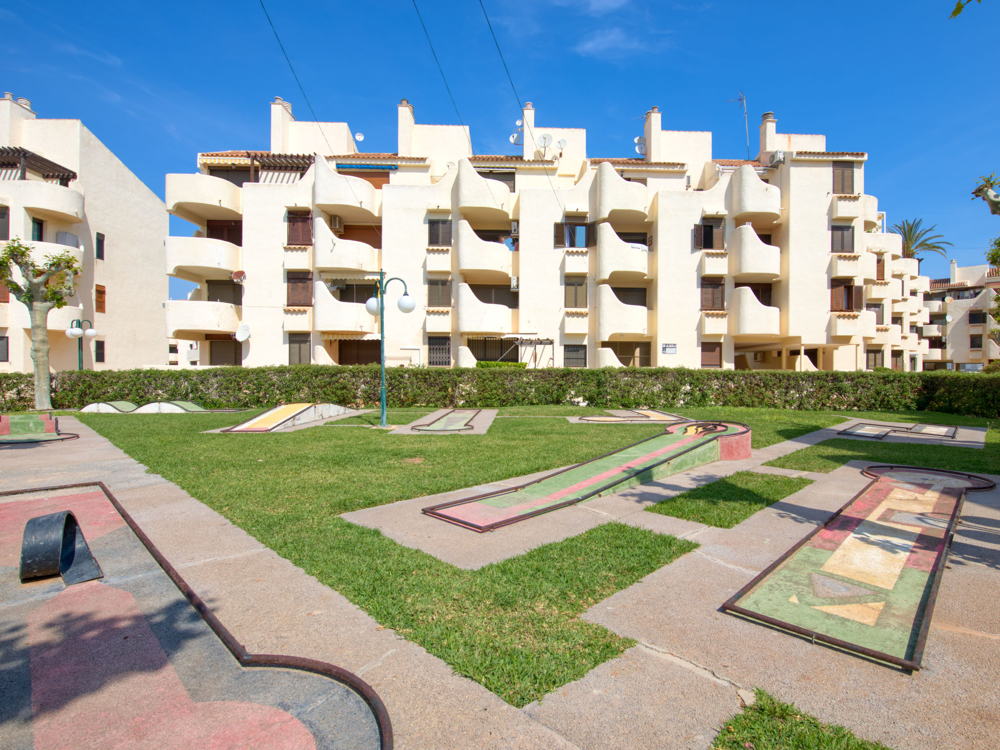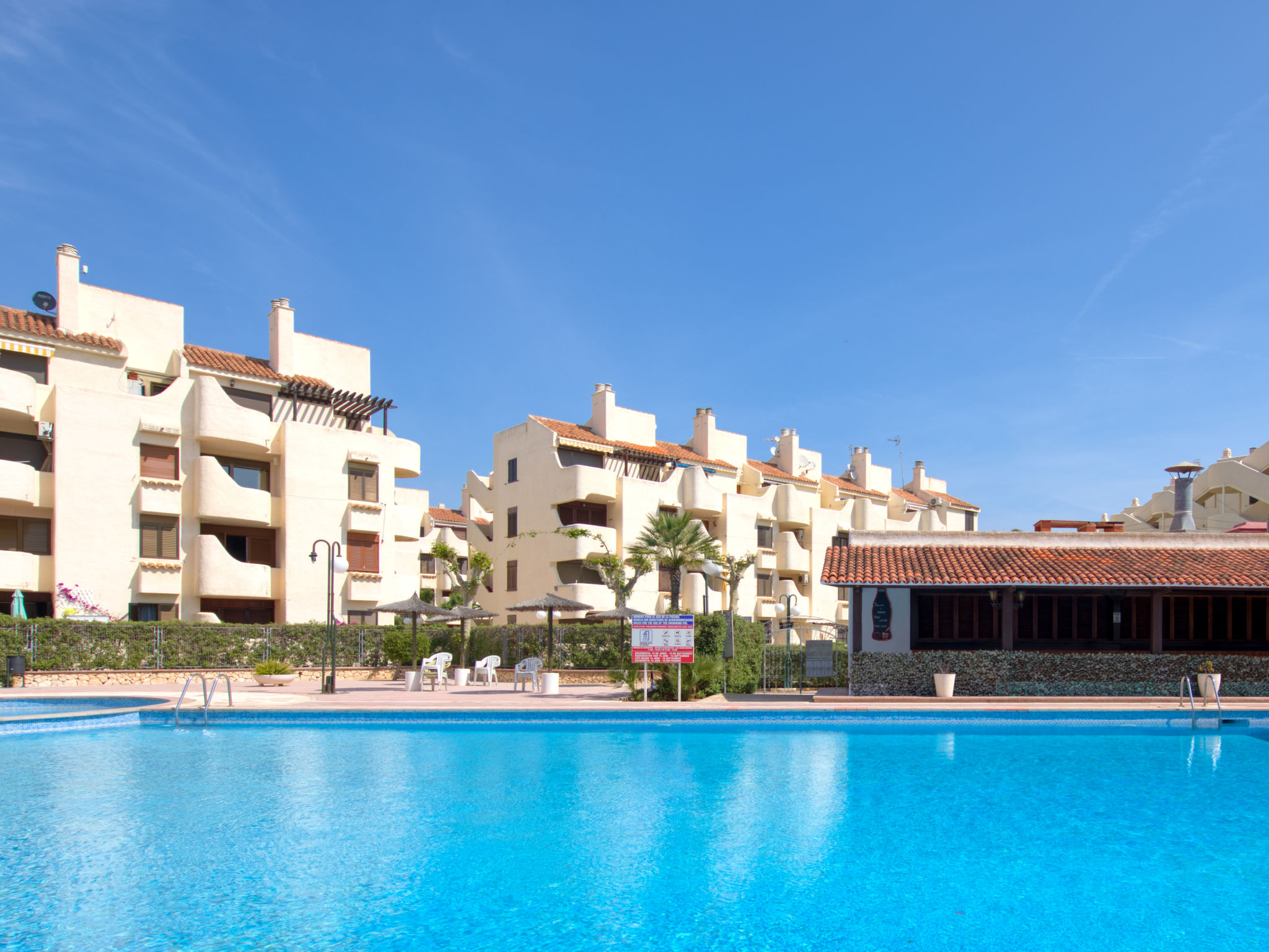 Gemütliches, komfortables Appartementhaus "La Felicidad", renoviert. Im Ort, 3 km vom Zentrum von Dénia, 220 m vom Meer, 220 m vom Strand. Zur Mitbenutzung: naturbelassenes Grundstück, Naturgarten, Liegewiese, wunderschöner Garten zum Entspannen, Schwimmbad eckig (24 x 12 m, 110 - 200 cm tief, saisonale Verfügbarkeit: 15.Jun.-15.Sep.). WC im Poolbereich, Kinderbecken, Aussendusche, Kinderspielplatz (Rutschbahn, Schaukel). In der Anlage: Restaurant, Bar. Parkplatz auf dem Grundstück. Einkaufsgeschäft, Lebensmittelgeschäft, Restaurant 150 m, Bar 100 m, Café 150 m. Sporthafen 4 km, Jacht-Hafen 4 km, Surfschule 800 m, Segelschule 4 km. Der Besitzer akzeptiert keine Jugendgruppen.