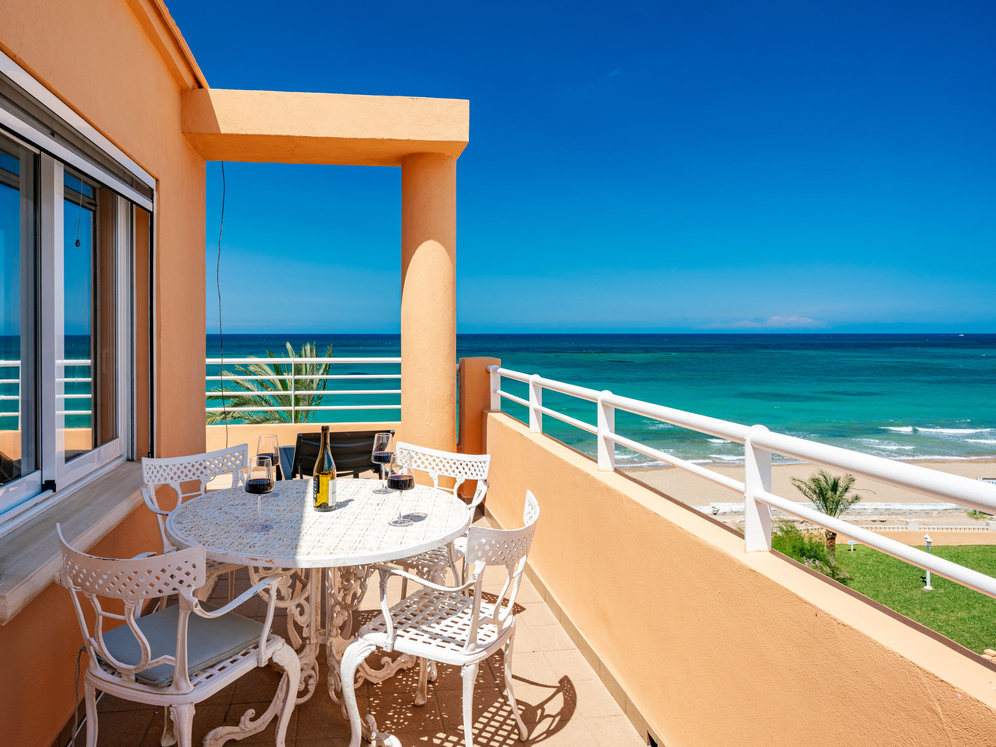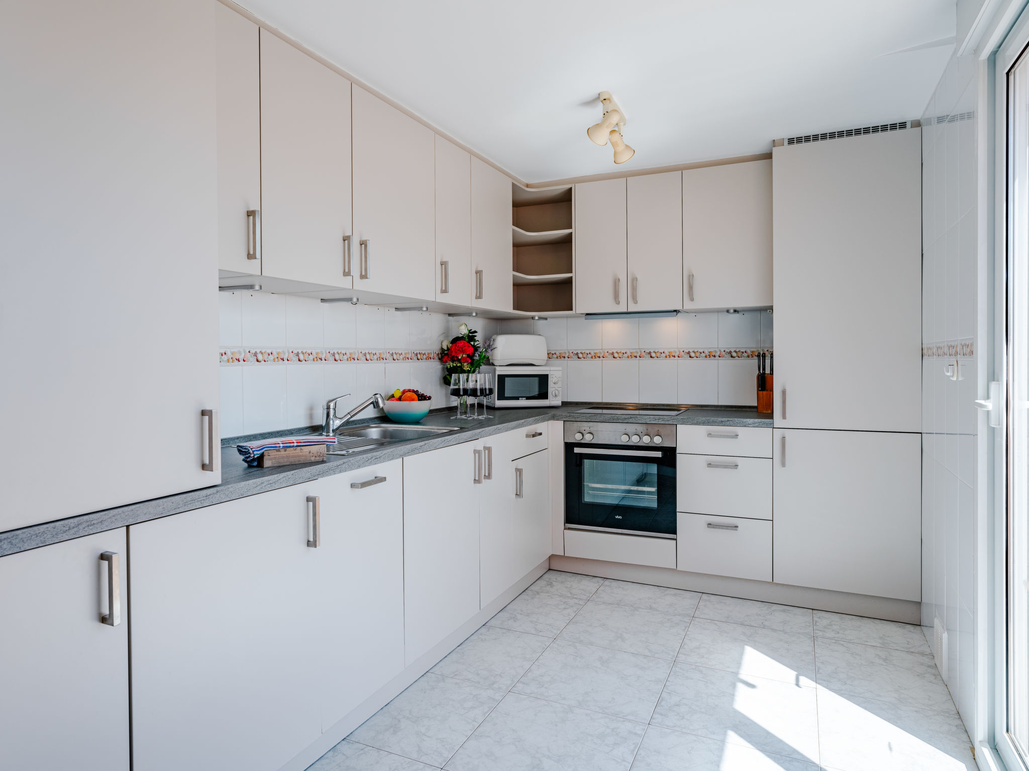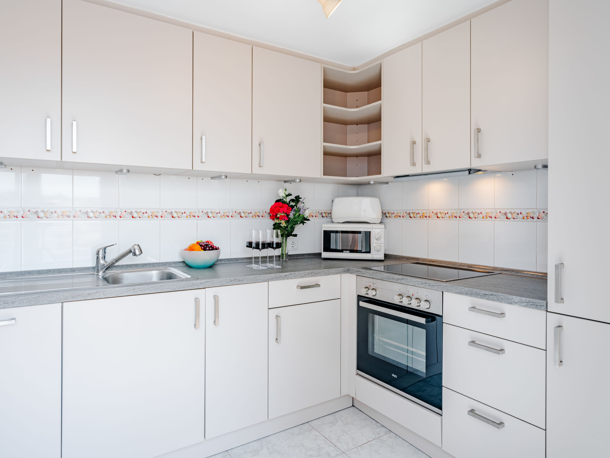 "Talima", 3-Zimmer-Attikawohnung. Geräumig und hell, zweckmässig und komfortabel eingerichtet: Wohn-/Esszimmer mit Sat-TV, Digital-TV und Internationale TV-Sender (Flachbildschirm), Klimaanlage und Warmluftheizung. Ausgang zur Terrasse. 1 Zimmer mit 2 Betten (90 cm). 1 Zimmer mit 1 franz. Bett, Klimaanlage und Warmluftheizung. Ausgang zur Terrasse. Grosse Küche (Backofen, Geschirrspüler, 4 Glaskeramikherd Platten, Mikrowelle, Tiefkühler, elektrische Kaffeemaschine). 2 Bäder/WC. Herrliche Panoramasicht auf das Meer. Zur Verfügung: Waschmaschine. Internet (Wireless LAN, gratis). Parkplatz Nr. 17 (überdacht). Bitte beachten: Nichtraucher-Haus. 1 Haustier/Hund erlaubt. AT-451067-A