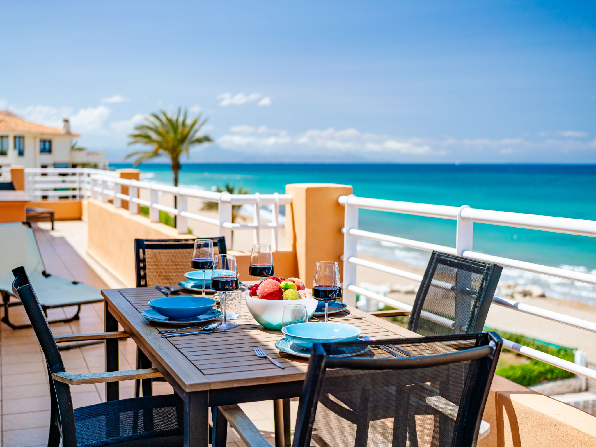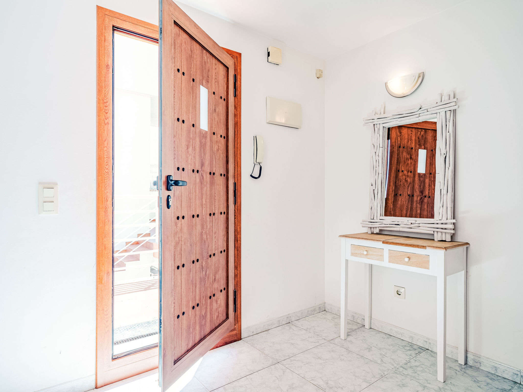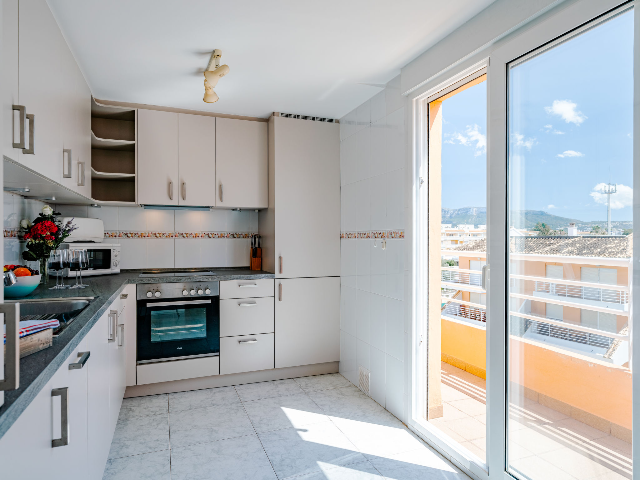 "Talima", 3-Zimmer-Attikawohnung. Geräumig und hell, zweckmässig und komfortabel eingerichtet: Wohn-/Esszimmer mit Sat-TV, Digital-TV und Internationale TV-Sender (Flachbildschirm), Klimaanlage und Warmluftheizung. Ausgang zur Terrasse. 1 Zimmer mit 2 Betten (90 cm). 1 Zimmer mit 1 franz. Bett, Klimaanlage und Warmluftheizung. Ausgang zur Terrasse. Grosse Küche (Backofen, Geschirrspüler, 4 Glaskeramikherd Platten, Mikrowelle, Tiefkühler, elektrische Kaffeemaschine). 2 Bäder/WC. Herrliche Panoramasicht auf das Meer. Zur Verfügung: Waschmaschine. Internet (Wireless LAN, gratis). Parkplatz Nr. 17 (überdacht). Bitte beachten: Nichtraucher-Haus. 1 Haustier/Hund erlaubt. AT-451067-A
