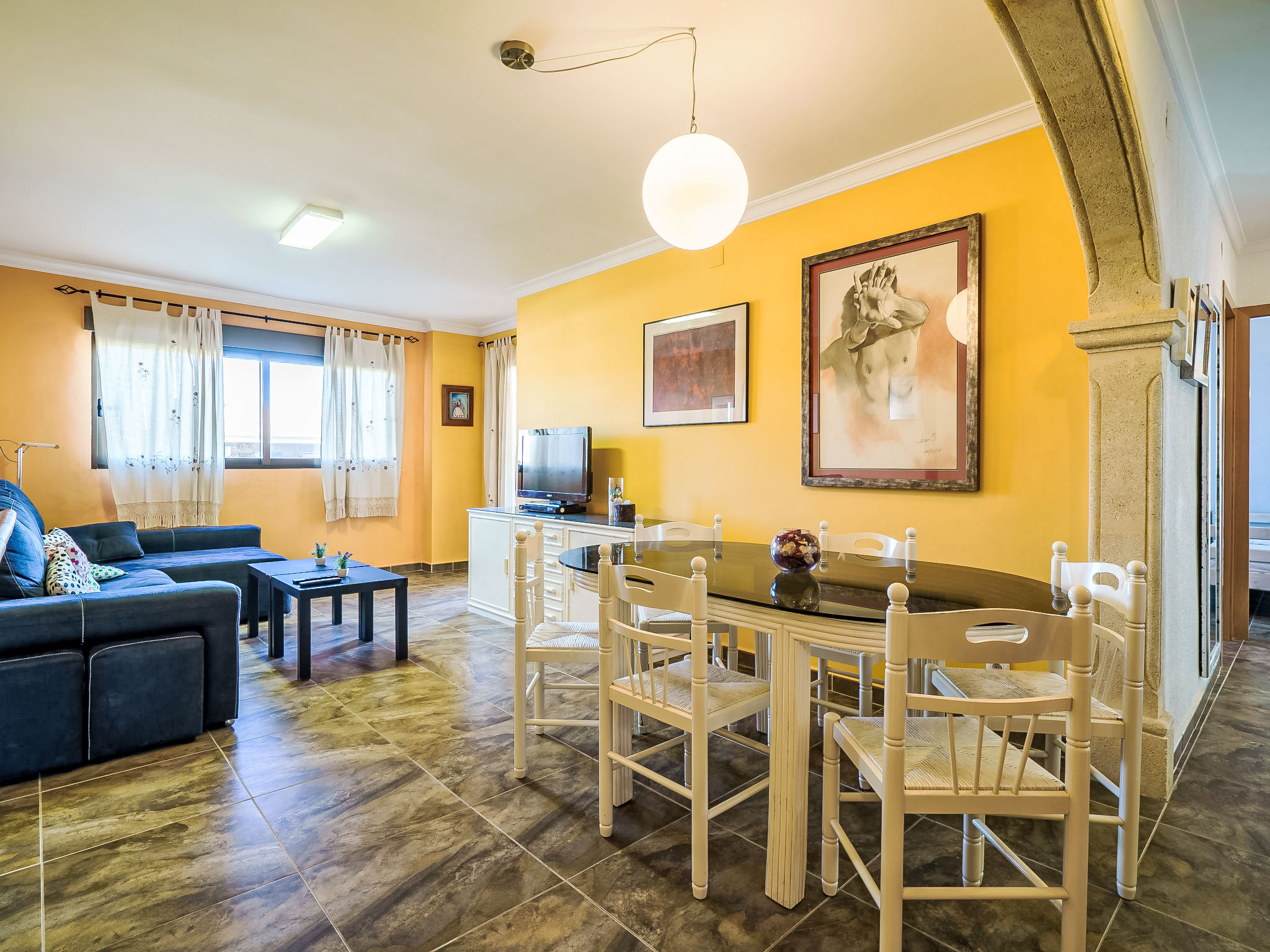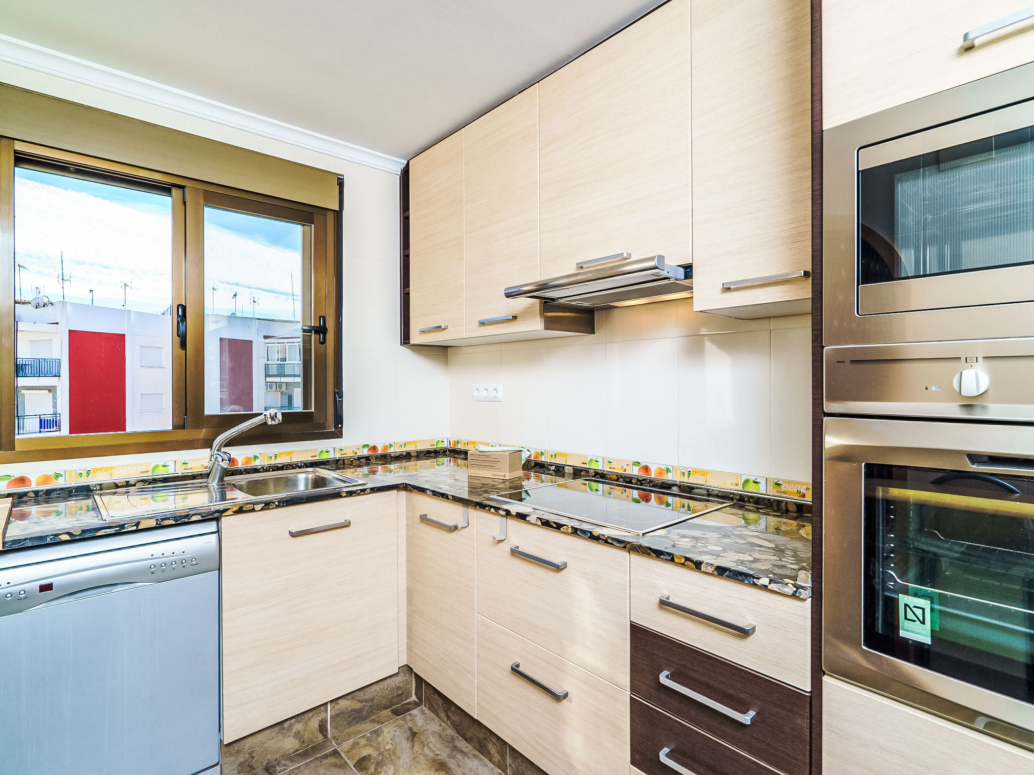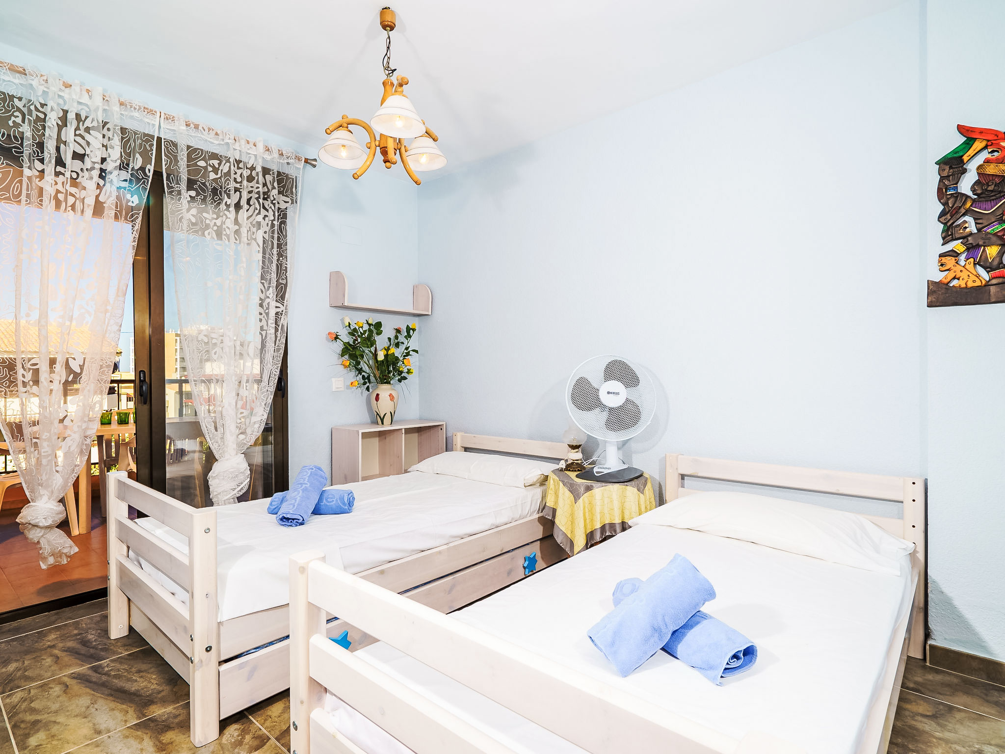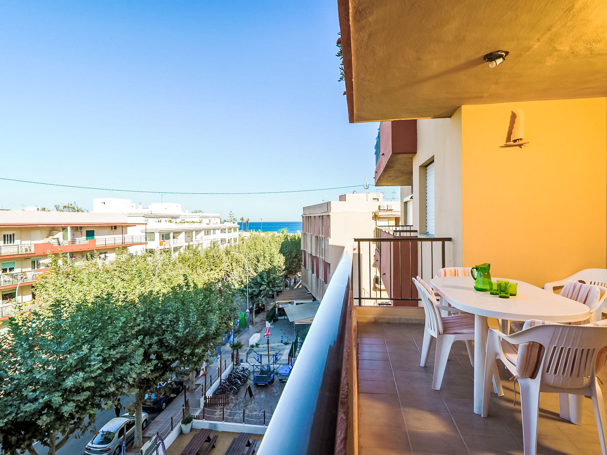 4-Zimmer-Wohnung 76 m2 im 4. Stock. Zweckmässig eingerichtet: Wohn-/Esszimmer mit Digital-TV und DVD. Ausgang zum Balkon. 2 Doppelzimmer, jedes Zimmer mit Ventilator. Ausgang zum Balkon. 1 Zimmer mit 1 franz. Bett. Ausgang zum Balkon. Küche (Backofen, Geschirrspüler, X Glaskeramikherd Platten, Mikrowelle, Tiefkühler). Bad/Bidet/WC, Dusche/WC. Balkon 8 m2. Terrassenmöbel. Sicht auf das Meer. Zur Verfügung: Babybett. Parkplatz. AT-421610-A