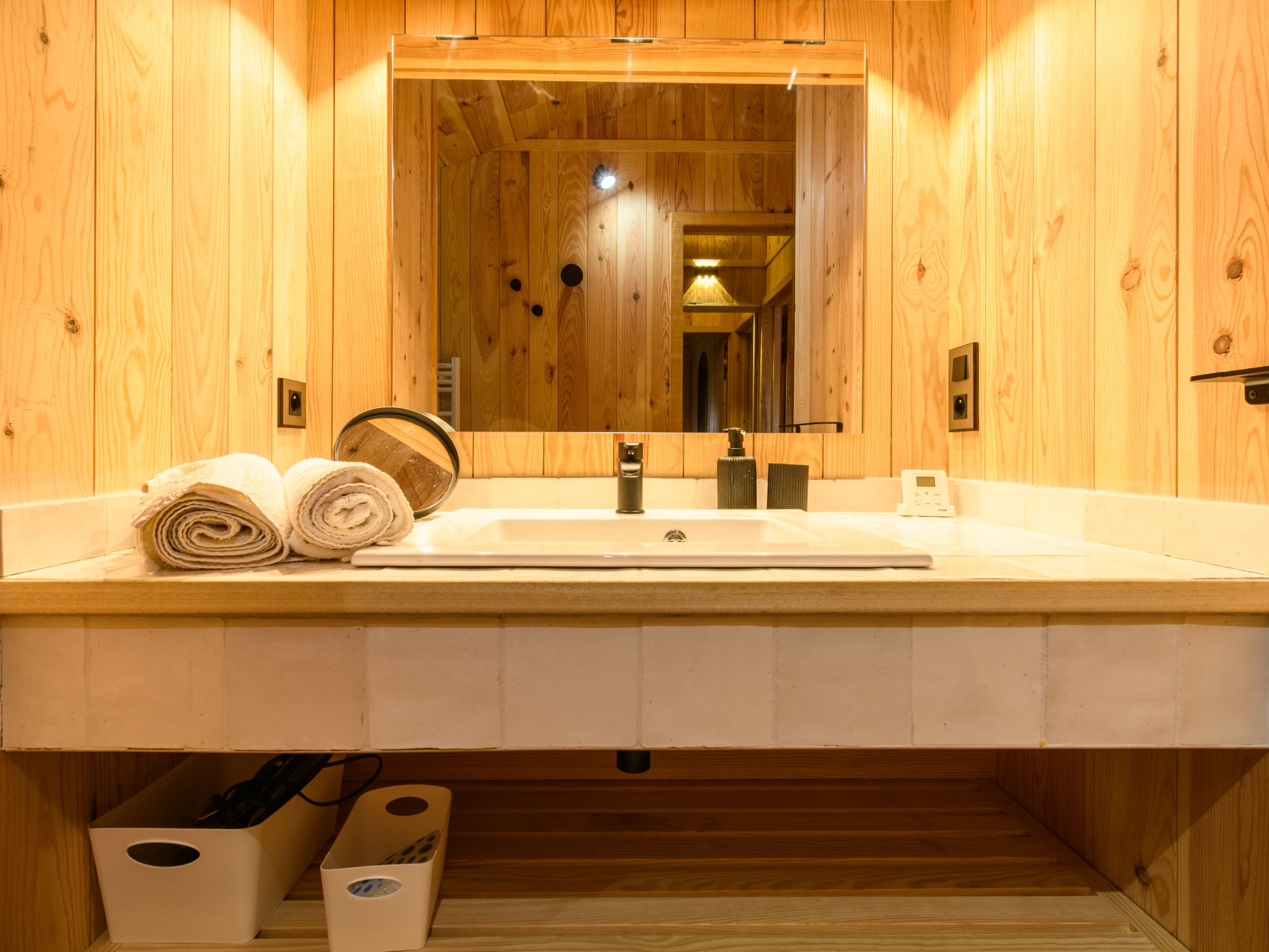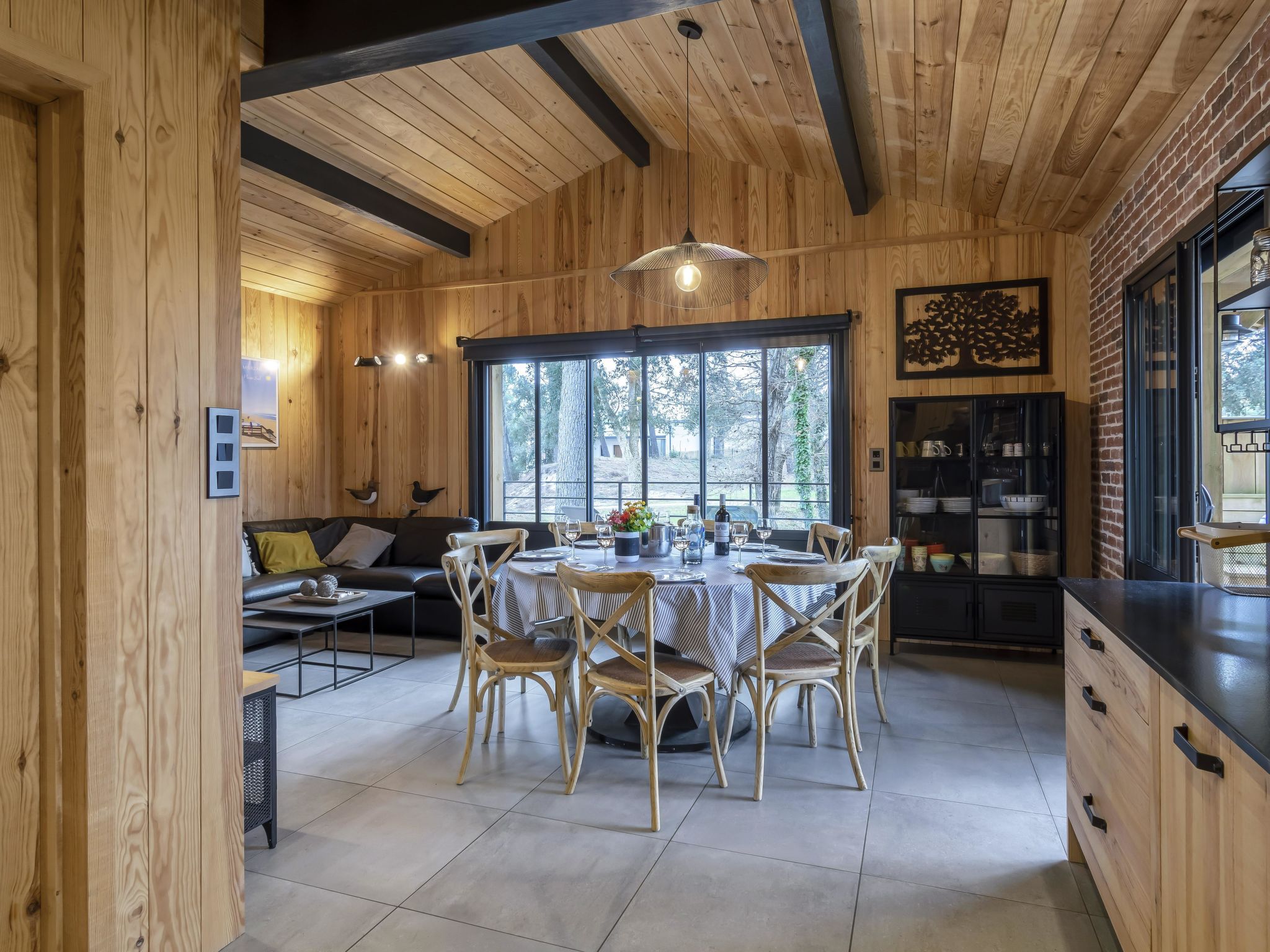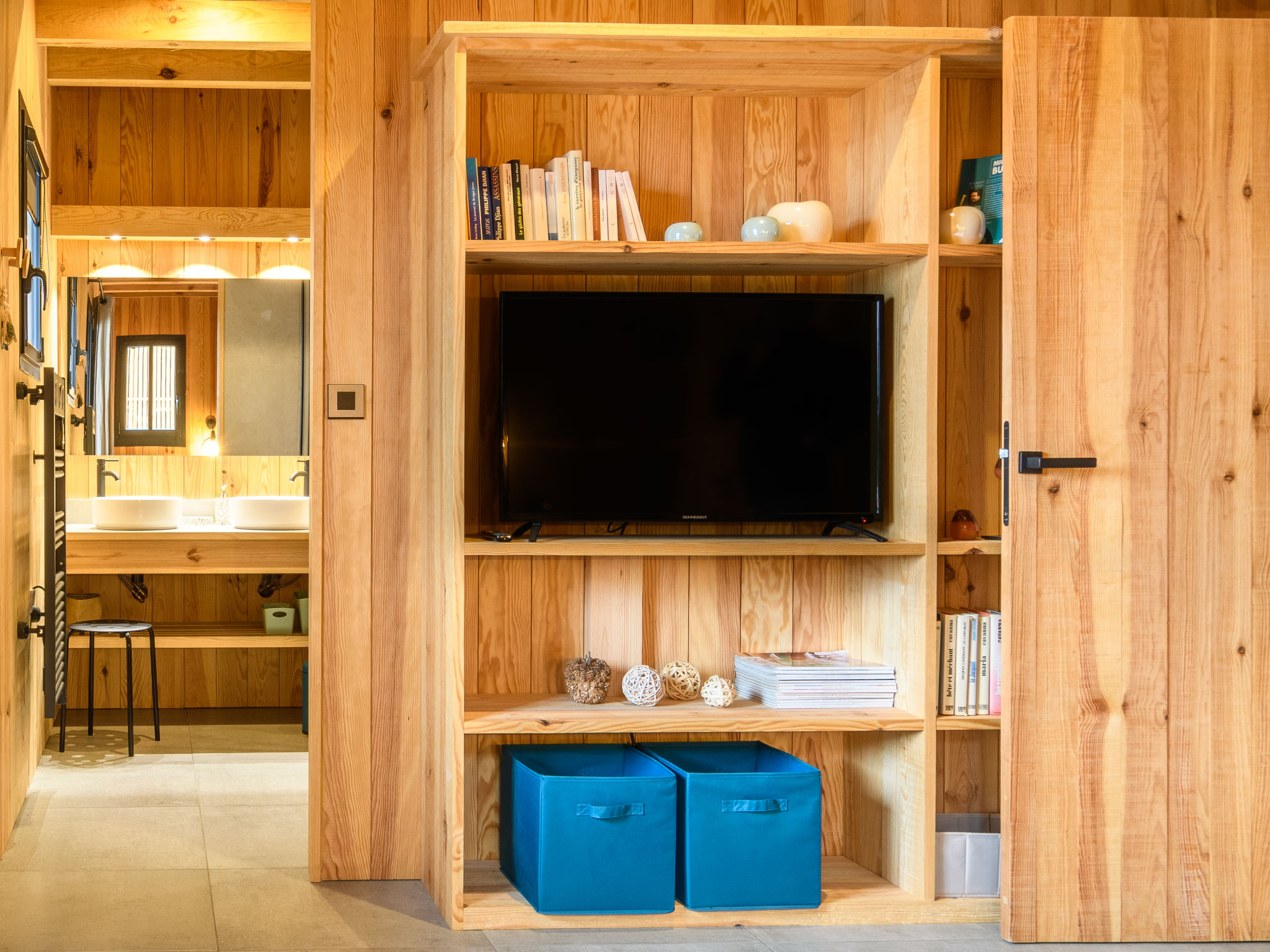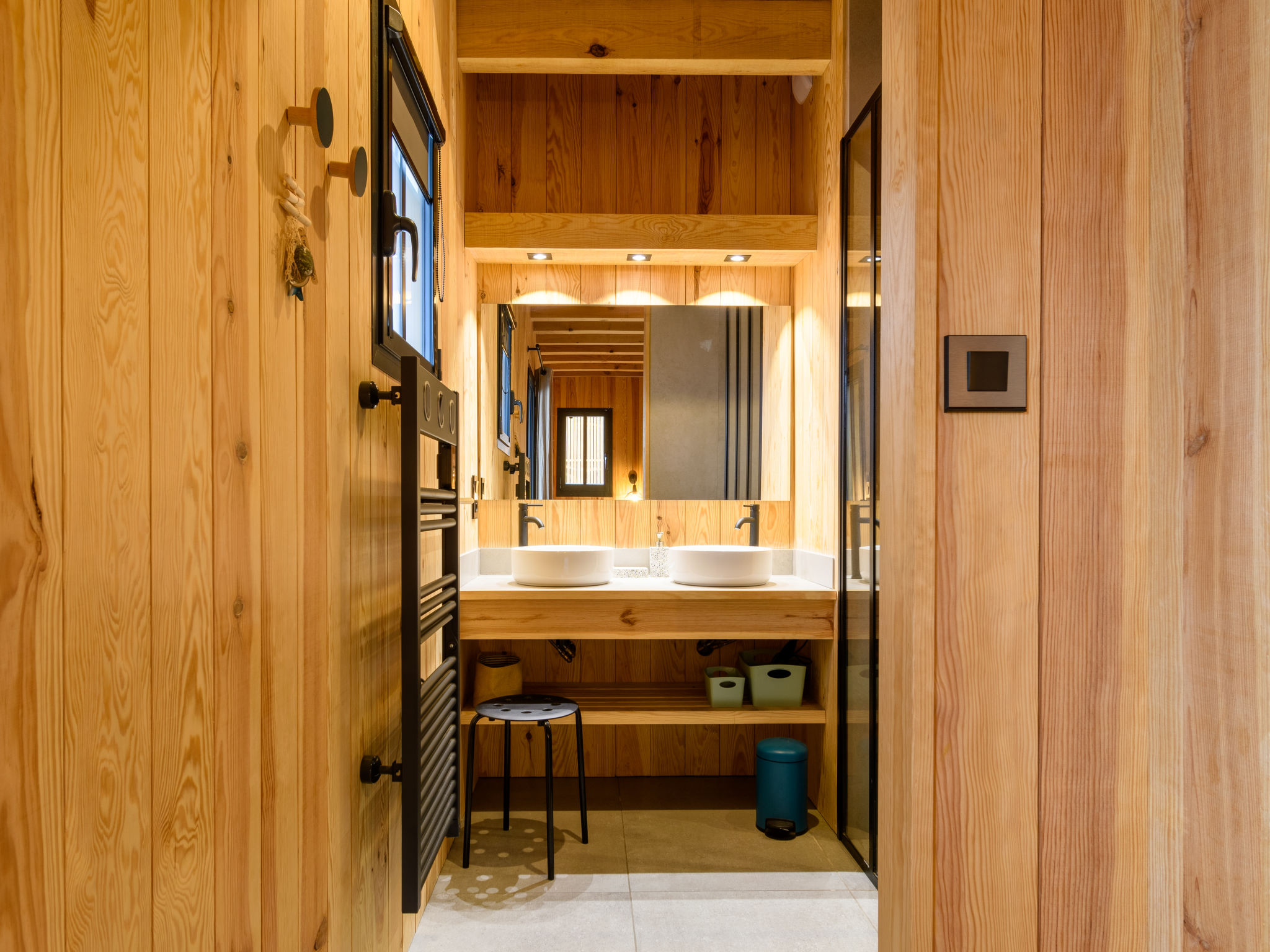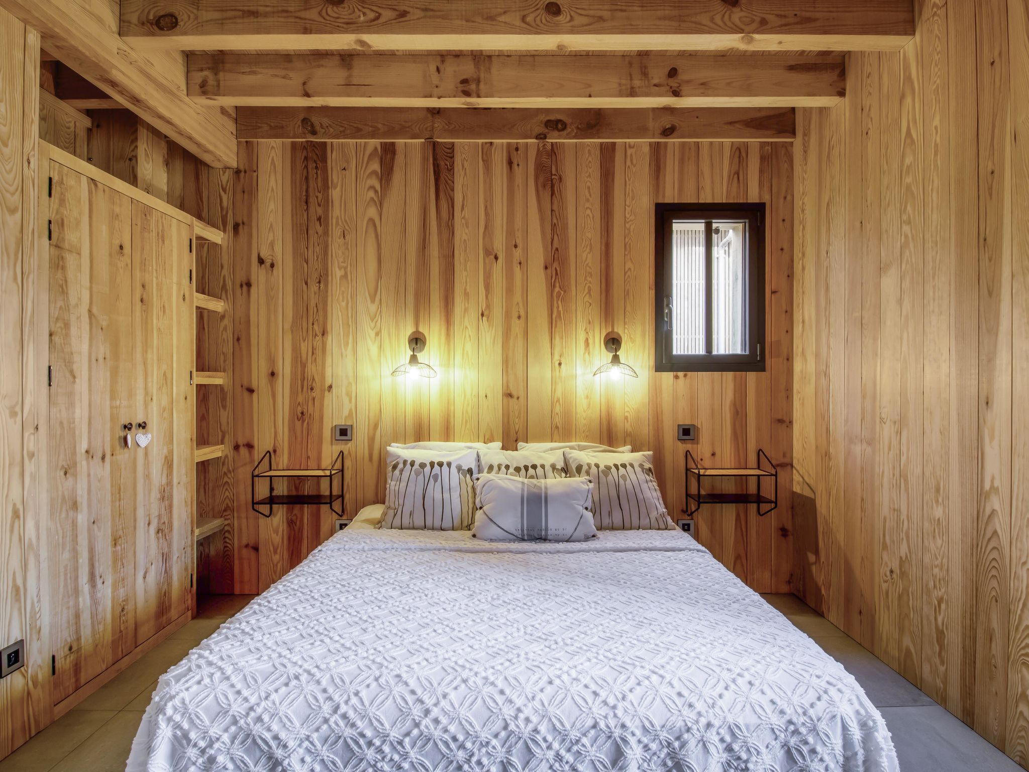 5-Zimmer-Haus 120 m2, Südwestlage. Komfortabel und modern eingerichtet: Wohn-/Esszimmer mit TV (Flachbildschirm), Klimaanlage. Ausgang zur Terrasse. 1 Zimmer mit 1 franz. Bett (1 x 160 cm, Länge 200 cm), Bad/Dusche und TV (Flachbildschirm), Klimaanlage. Offene Küche (Backofen, Geschirrspüler, 3 Induktionskochplatten, Toaster, Wasserkocher, Mikrowelle, elektrische Kaffeemaschine, Kapseln für die Kaffeemaschine (filtre + nespresso) extra). Sep. WC. Obergeschoss: 1 Zimmer mit 2 Betten (90 cm, Länge 200 cm), Klimaanlage. 1 Zimmer mit 1 franz. Bett (1 x 160 cm, Länge 200 cm), Waschbecken und Klimaanlage. 1 Zimmer mit 1 franz. Bett (1 x 160 cm, Länge 200 cm), Waschbecken und Klimaanlage. Dusche, sep. WC. Heizung, E-Heizung. Holzdielenboden. Grosse Terrasse 80 m2, Südlage und Westlage. Terrassenmöbel, Gartengrill. Sicht auf den Wald. Zur Verfügung: Waschmaschine, Wäschetrockner, Bügeleisen. Internet (WLAN, gratis). Parkplatz (überdacht, 2 Autos), Garage (2 Autos). Bitte beachten: Nichtraucher-Haus. Maximal 1 Haustier/Hund erlaubt. Rauchmelder.