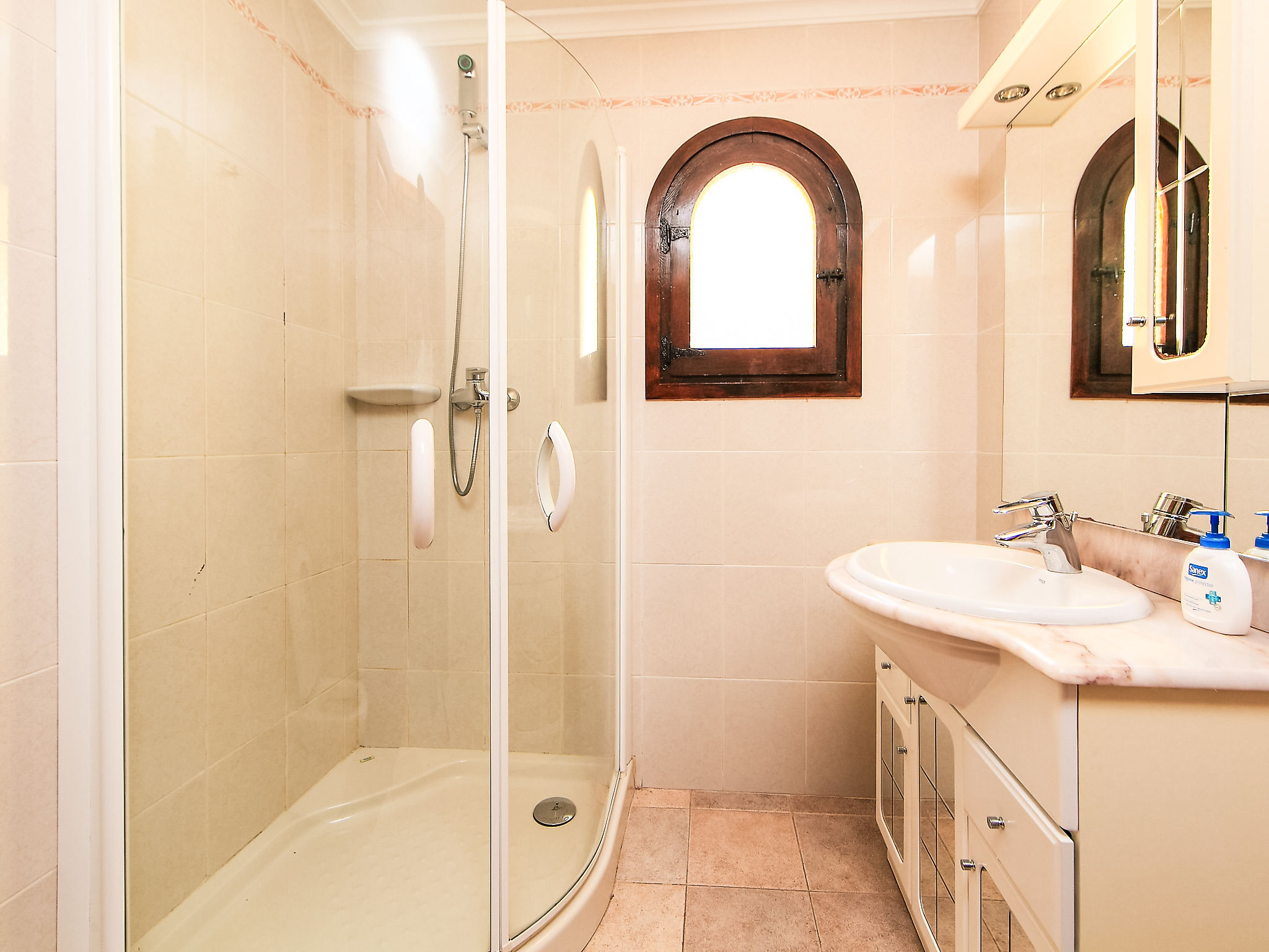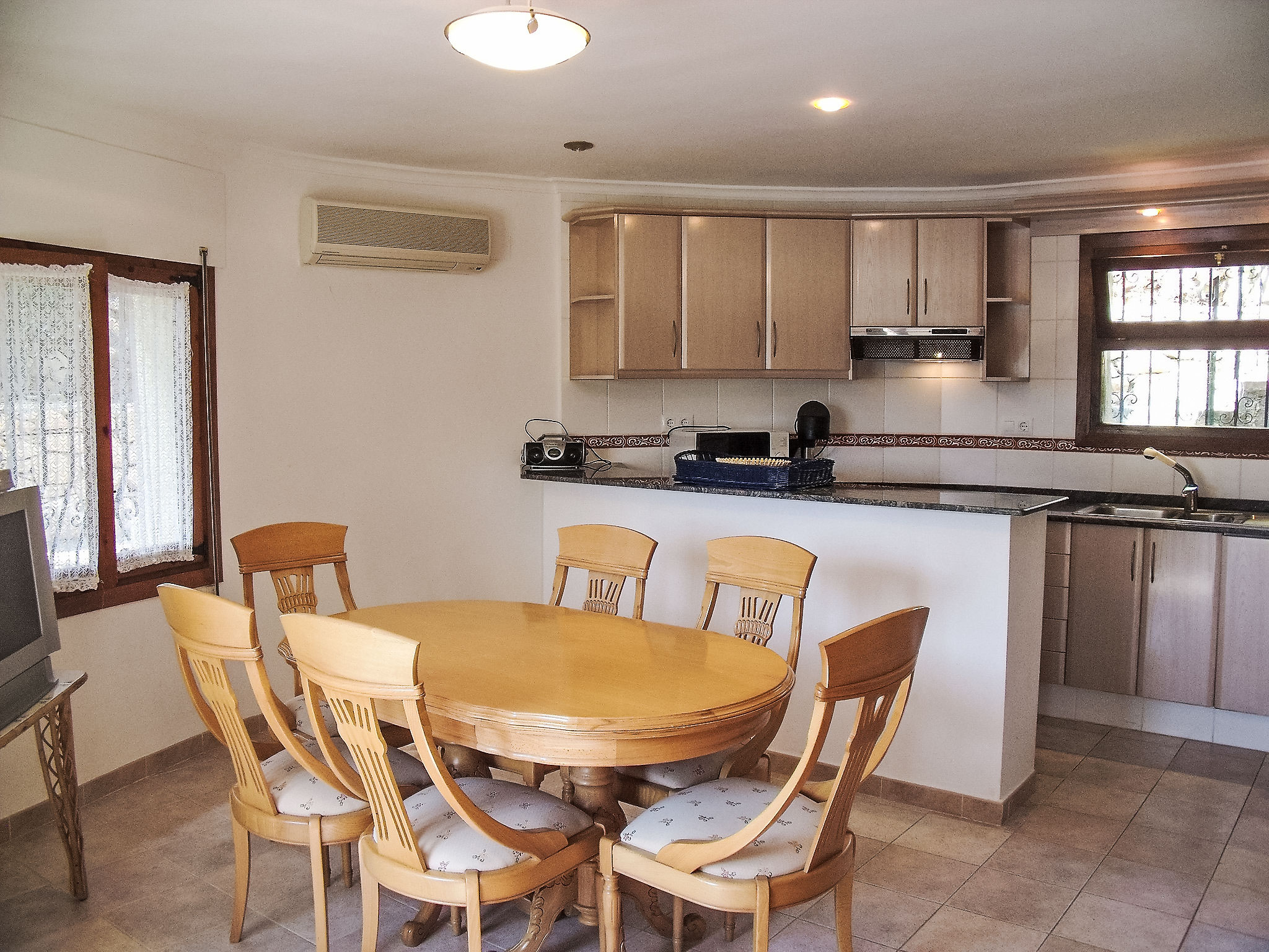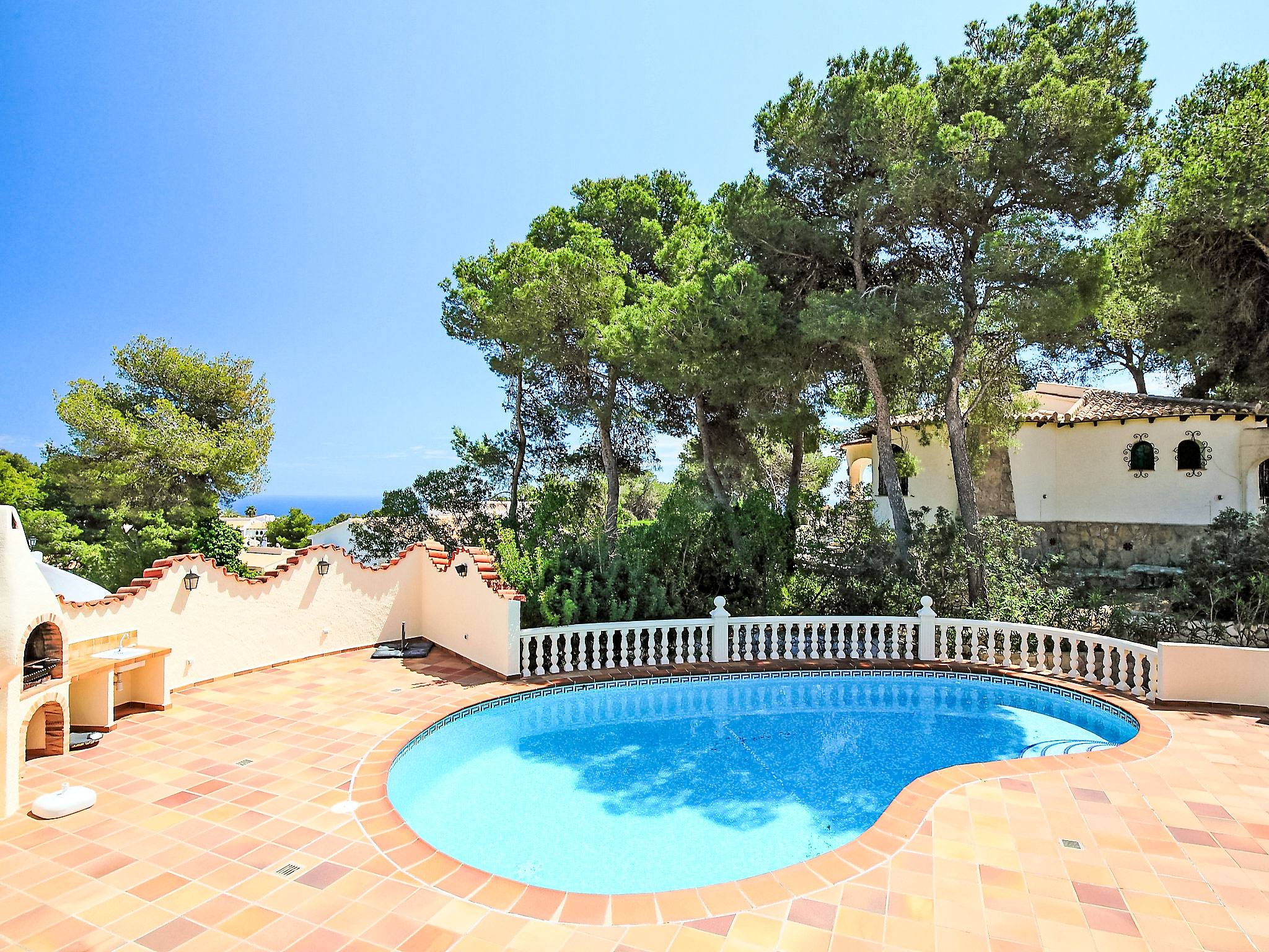 Zweifamilienhaus "Balcon al Mar", auf 2 Stockwerken, renoviert im Jahre 2013. Im Ortsteil Balcon al Mar, ruhige, sonnige Lage in einem Wohnquartier, 6 km vom Meer. Zur Alleinbenutzung: Garten 825 m2 (eingezäunt) mit Pflanzen, Schwimmbad nierenförmig (5 x 10 m, 100 - 200 cm tief, 01.01.-31.12.) mit Innentreppe. Dusche/WC im Poolbereich. Supermarkt 1 km, Restaurant 500 m, Sandstrand "Arenal" 8 km, Steinstrand "Granadella" 6 km. Tennis 1 km. Jugendgruppen nur auf Anfrage.
