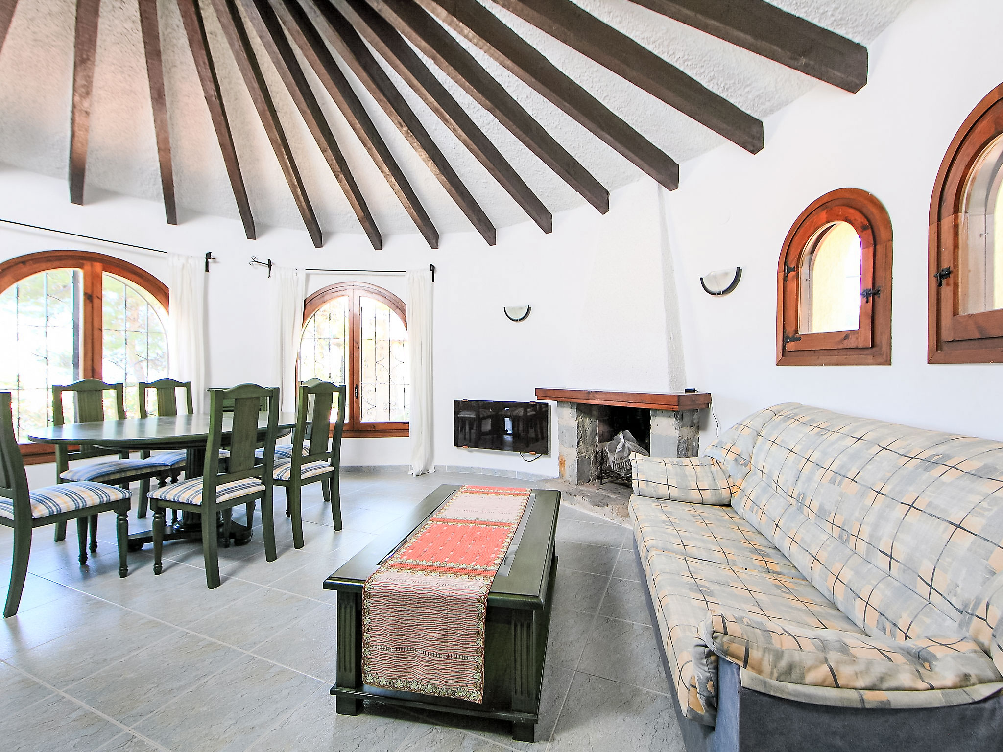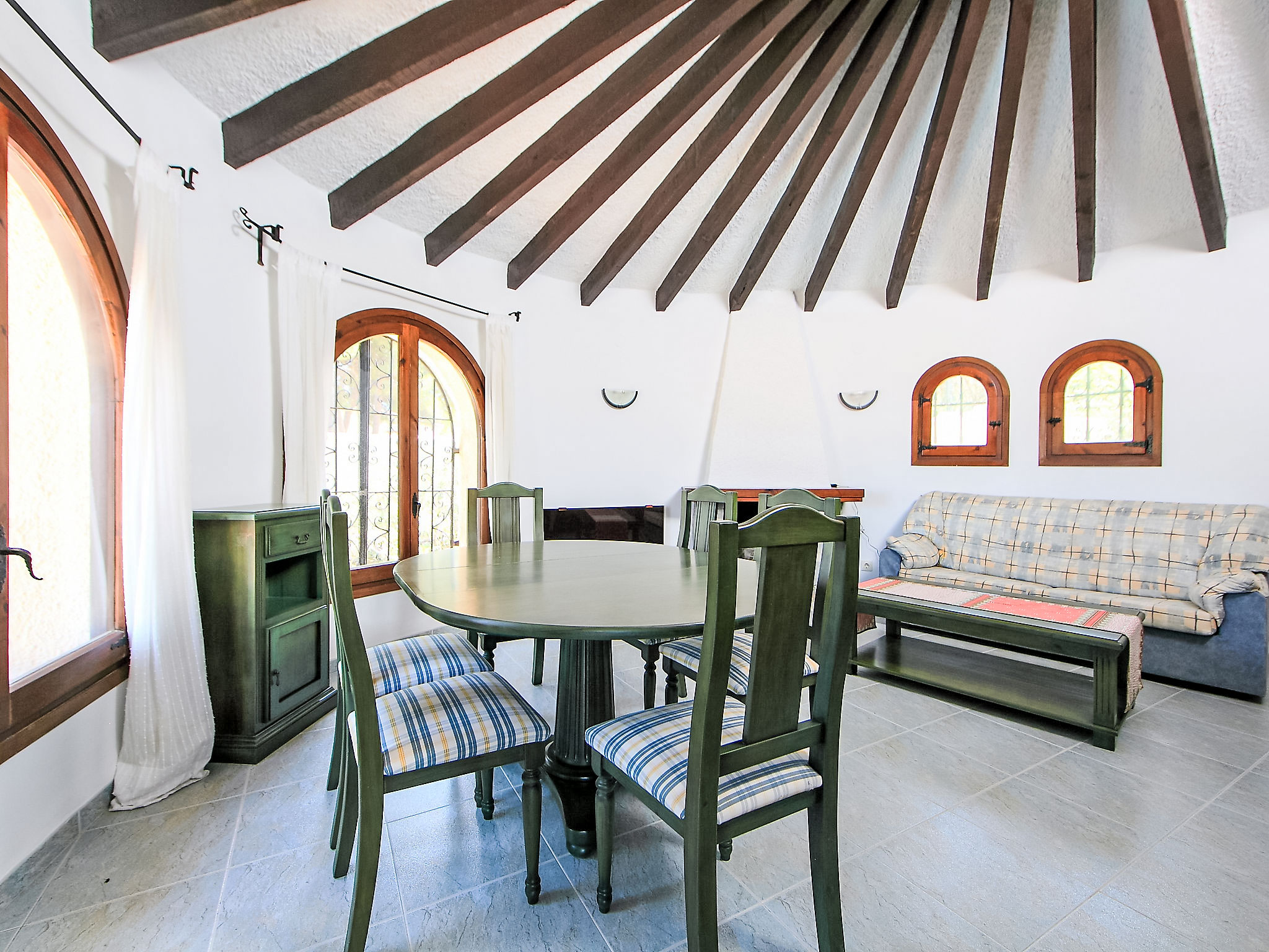 6-Zimmer-Haus 180 m2 auf 2 Stockwerken. Zweckmässig eingerichtet: grosses Wohn-/Esszimmer mit offenem Kamin und Sat-TV. 1 Zimmer mit 2 Doppelbetten (105 cm, Länge 190 cm), Klimaanlage. 1 Zimmer mit 2 Betten (90 cm, Länge 200 cm). Offene Küche (Backofen, Geschirrspüler, Toaster, Wasserkocher, Tiefkühler, elektrische Kaffeemaschine). Bad/WC. Unteres Geschoss: (Aussentreppe) 1 Zimmer mit 1 franz. Bett (150 cm, Länge 200 cm), Klimaanlage. 1 Zimmer mit 2 Betten (90 cm, Länge 190 cm). Wohnküche (Backofen, Geschirrspüler, Mikrowelle, Tiefkühler, elektrische Kaffeemaschine) mit Klimaanlage. Bad/WC, Dusche/WC. Terrassenmöbel, Gartengrill, Liegestühle. Zur Verfügung: Waschmaschine, Haartrockner. Internet (Wireless LAN, gratis). Parkplatz (überdacht, 2 Autos) beim Haus. Geeignet für Familien. 1 Haustier/Hund erlaubt. AT-436505-A