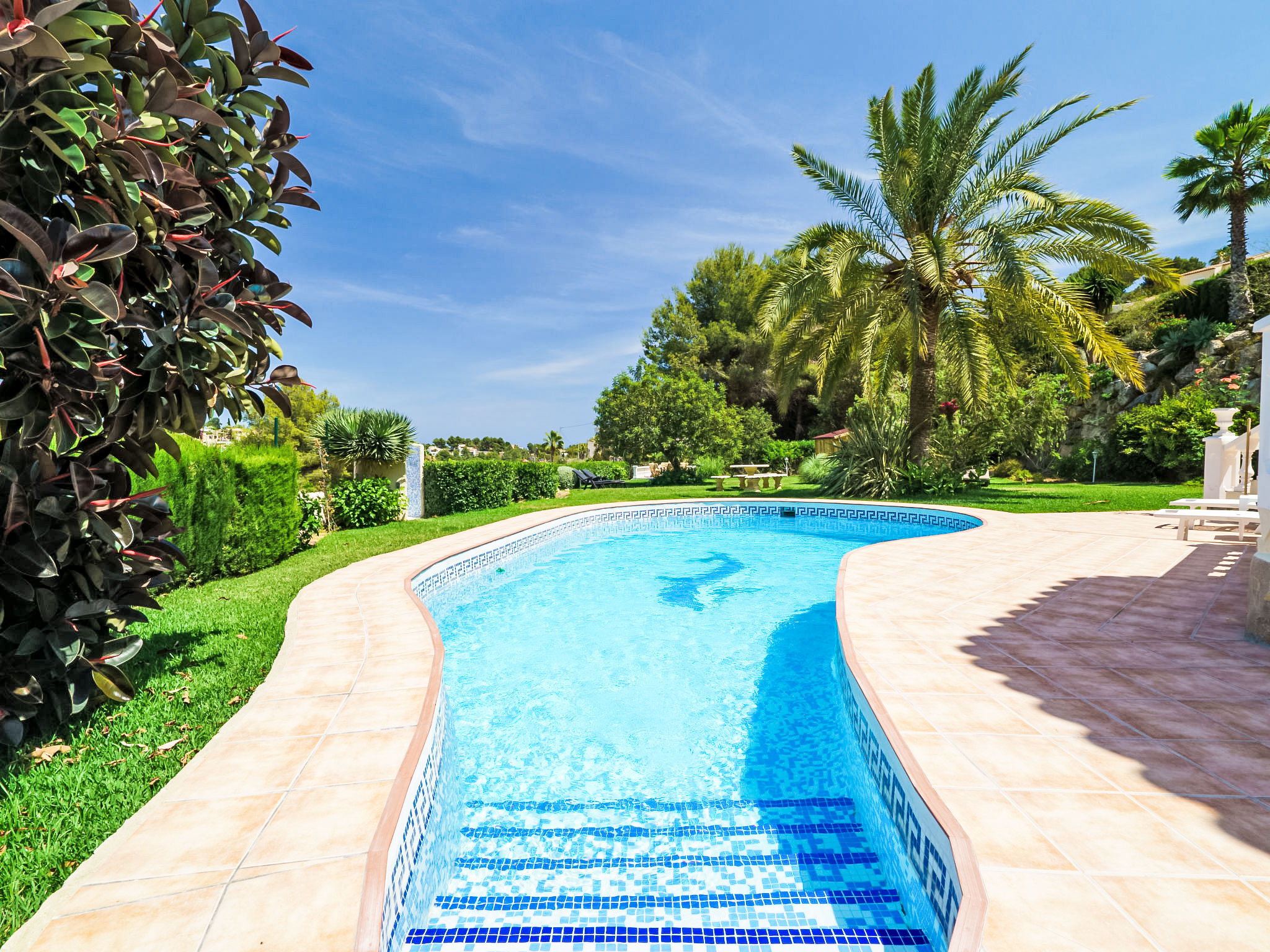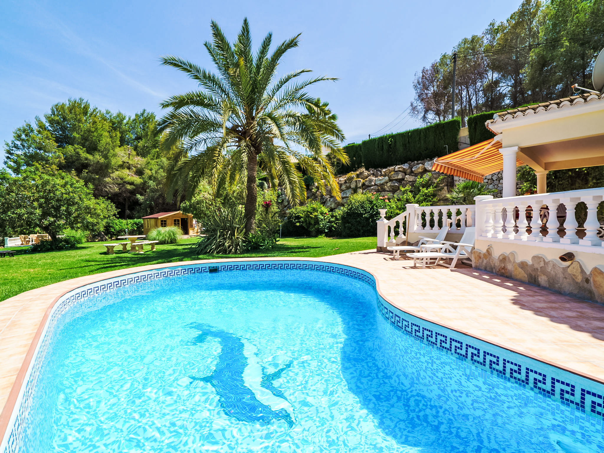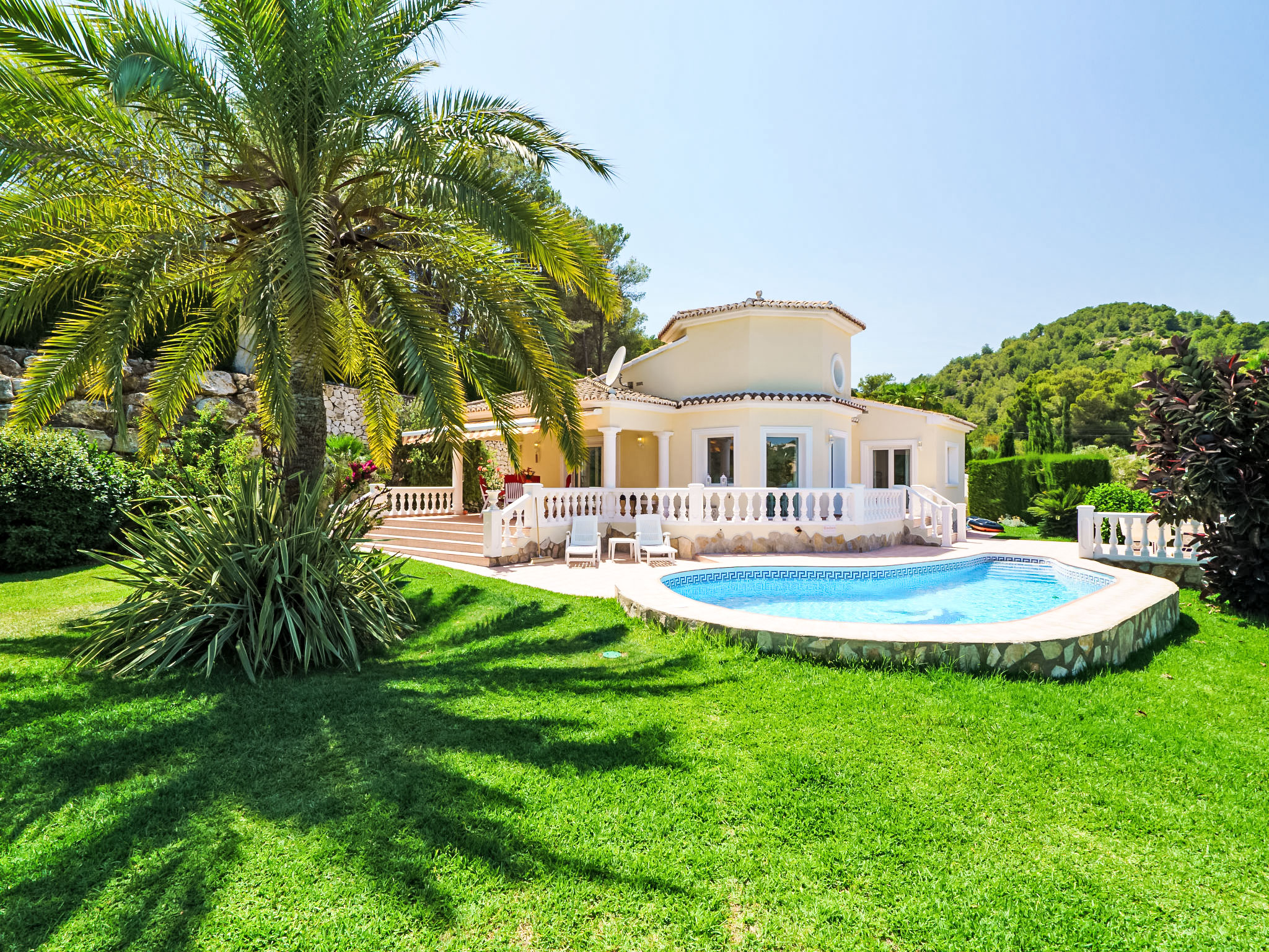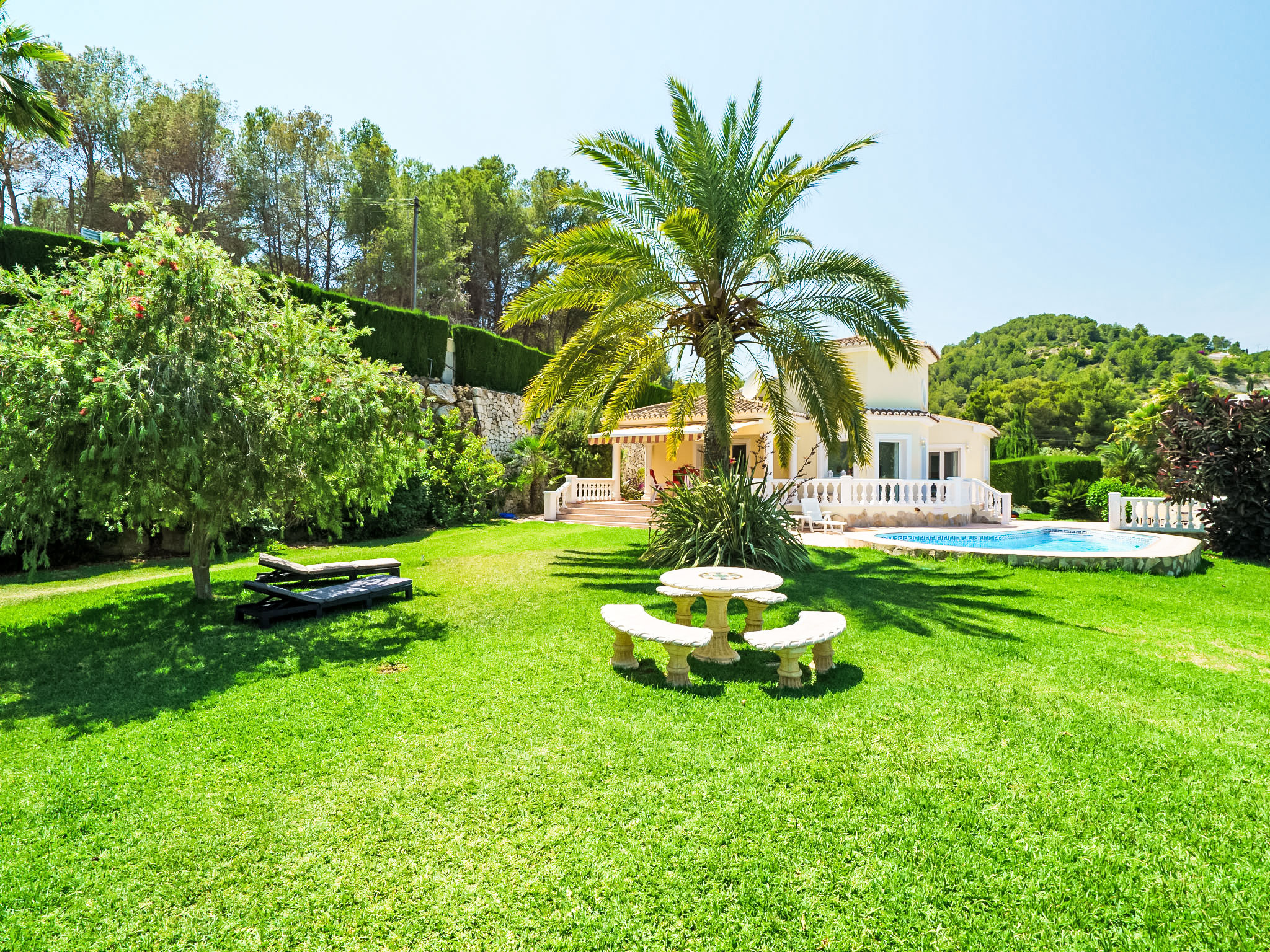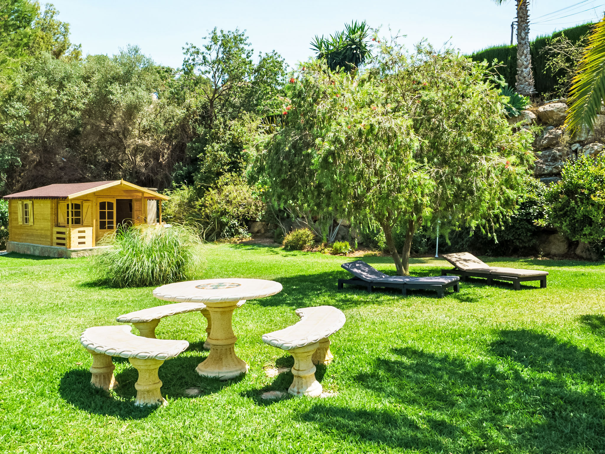 Sehr schönes, komfortables Haus "Montemar". Im Ortsteil Montemar, ruhige, sonnige Lage. Zur Alleinbenutzung: grosser, schöner, gepflegter Garten 1'600 m2 (eingezäunt) mit Rasen, Schwimmbad nierenförmig (4 x 8 m, 140 - 200 cm tief, 01.01.-31.12.) mit Innentreppe. Im Hause: Zentralheizung. Parkplatz (für 2 Autos) auf dem Grundstück. Bitte beachten: geeignet für Familien, geeignet für Senioren.
