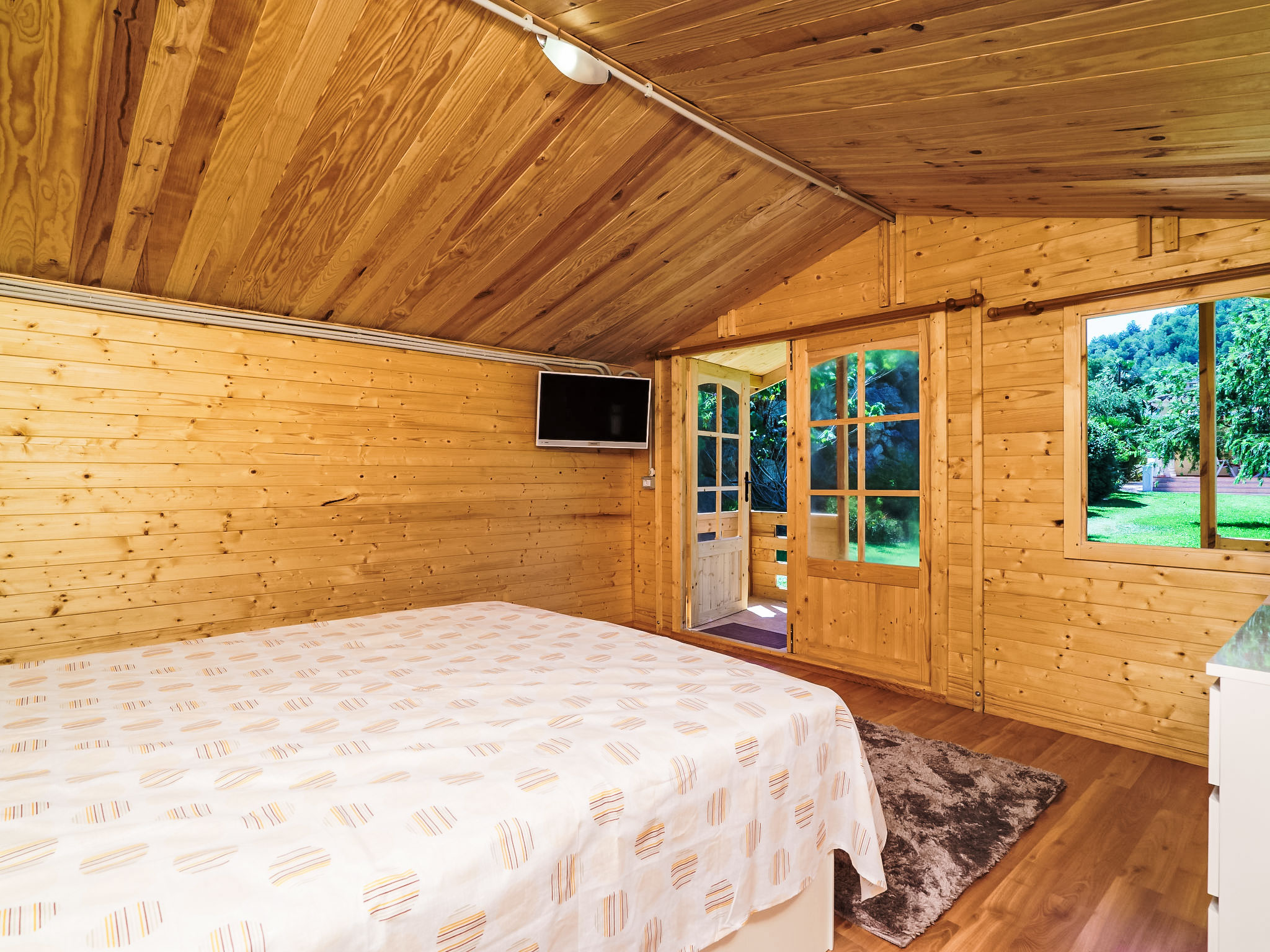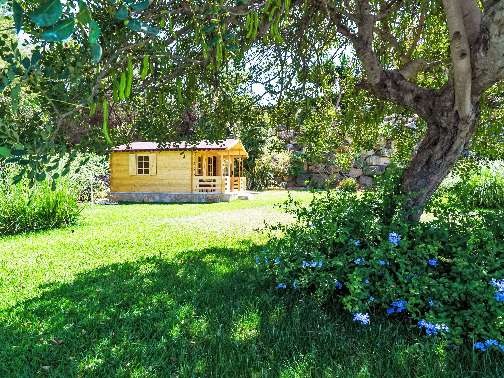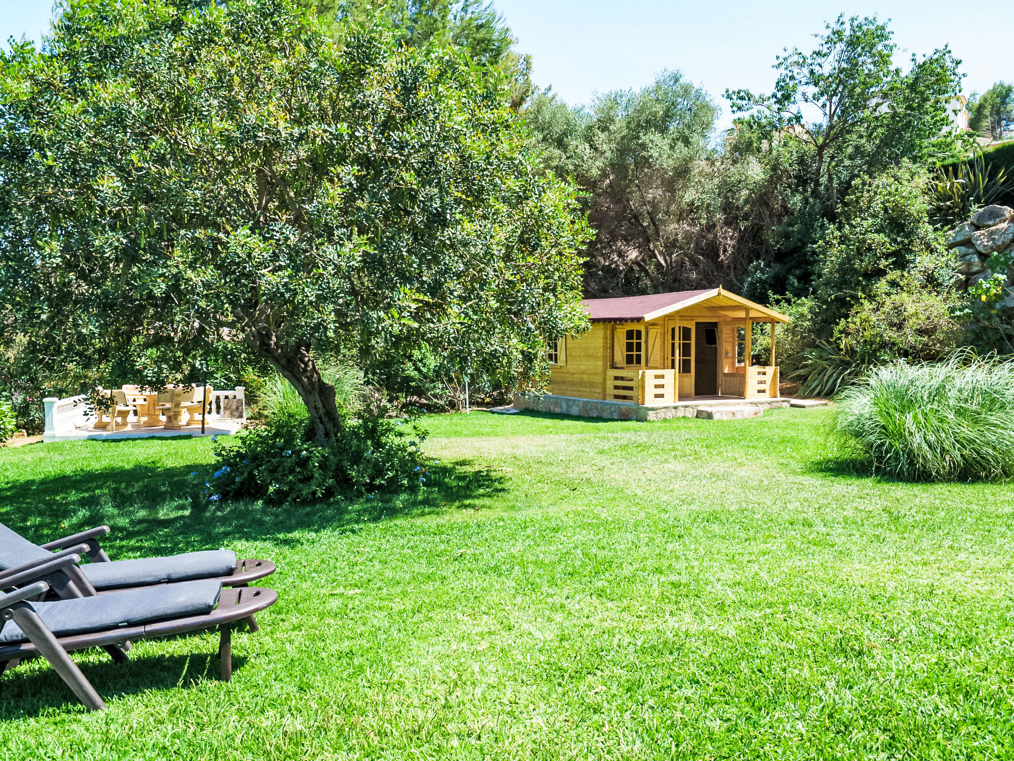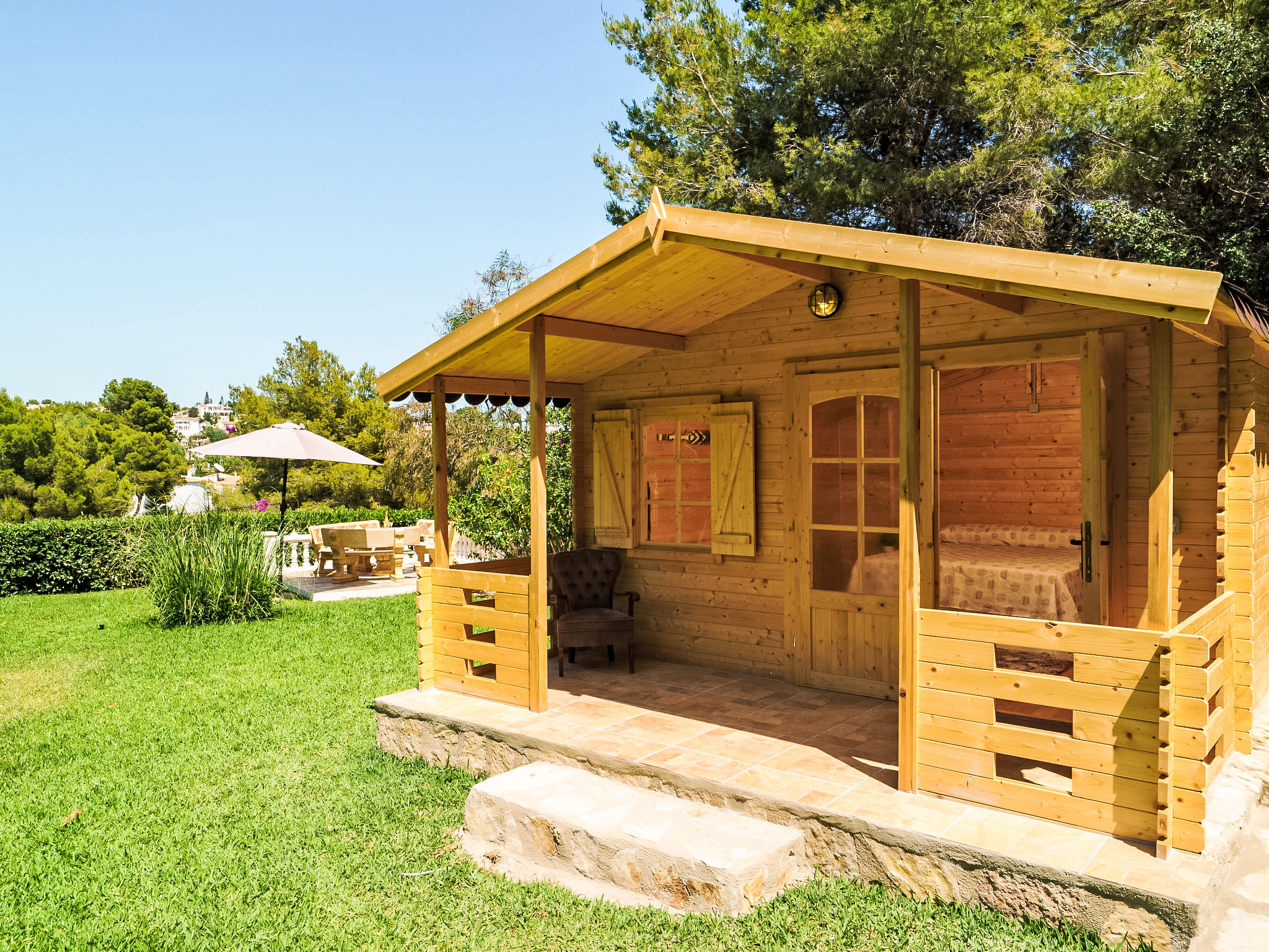 3-Zimmer-Haus 100 m2. Geräumig und hell, komfortabel und schön eingerichtet: Wohn-/Esszimmer mit offenem Kamin und Sat-TV. Ausgang zum Garten, zur Terrasse, zum Schwimmbad. 1 Doppelzimmer mit 1 Doppelbett (150 cm, Länge 200 cm), Dusche/Bidet/WC. Ausgang zum Garten, zur Terrasse. 1 Doppelzimmer mit 1 Doppelbett (150 cm, Länge 200 cm), Bad/WC. Ausgang zum Garten, zur Terrasse. Küche (Backofen, Geschirrspüler, 4 Glaskeramikherd Platten, Tiefkühler, elektrische Kaffeemaschine). Grosse Terrasse teilweise überdacht, grosser Gartensitzplatz. Terrassenmöbel, Gartengrill (mobil), Liegestühle. Zur Verfügung: Waschmaschine. Internet (Wireless LAN, gratis). Parkplatz (eingezäunt, 2 Autos). Geeignet für Familien. 1 Haustier/Hund erlaubt. 1 Schlafzimmer mit Klimaanlage mit Doppelbett mit Aussenbad befindet sich im Gartenhaus im Schwedenstil. AT-440976-A