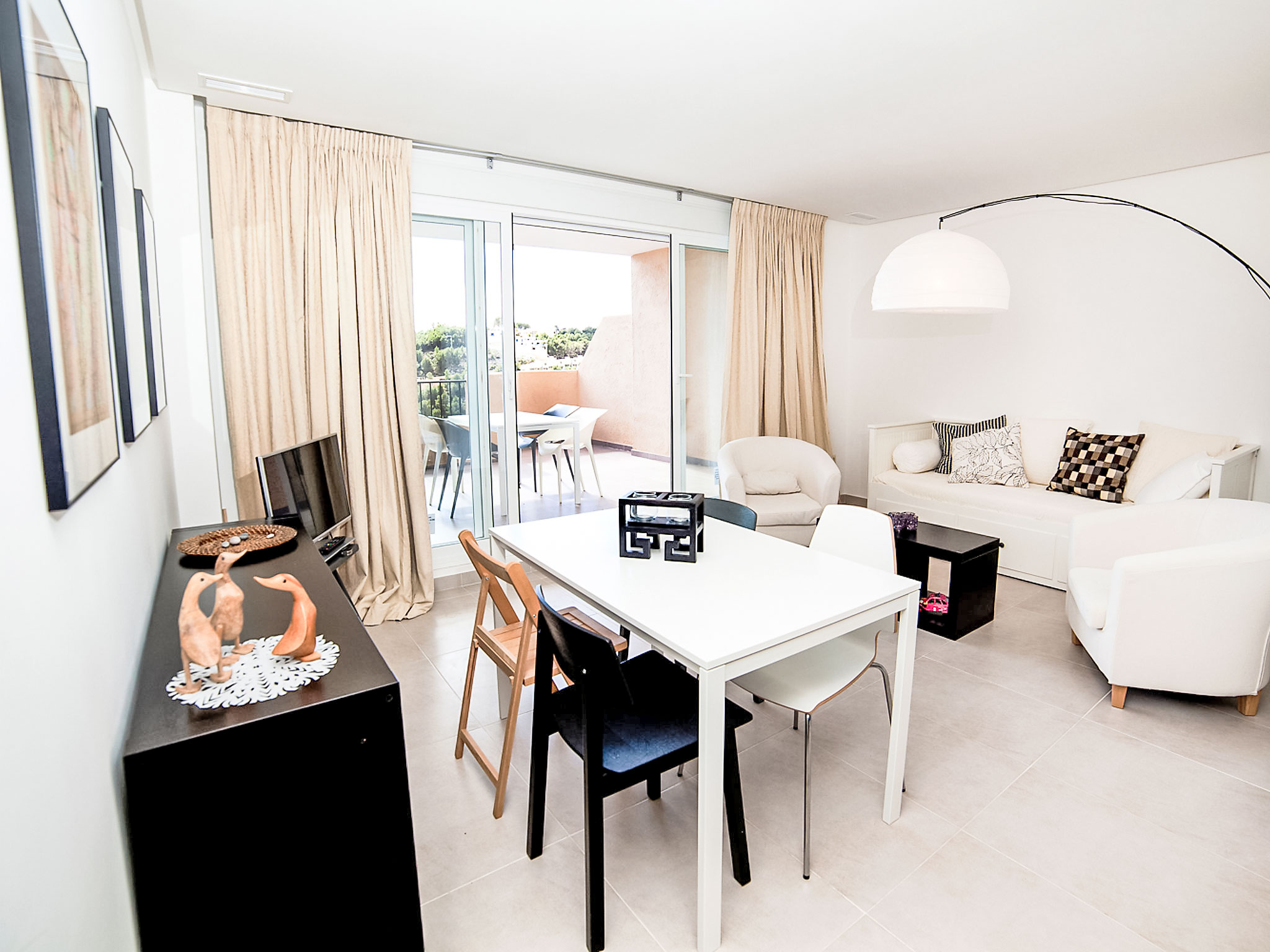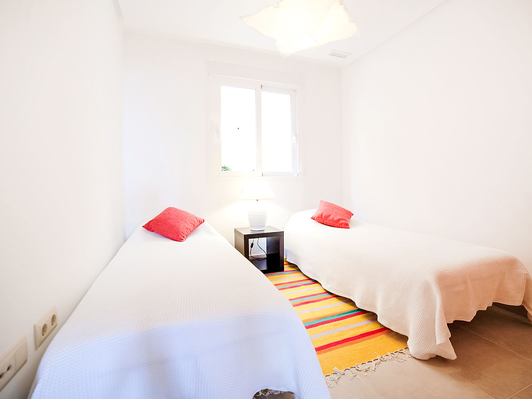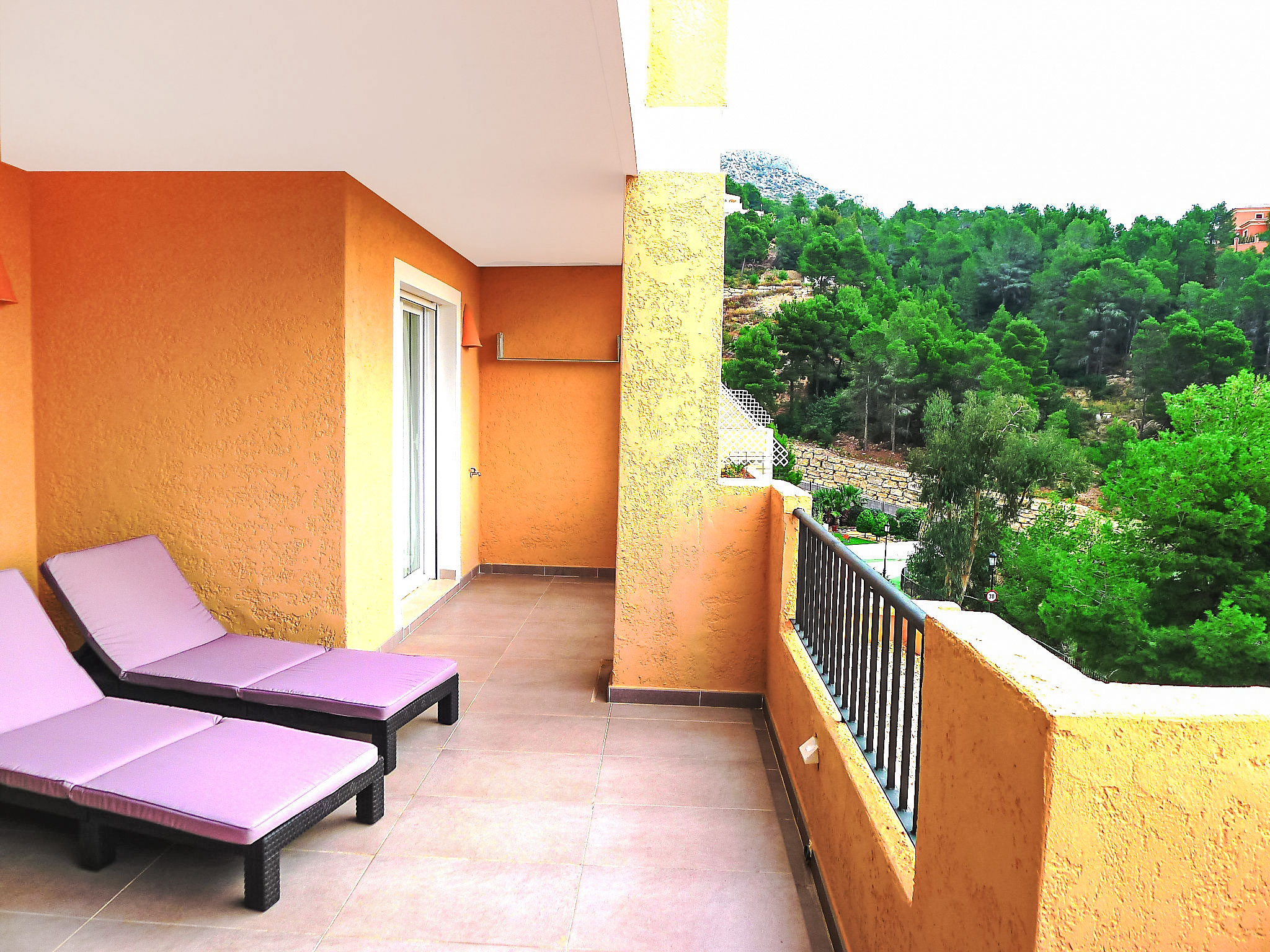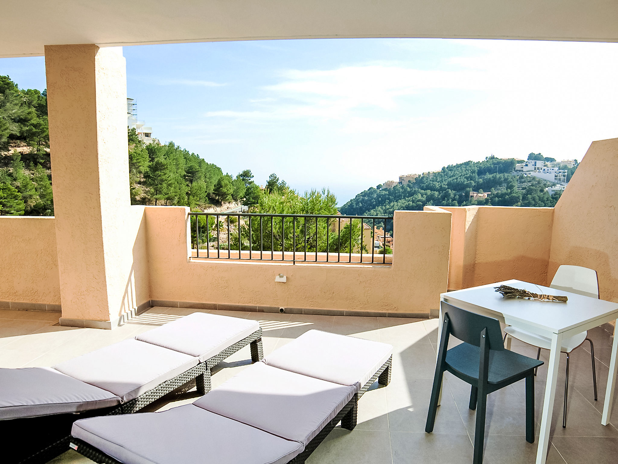 "Los Lirios III", 3-Zimmer-Wohnung 95 m2, im Erdgeschoss. Hell, komfortabel und modern eingerichtet: Wohn-/Esszimmer 24 m2 mit Digital-TV. Ausgang zur Terrasse. 1 Zimmer mit 1 franz. Bett (160 cm, Länge 200 cm), Bad/Dusche/Bidet/WC. Ausgang zur Loggia. 1 Doppelzimmer mit 2 Betten (80 cm, Länge 200 cm), Dusche/WC. Offene Küche (Backofen, Geschirrspüler, 4 Glaskeramikherd Platten, Mikrowelle) mit Essecke. Dusche/Bidet/WC. Klimaanlage. Grosse Terrasse. Terrassenmöbel, Liegestühle (2). Sicht auf das Meer und die Berge. Zur Verfügung: Waschmaschine, Bügeleisen. Internet (Wireless LAN, gratis). Parkplatz Nr. 26 (überdacht, eingezäunt). Bitte beachten: geeignet für Familien. TV nur ES. AT-440249-A