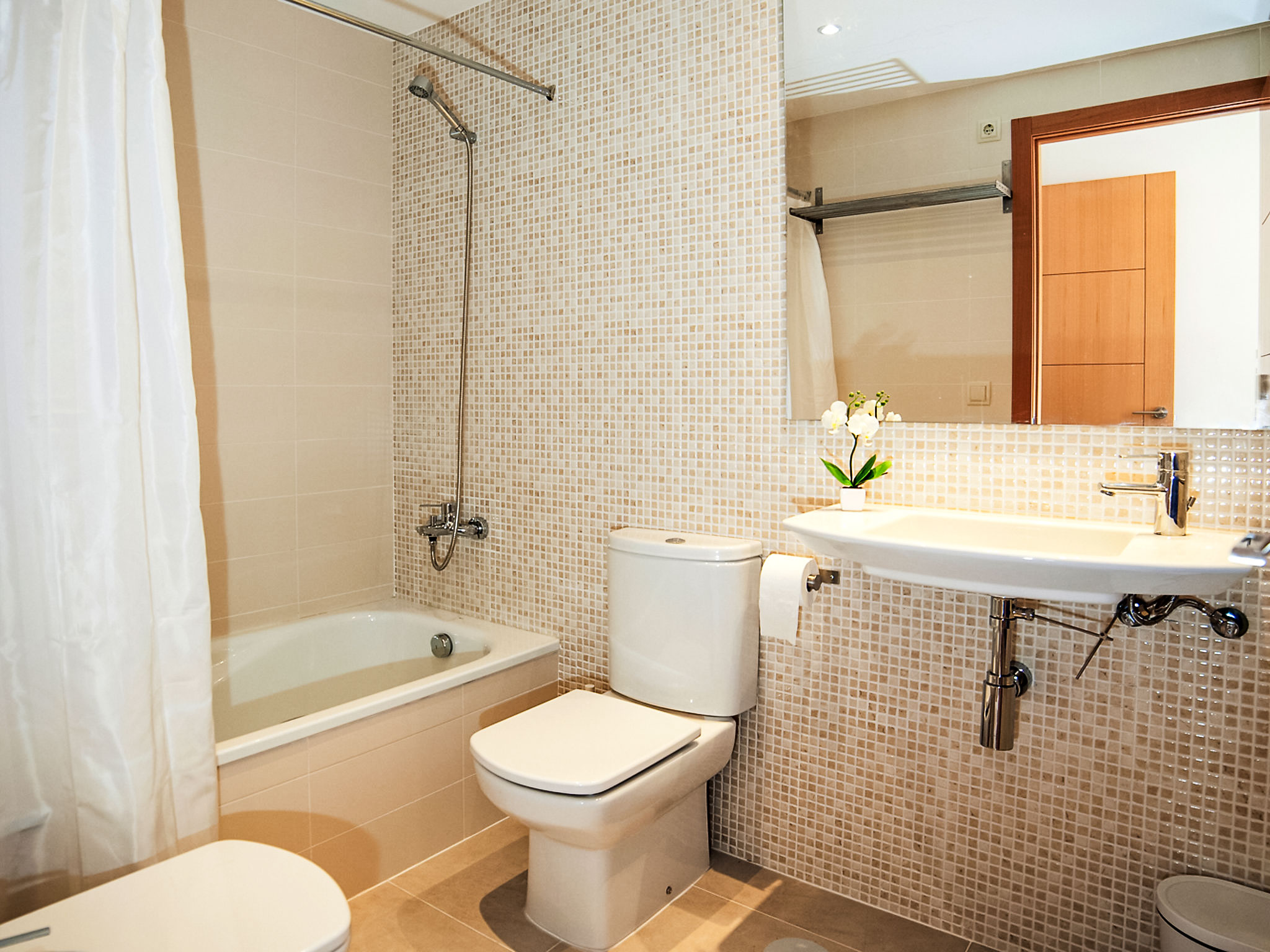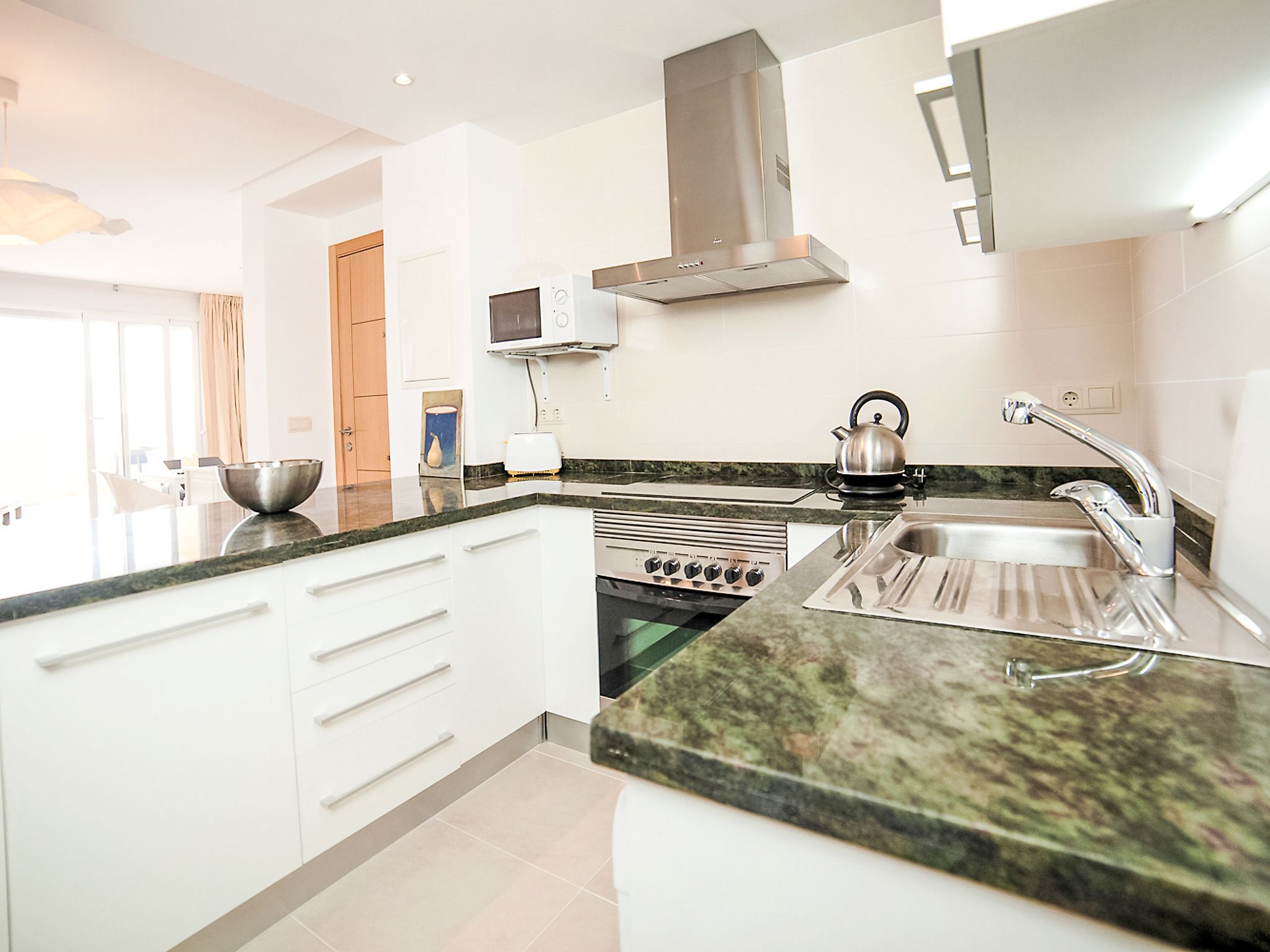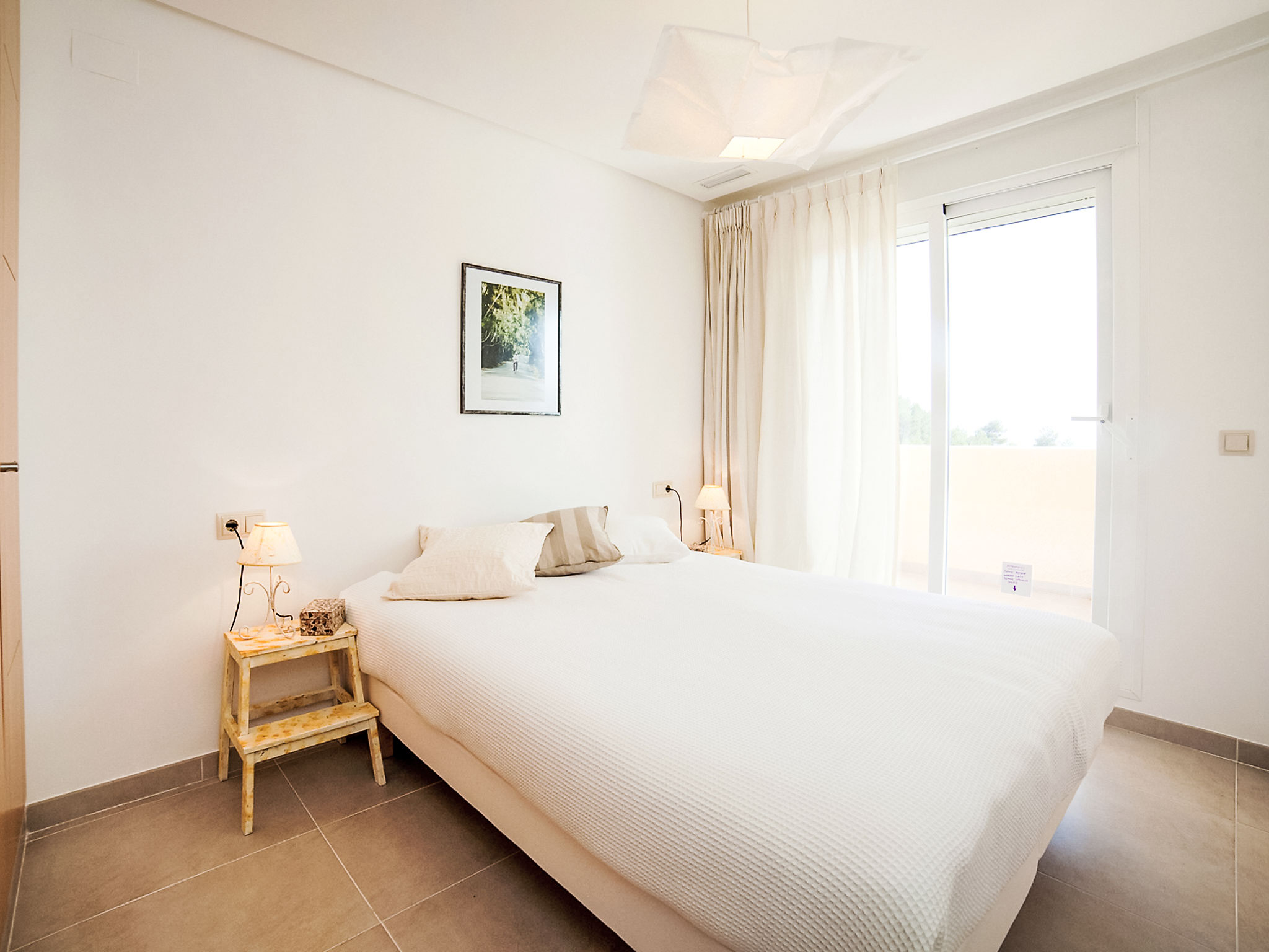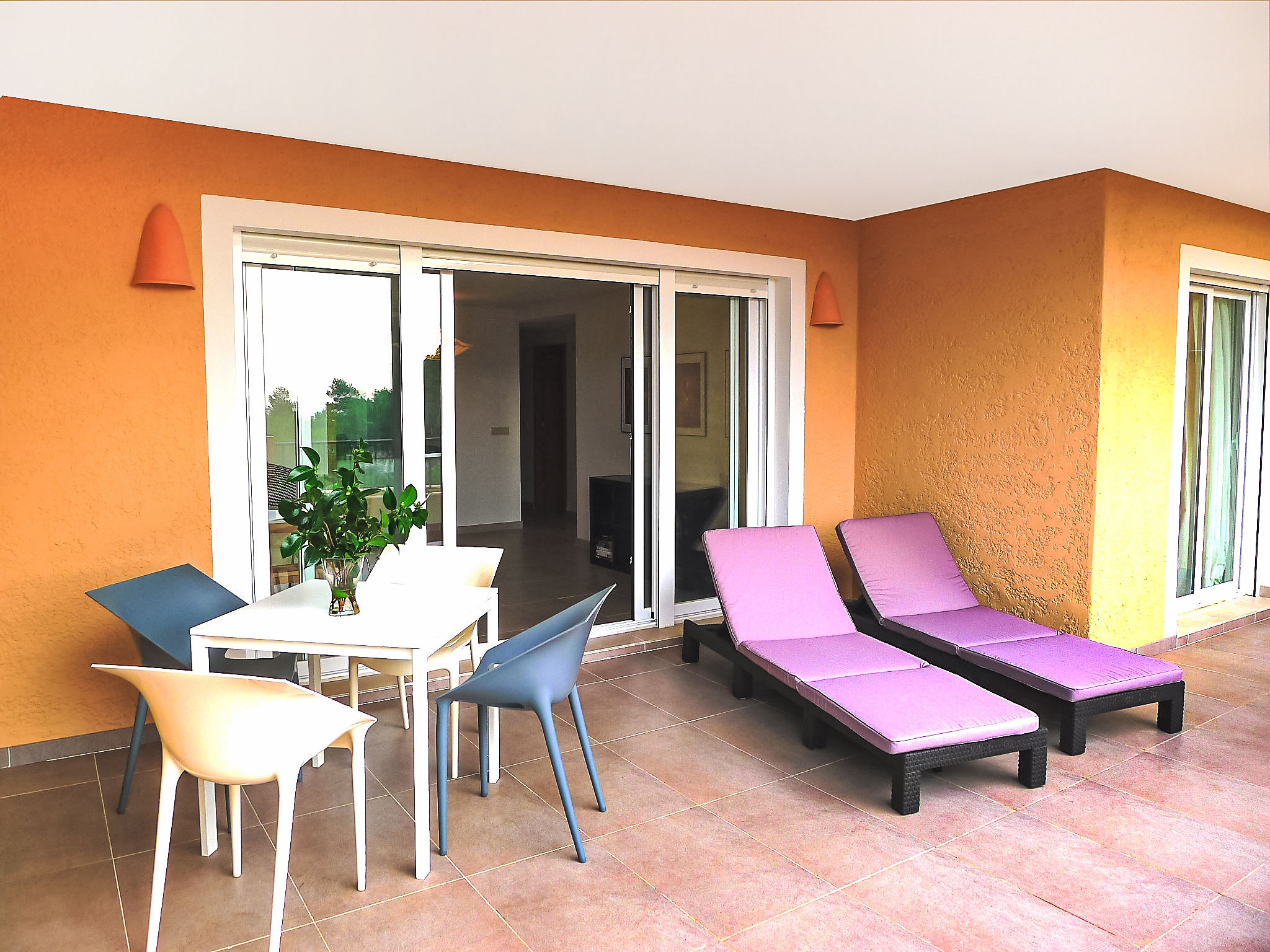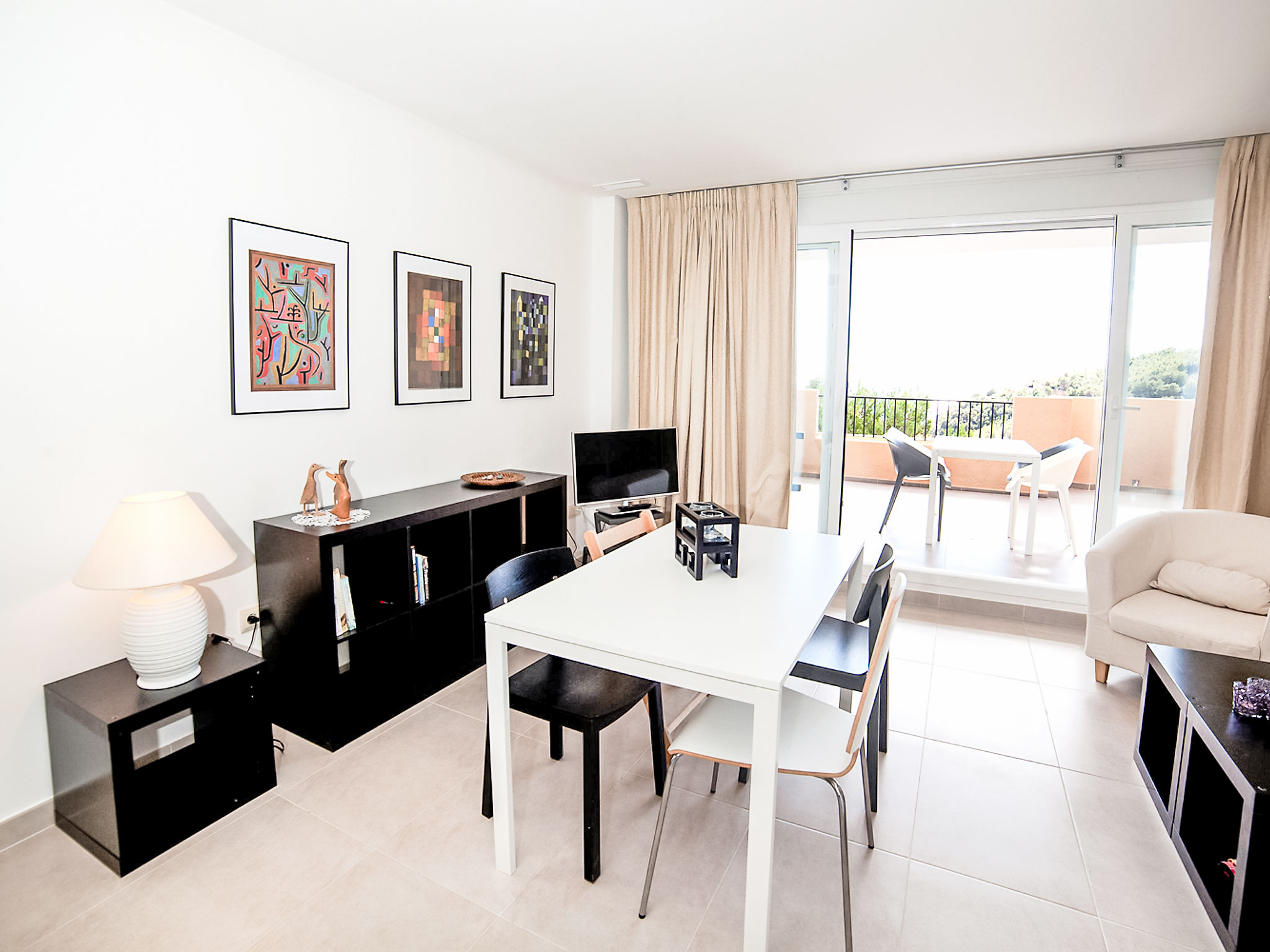 "Los Lirios III", 3-Zimmer-Wohnung 95 m2, im Erdgeschoss. Hell, komfortabel und modern eingerichtet: Wohn-/Esszimmer 24 m2 mit Digital-TV. Ausgang zur Terrasse. 1 Zimmer mit 1 franz. Bett (160 cm, Länge 200 cm), Bad/Dusche/Bidet/WC. Ausgang zur Loggia. 1 Doppelzimmer mit 2 Betten (80 cm, Länge 200 cm), Dusche/WC. Offene Küche (Backofen, Geschirrspüler, 4 Glaskeramikherd Platten, Mikrowelle) mit Essecke. Dusche/Bidet/WC. Klimaanlage. Grosse Terrasse. Terrassenmöbel, Liegestühle (2). Sicht auf das Meer und die Berge. Zur Verfügung: Waschmaschine, Bügeleisen. Internet (Wireless LAN, gratis). Parkplatz Nr. 26 (überdacht, eingezäunt). Bitte beachten: geeignet für Familien. TV nur ES. AT-440249-A